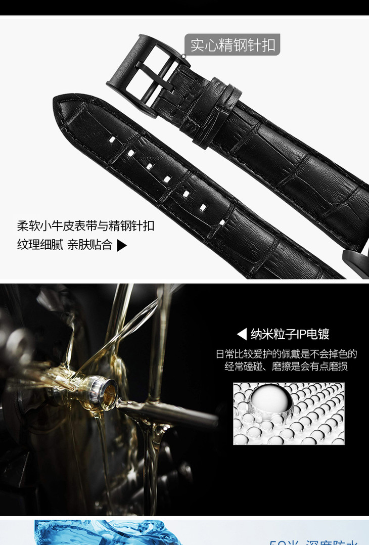 卡罗莱全自动机械表皮带男士手表防水精钢带学生黑色夜光 CA1069M-1 商品图8