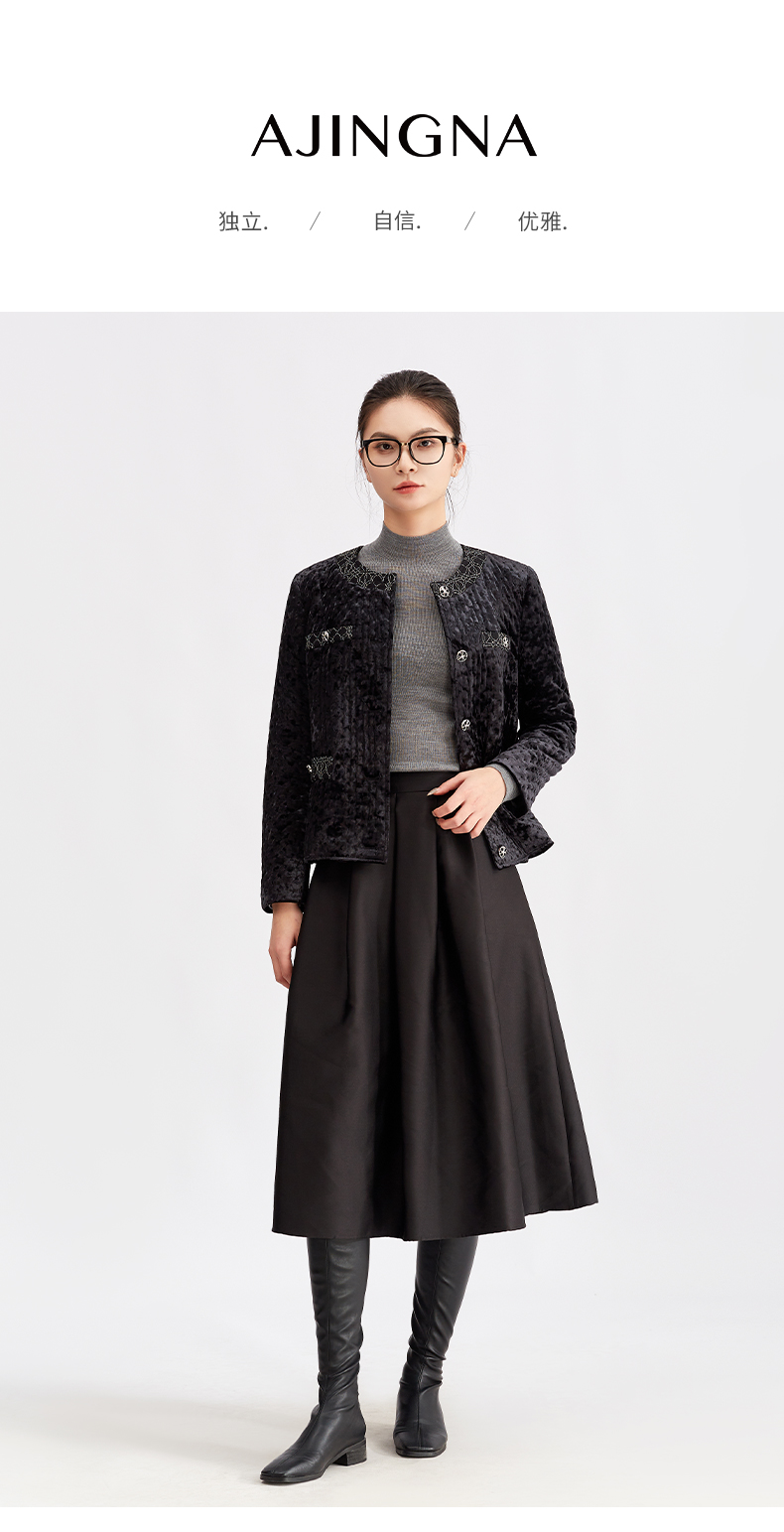 【商场同款】阿菁娜冬季新款宝藏感通勤内搭正肩蕾丝金属扣设计 A30D115020