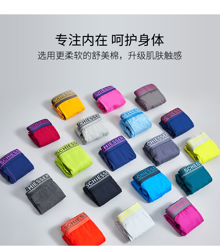 - 来自德国的SCHIESSER舒雅,专注做内衣一百四十余年,不遗余力的材料创新,因材而异的专业剪裁,健康环保的加工技术以及充满文化关注的时尚主题,做你认识之外的舒适内衣。