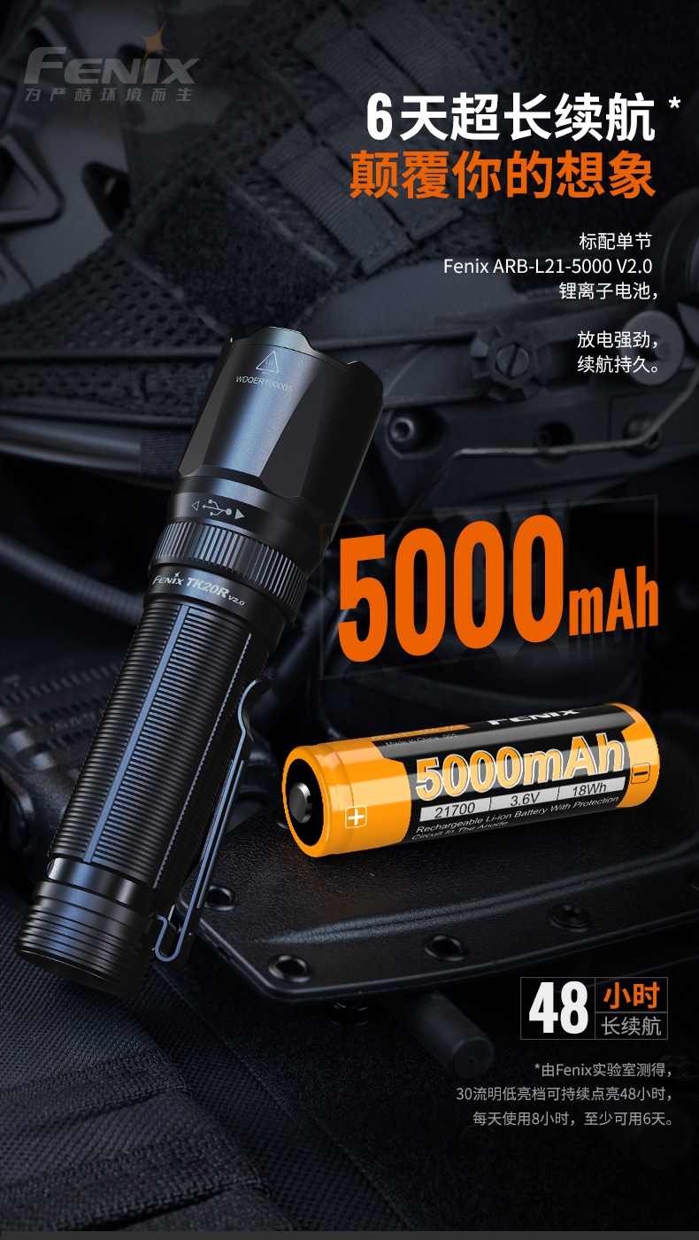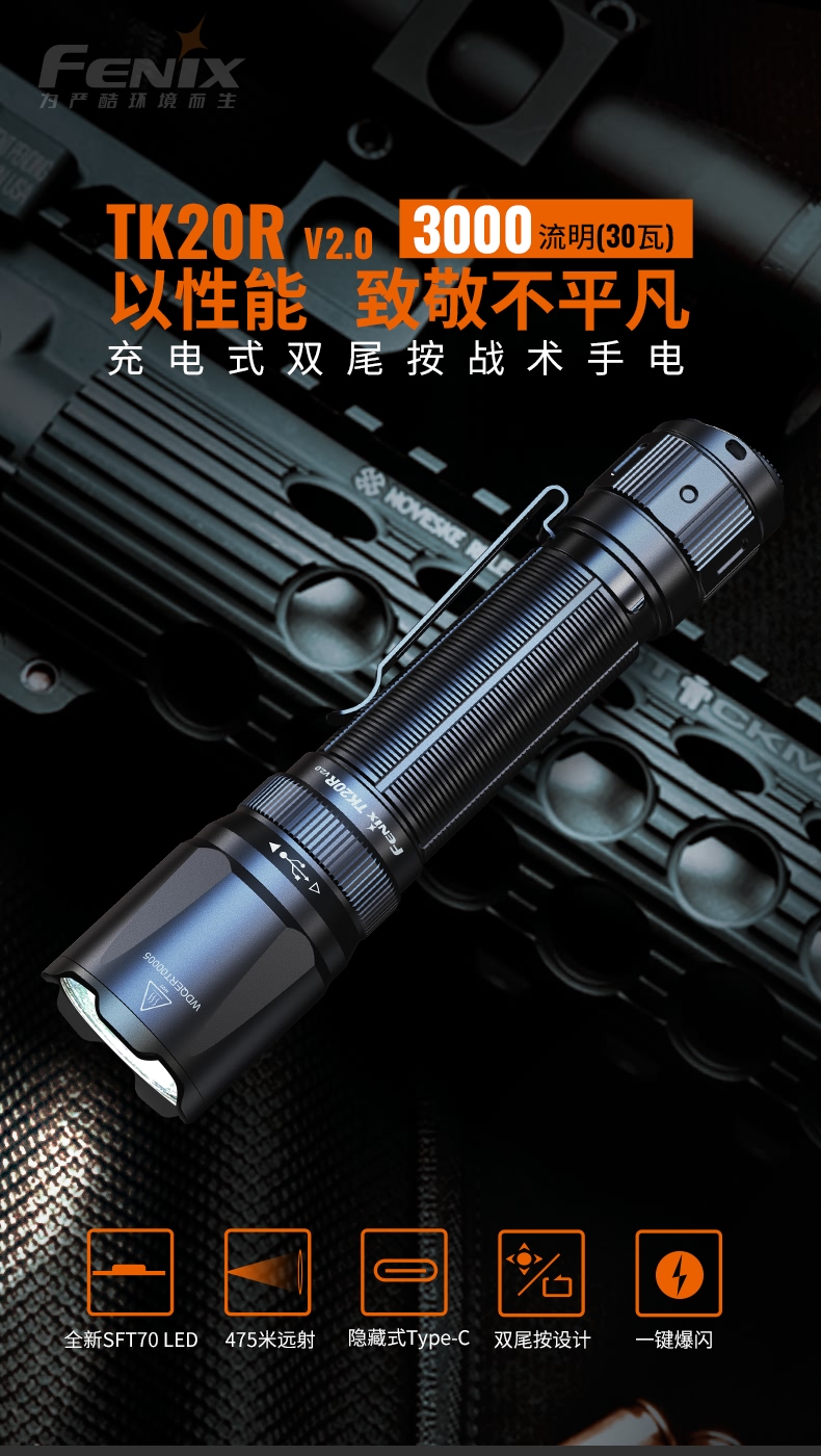 Fenix菲尼克斯 TK20R V2.0手电筒强光充电Type-C超亮远射战术手电