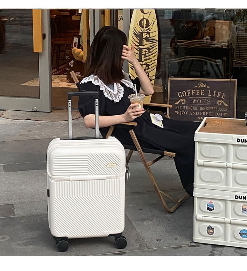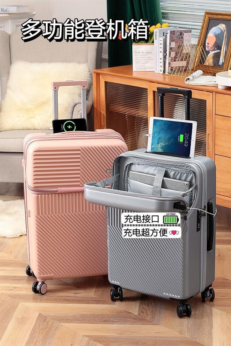 【多功能行李箱❗侧面拿东西敲方便】便携式充电接口,网红行李箱新款女学生前置开口密码行李箱子寸登机箱旅行箱,rf