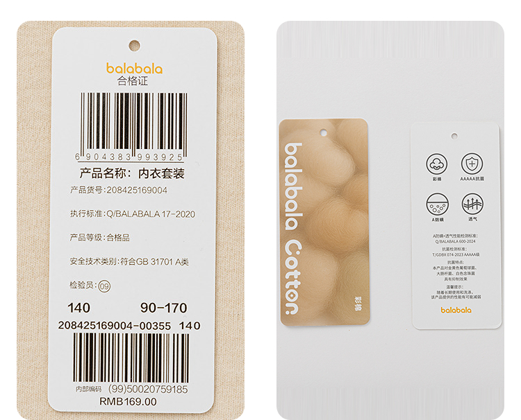 巴拉巴拉balaOne女童内衣套装儿童2件套新款童装2025秋冬抗菌舒适