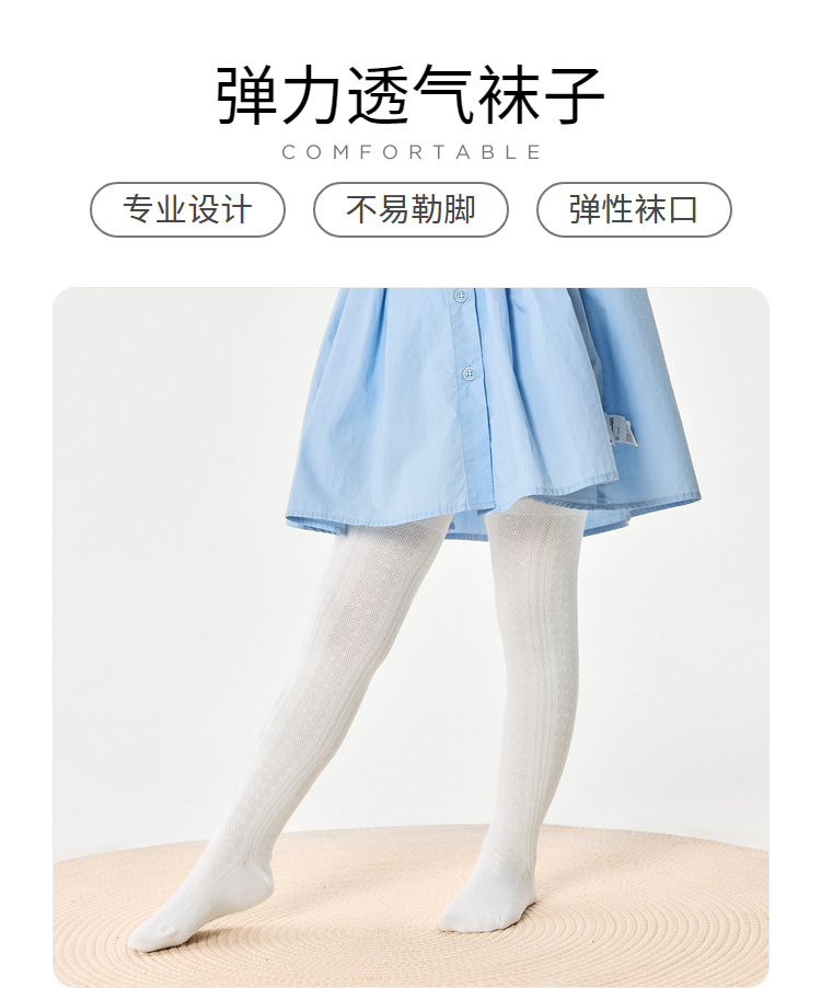 巴拉巴拉儿童连裤袜女童网眼袜夏季薄款透气打底小童肌理萌单双装