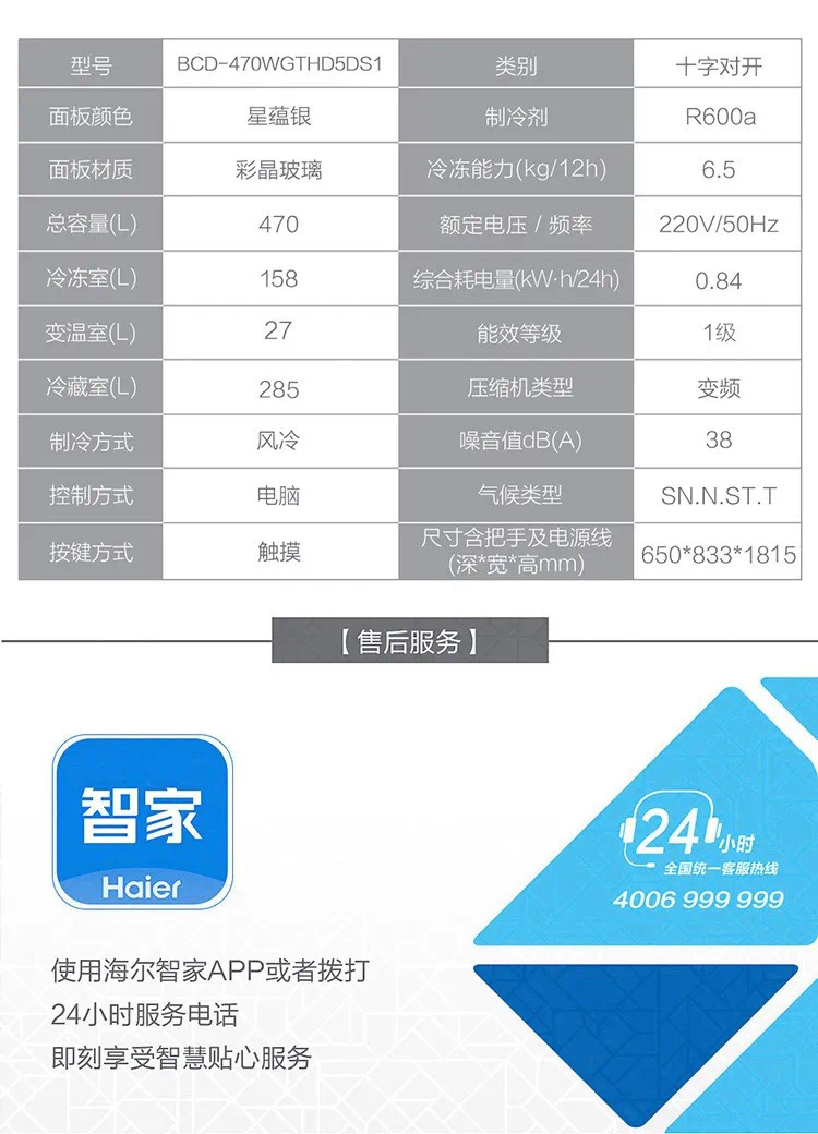 海尔(Haier)冰箱 BCD-470WGHTD5DS1