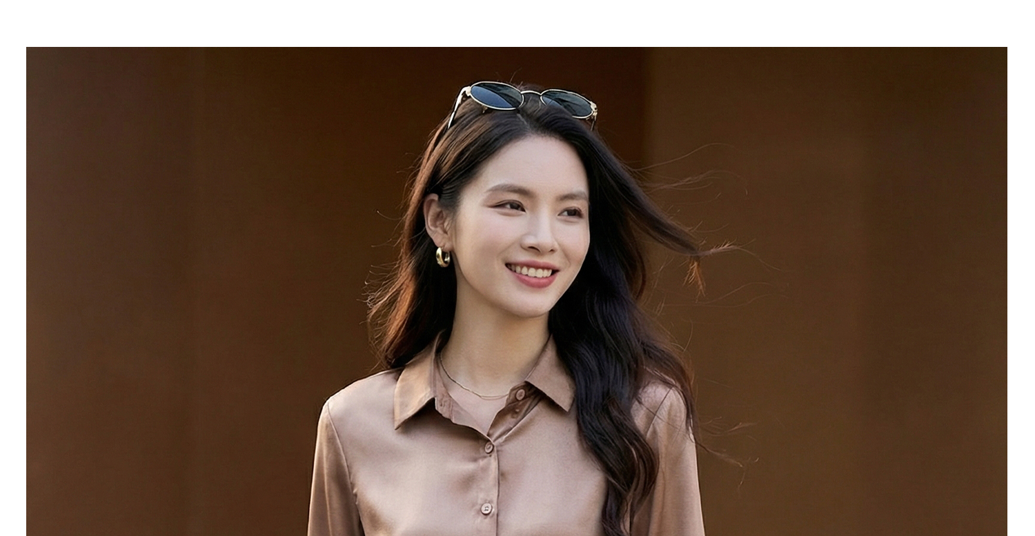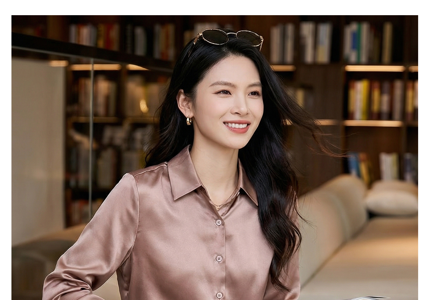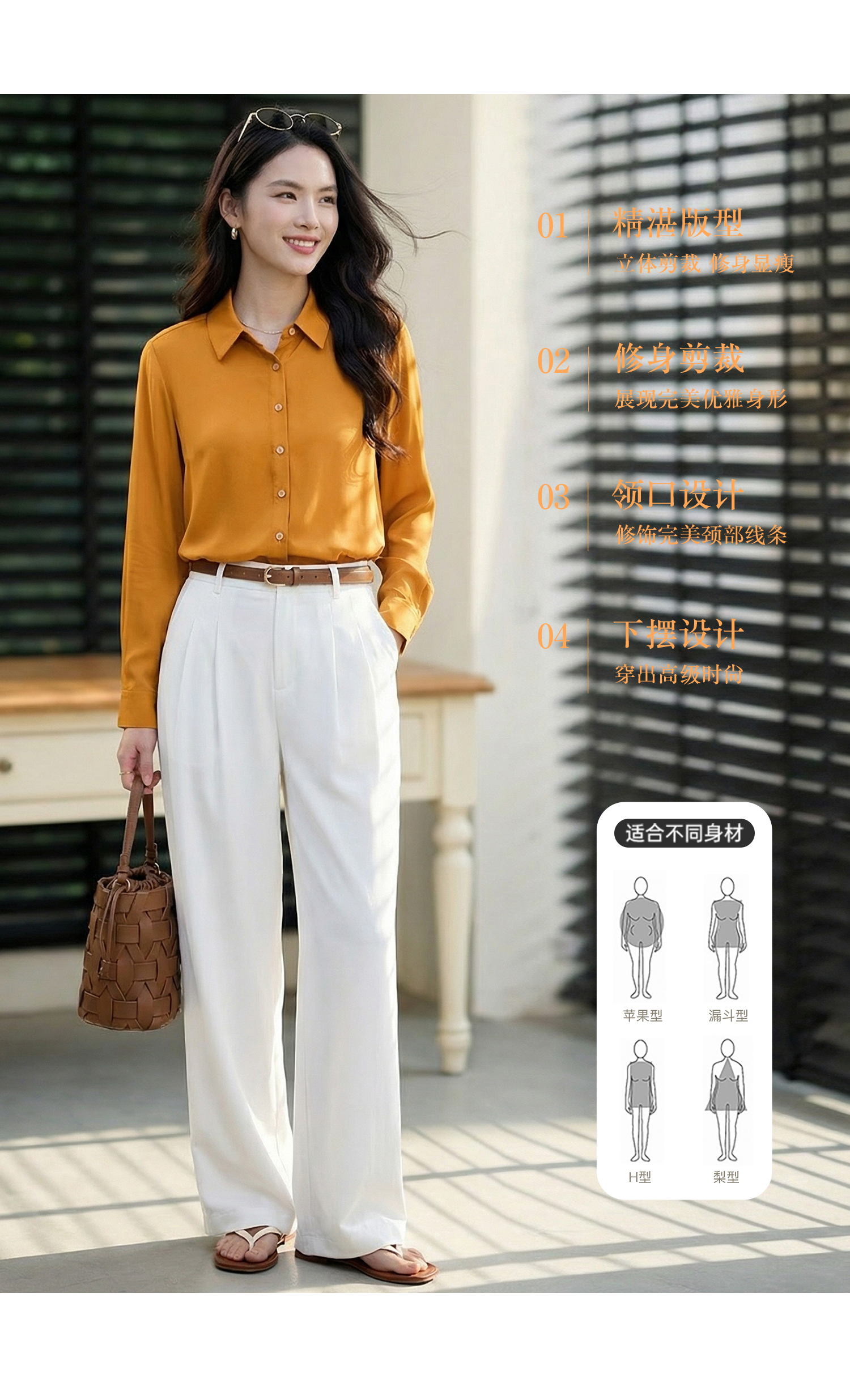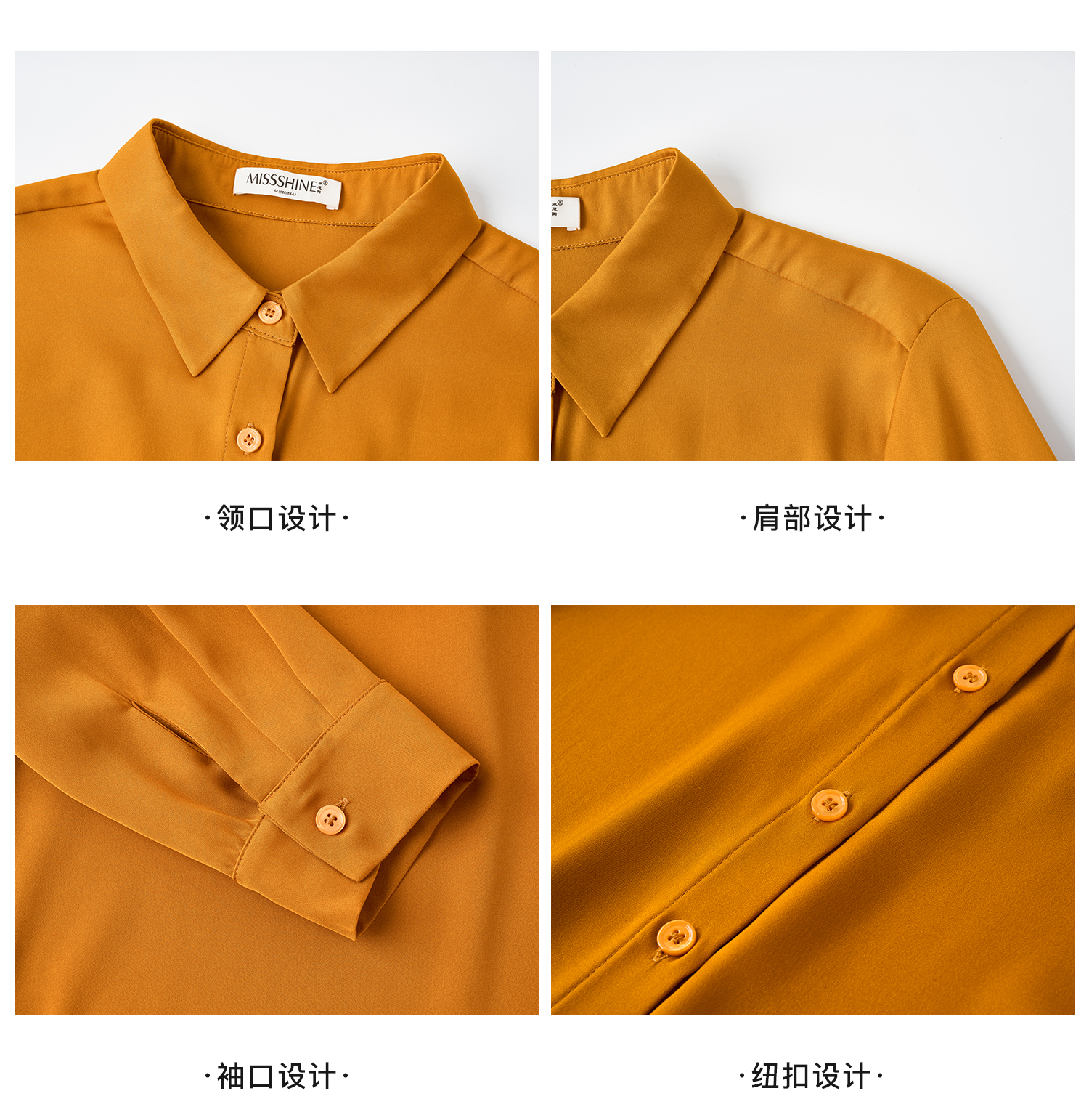 「琥珀光感桑蚕丝衬衫」暖润缎感 优质桑蚕 亲肤养肤 米思阳2026春季新款舒适真丝衬衫 简约通勤风职业翻领单排扣衬衫长袖上衣1419