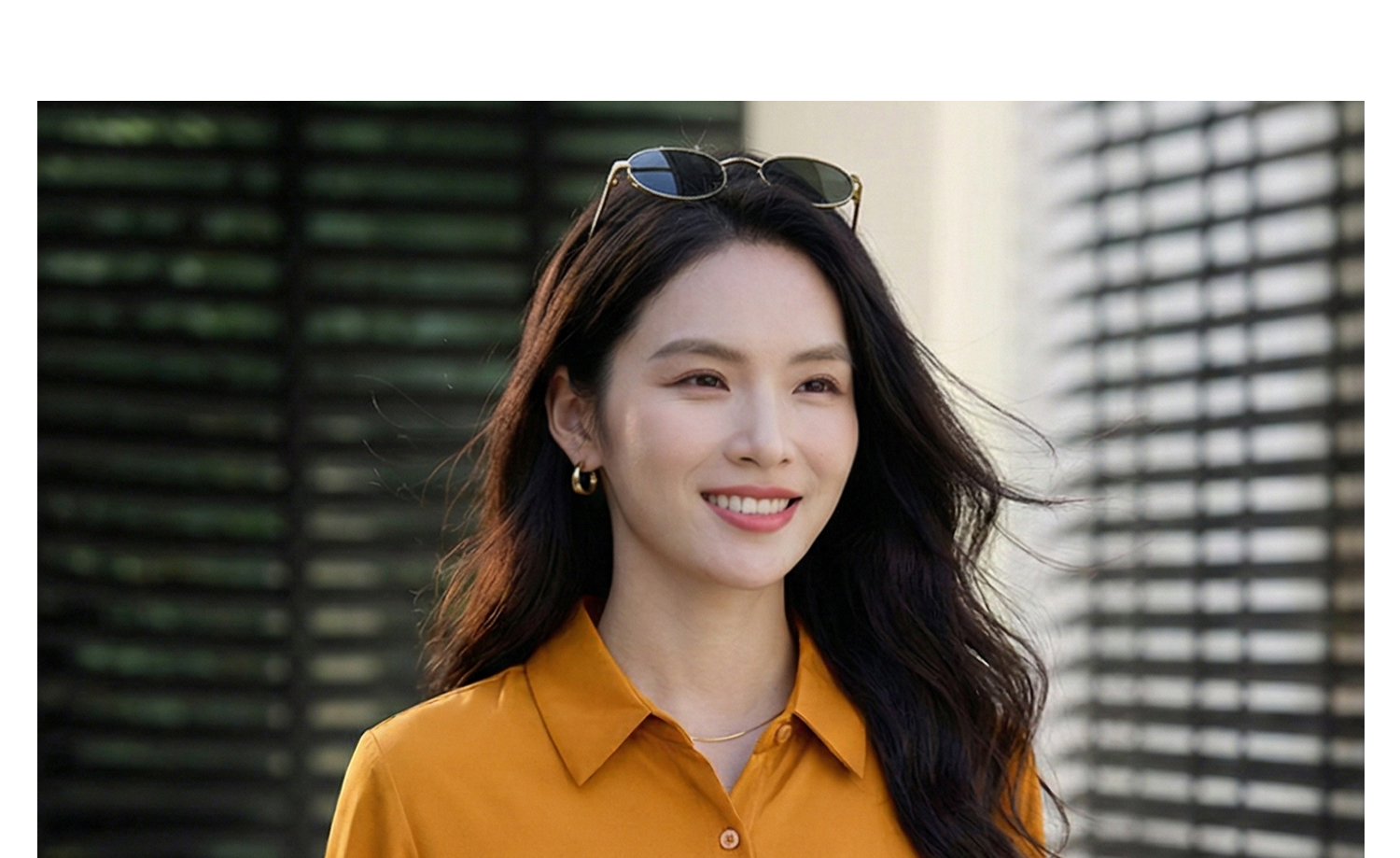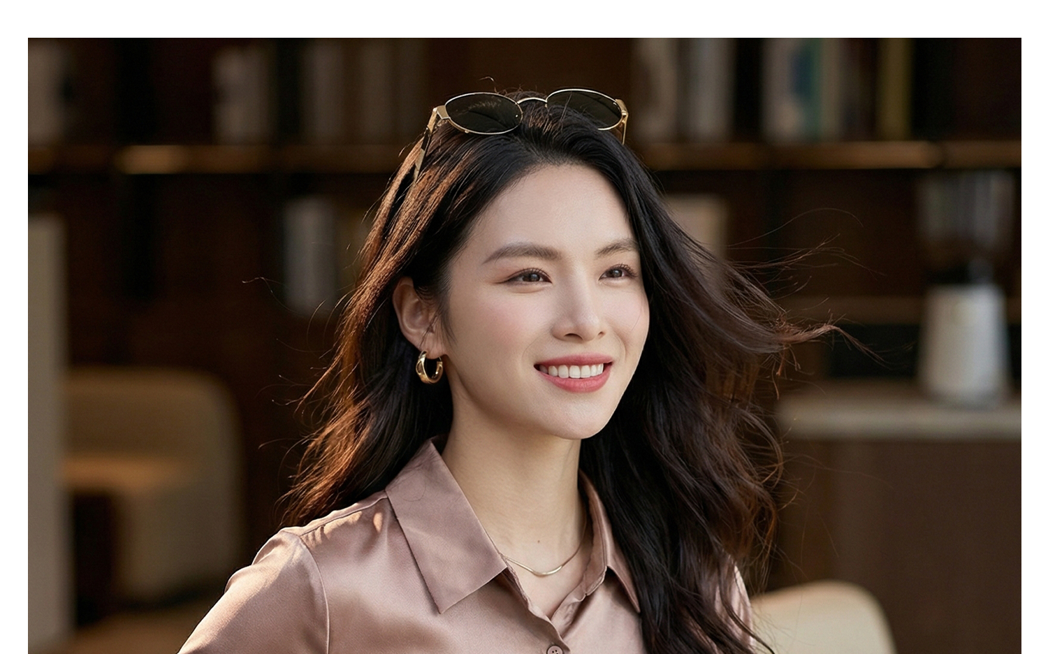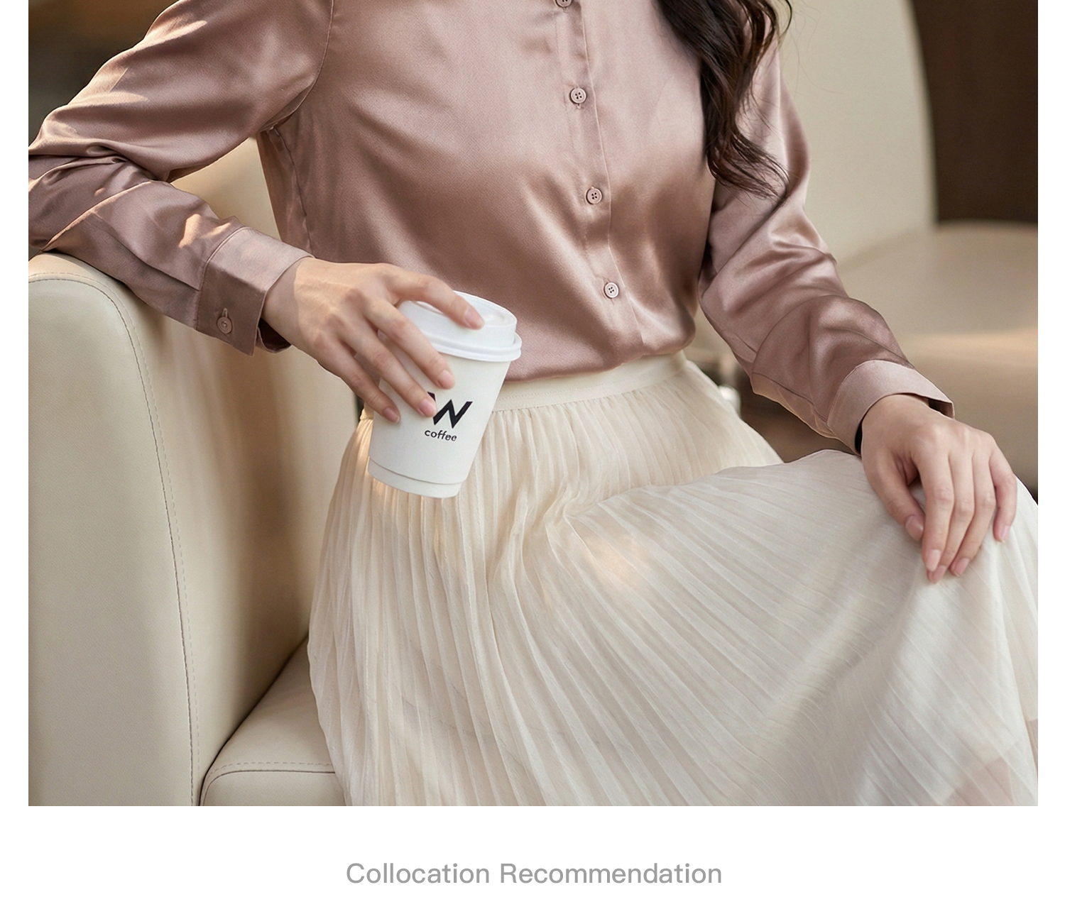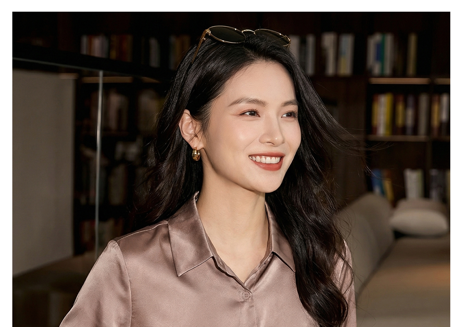 「琥珀光感桑蚕丝衬衫」暖润缎感 优质桑蚕 亲肤养肤 米思阳2026春季新款舒适真丝衬衫 简约通勤风职业翻领单排扣衬衫长袖上衣1419