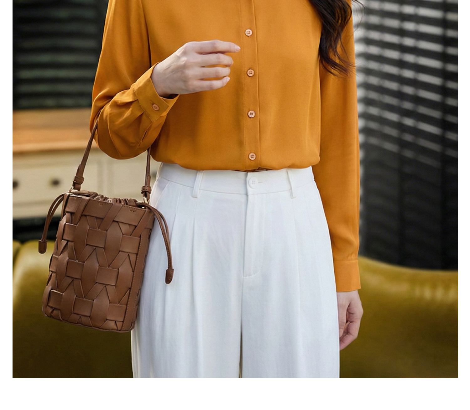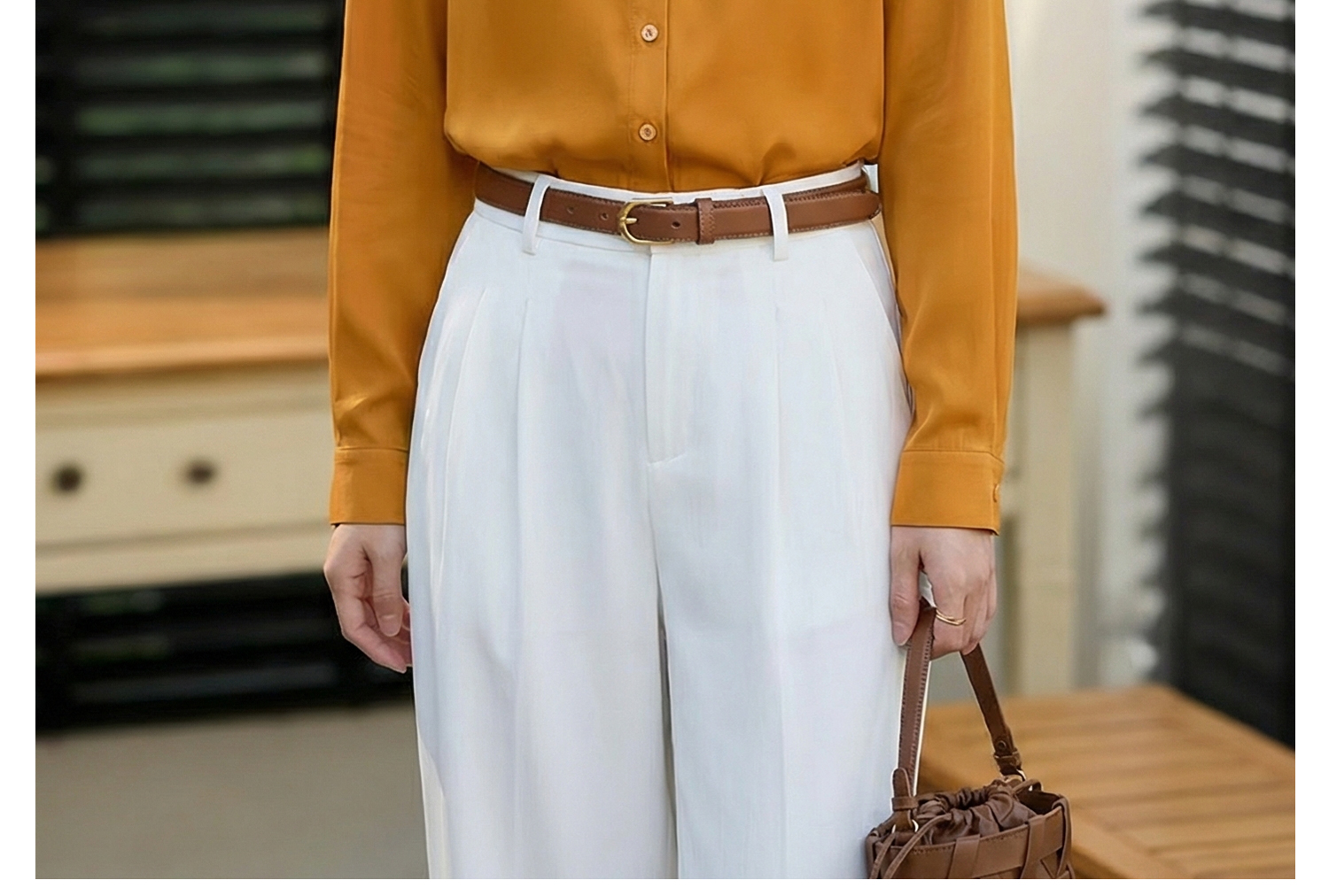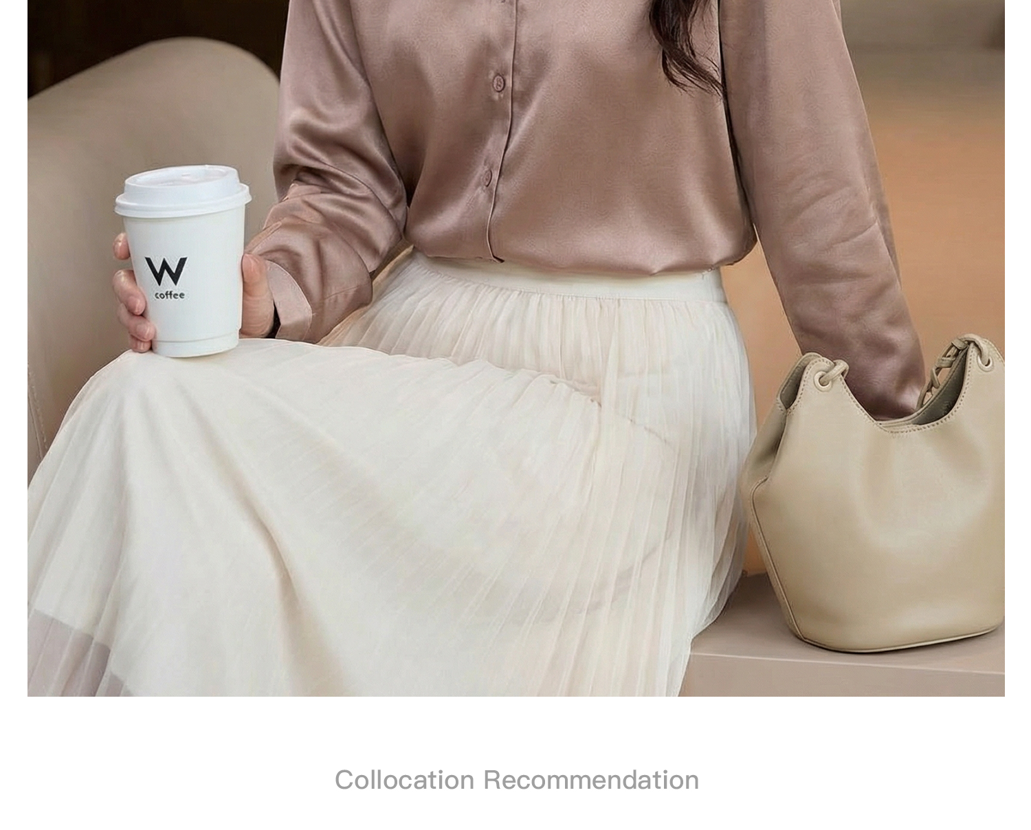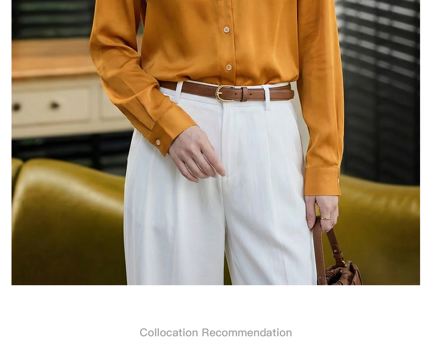 「琥珀光感桑蚕丝衬衫」暖润缎感 优质桑蚕 亲肤养肤 米思阳2026春季新款舒适真丝衬衫 简约通勤风职业翻领单排扣衬衫长袖上衣1419