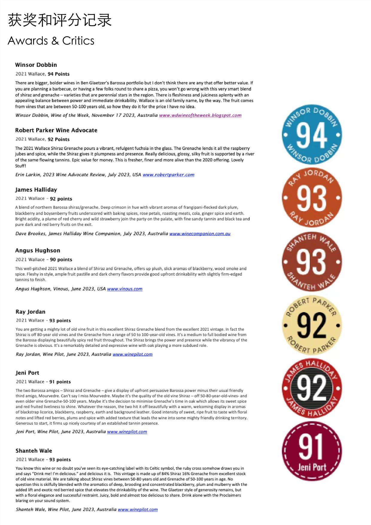 澳洲膜拜酒庄格雷策-华莱士干红葡萄酒750ML*1支