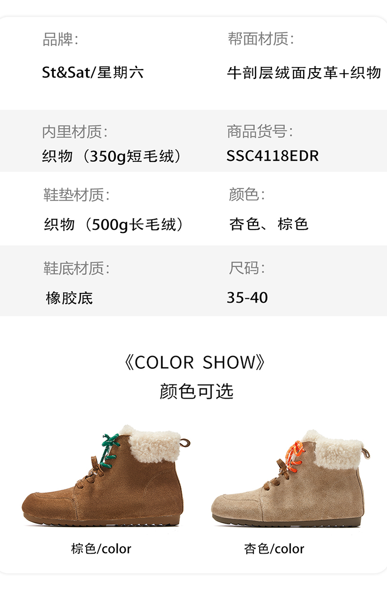 星期六复古百搭加绒加厚保暖高帮棉鞋女SSC4118EDR
