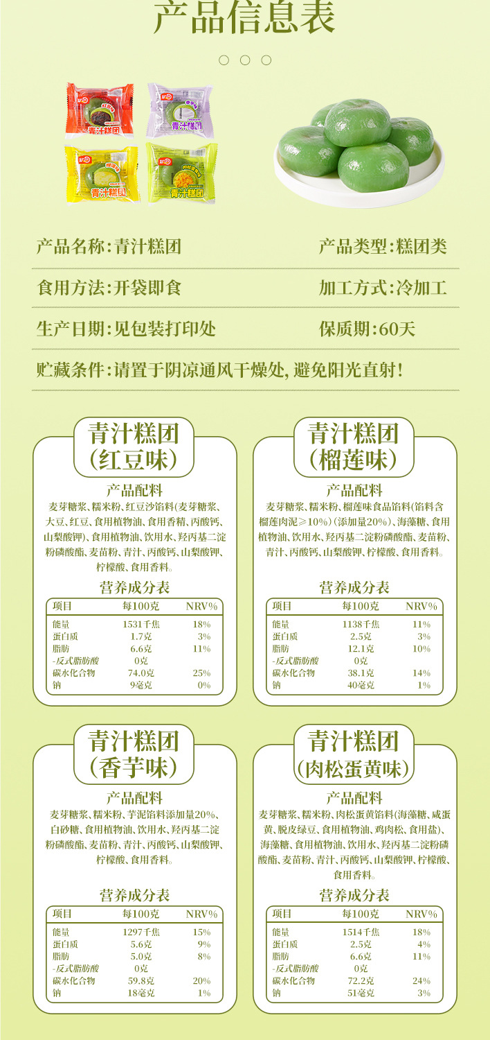 【9.9限时购❗青汁糕团子】甄选品质原料制作,多种口味可选,红豆味/香芋味/榴莲味/肉松蛋黄味,网红传统糕点,糯米春天的味道零食,下午茶休闲茶点L