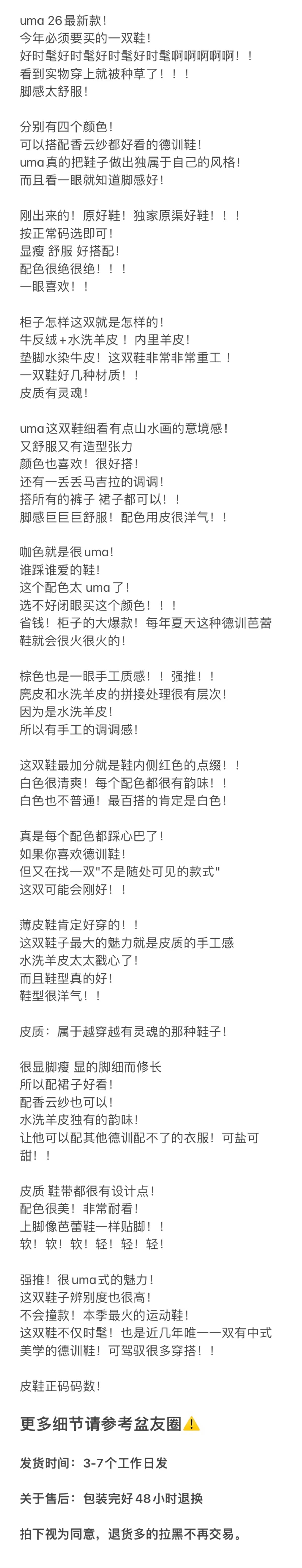 重磅推荐 uma芭蕾德训鞋 四色入! 反牛绒/水洗羊皮拼接 平底系带休闲鞋