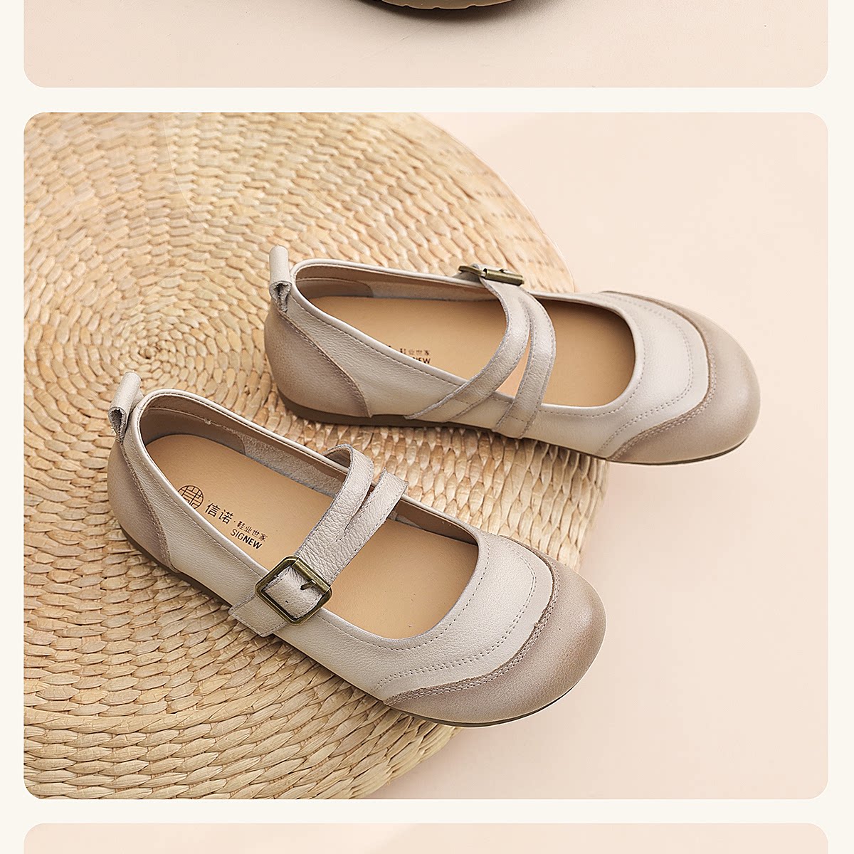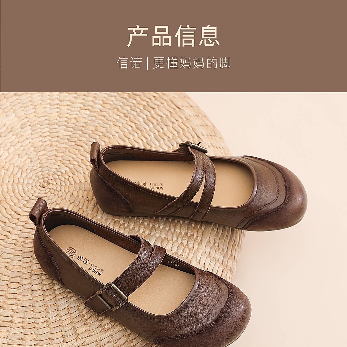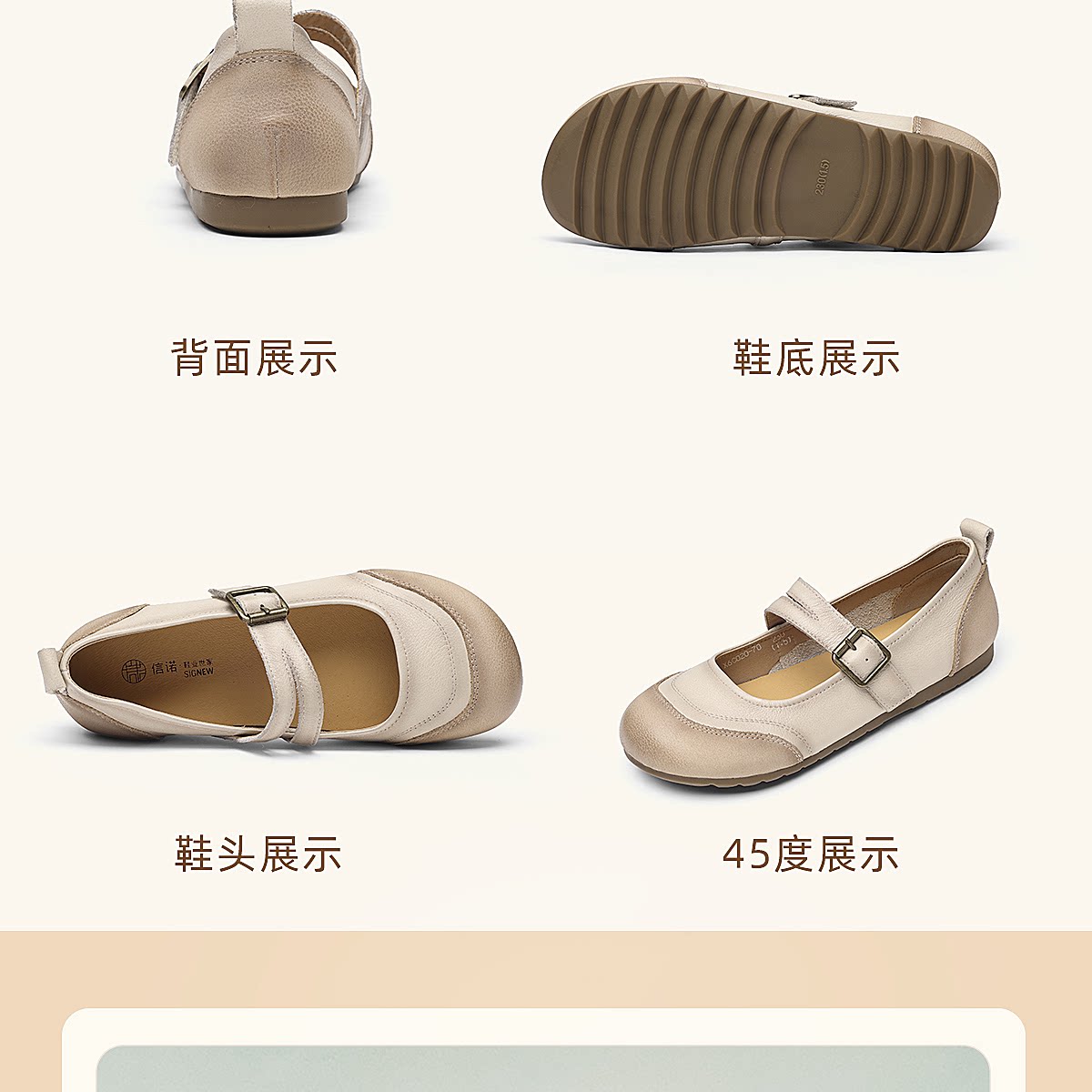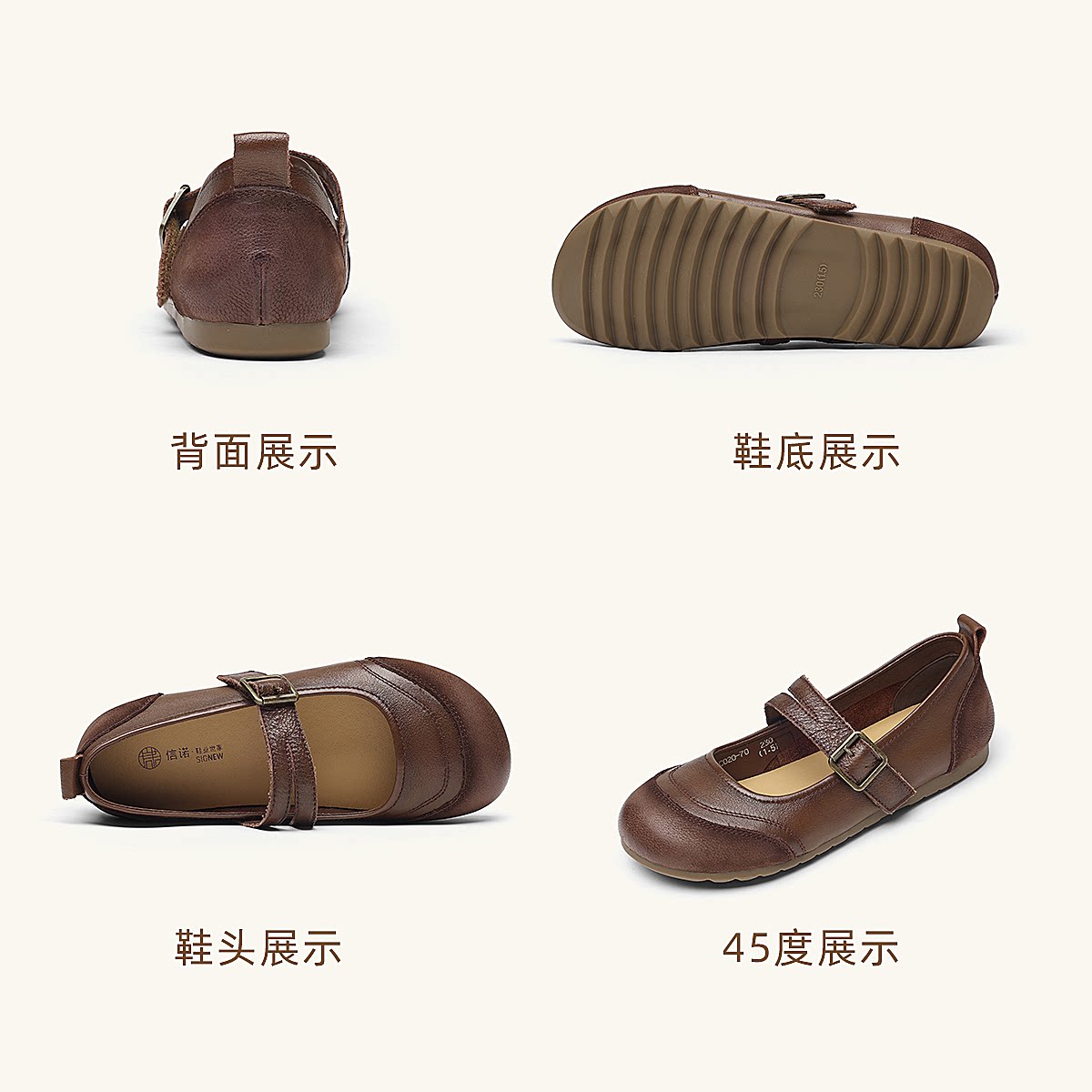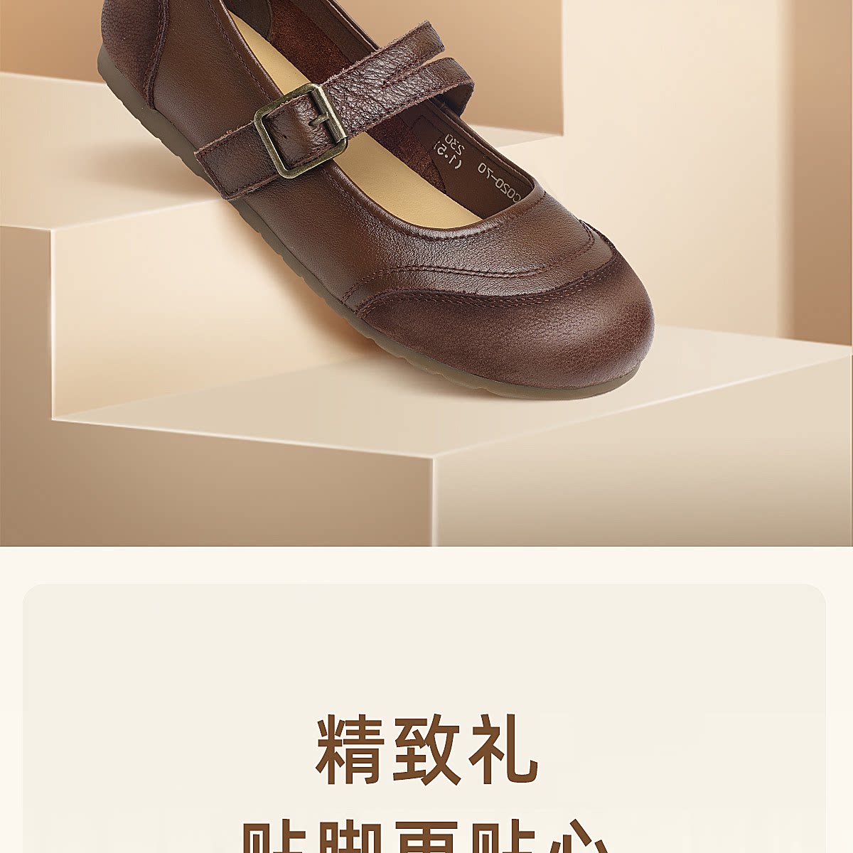 复古风真皮玛丽珍鞋女一字带扣平底单鞋软底舒适不累脚X6C020-70