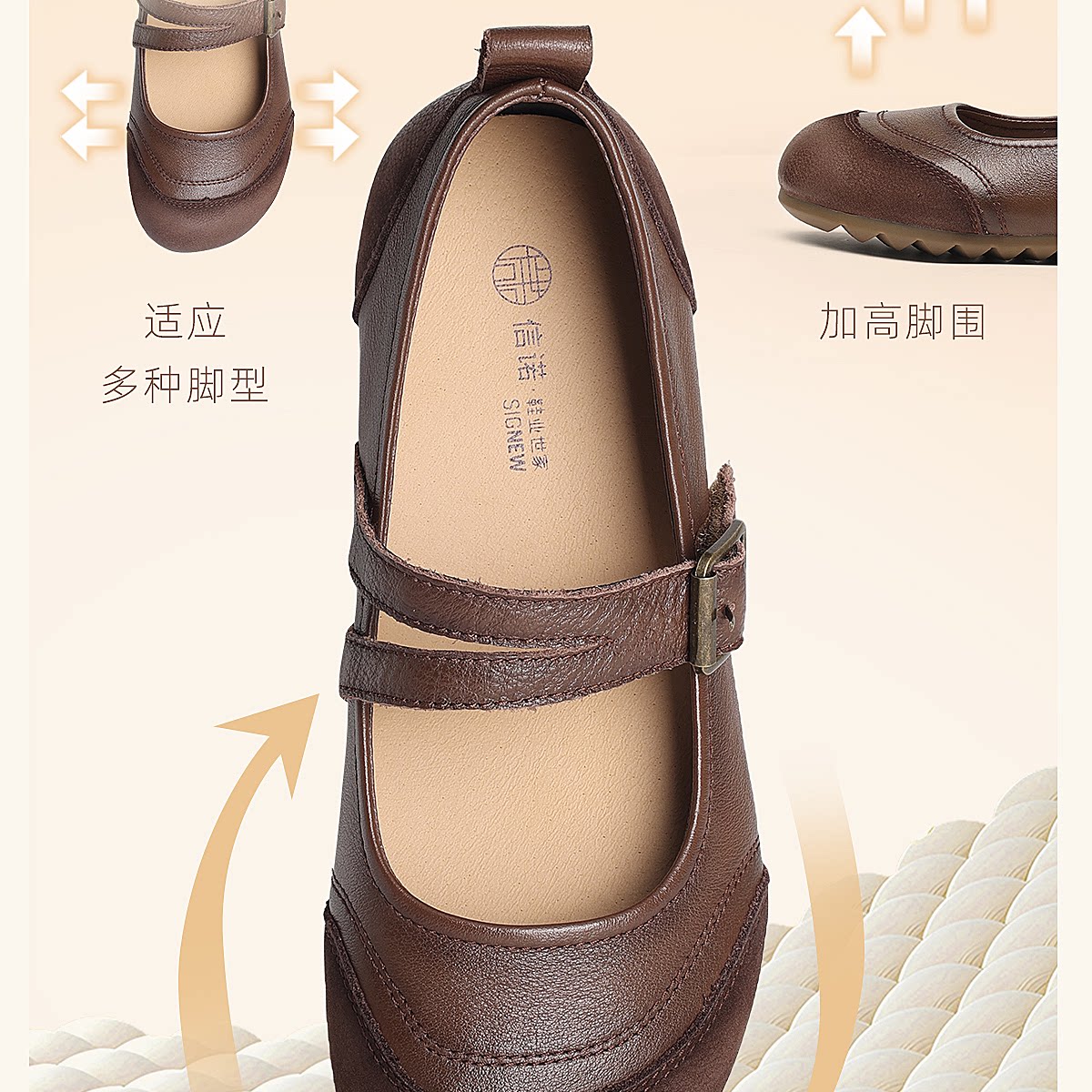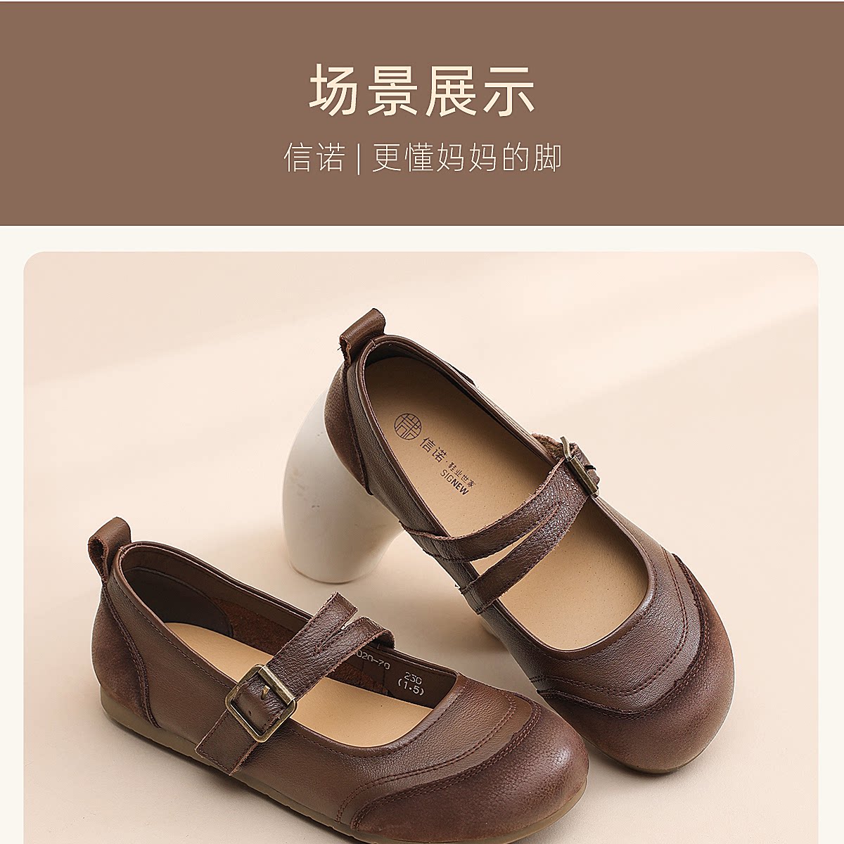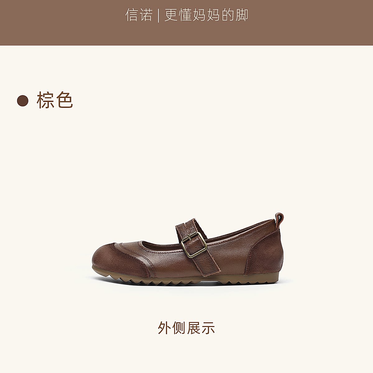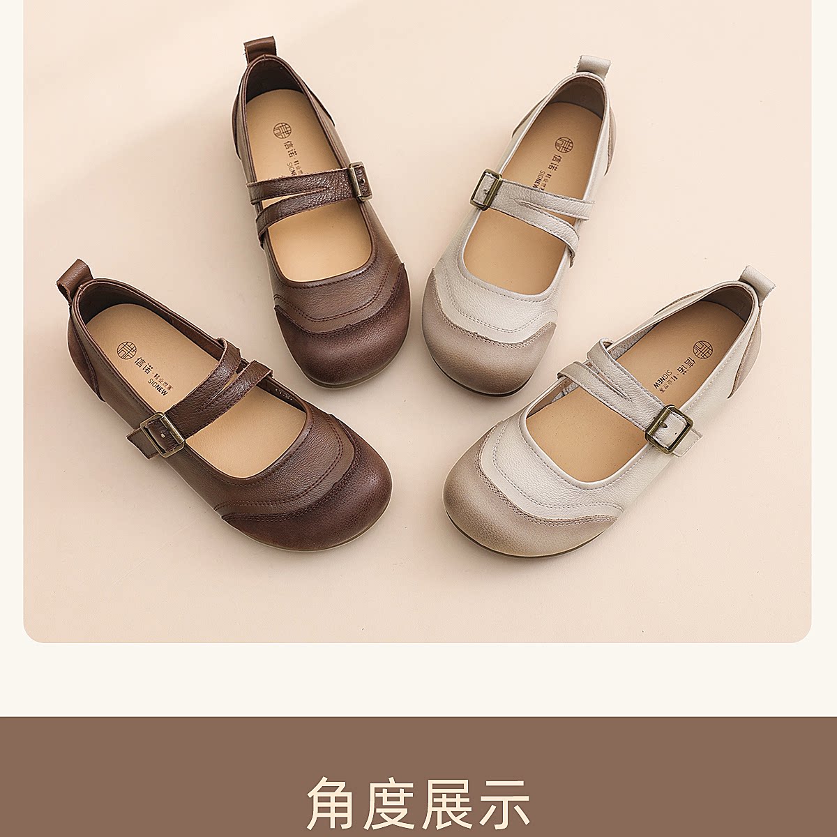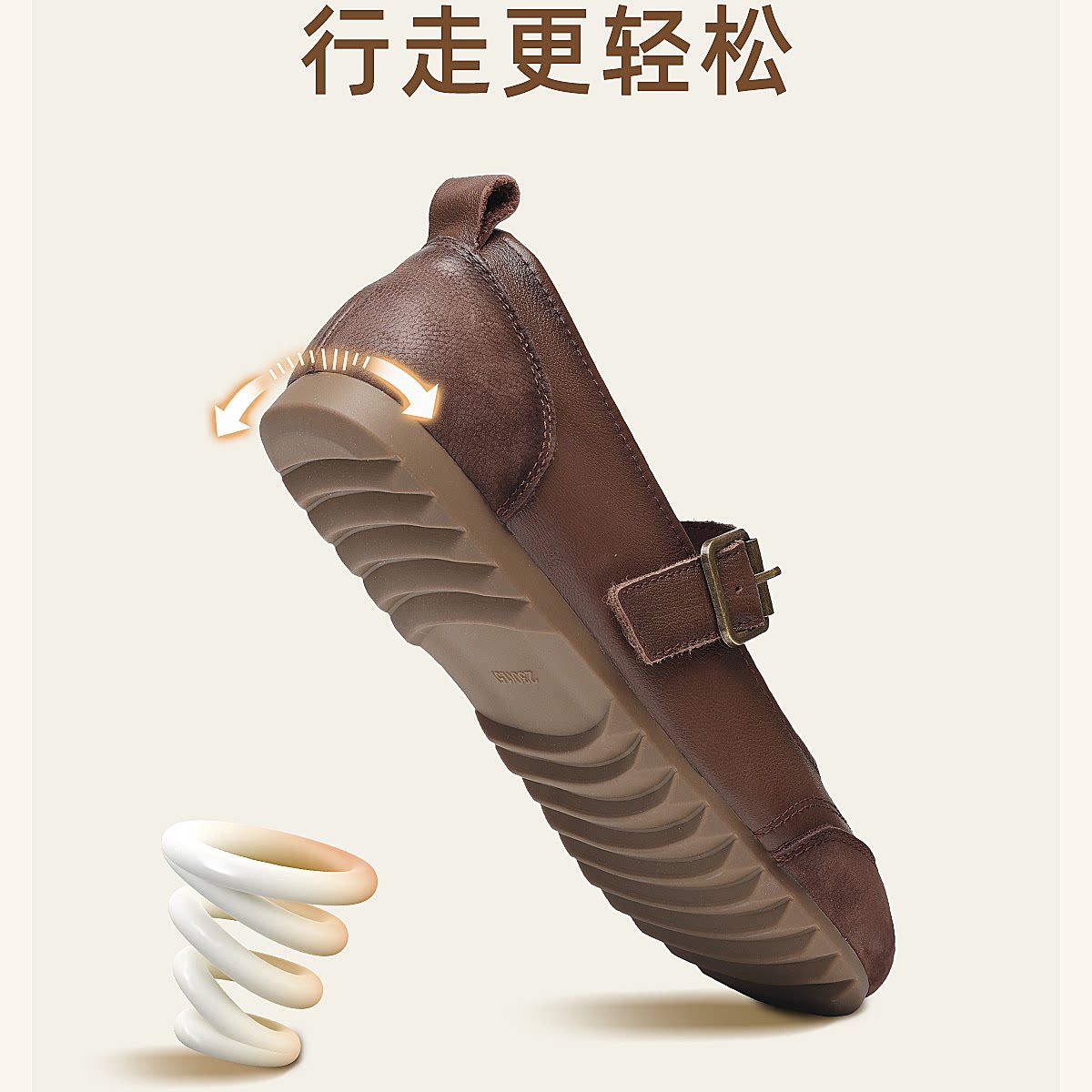 复古风真皮玛丽珍鞋女一字带扣平底单鞋软底舒适不累脚X6C020-70