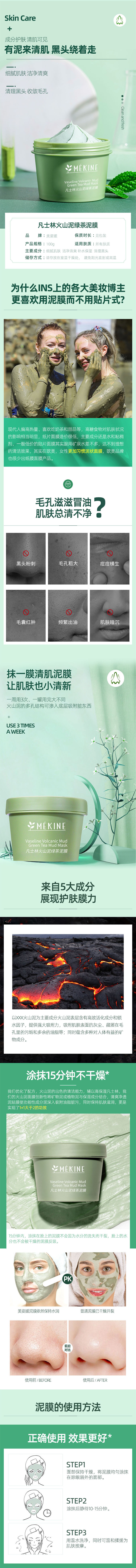 凡士林火山泥绿茶泥膜 100g/瓶