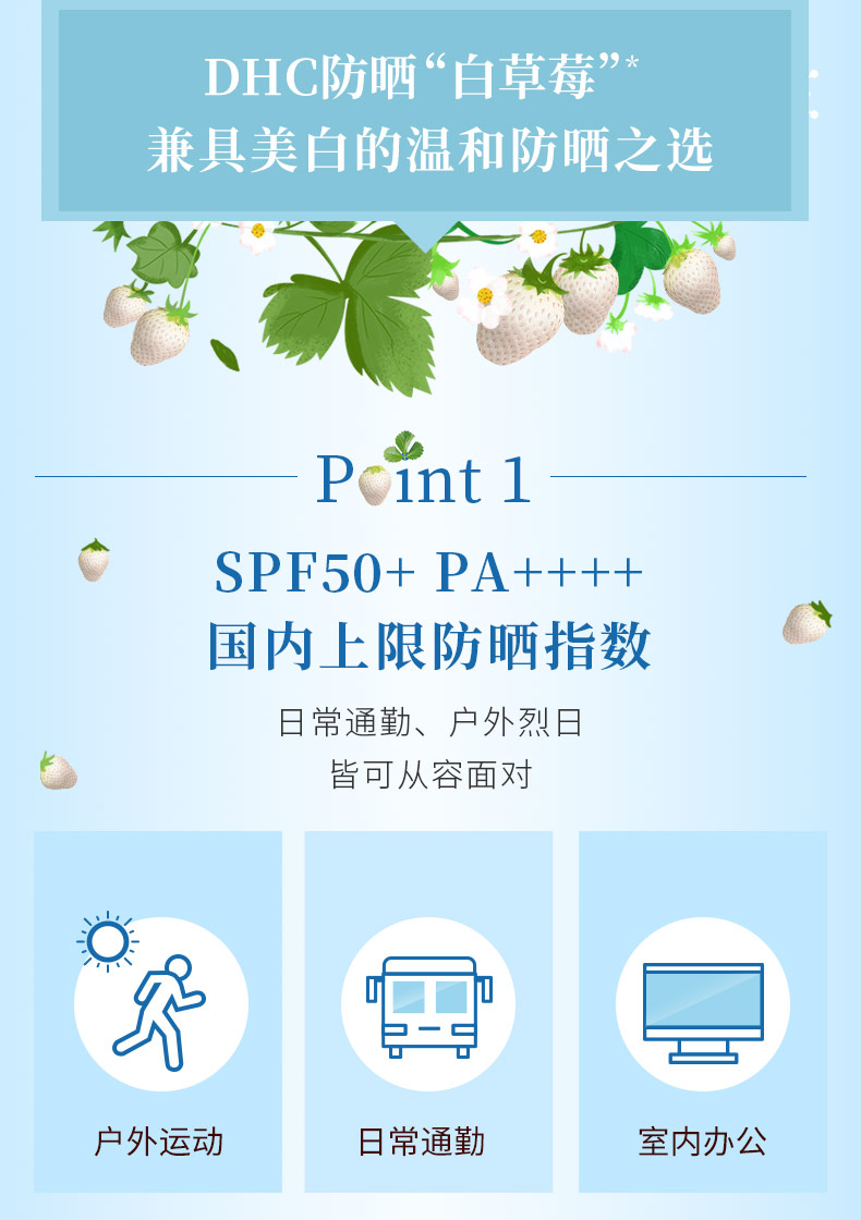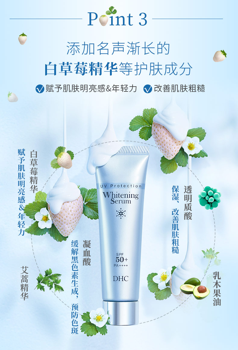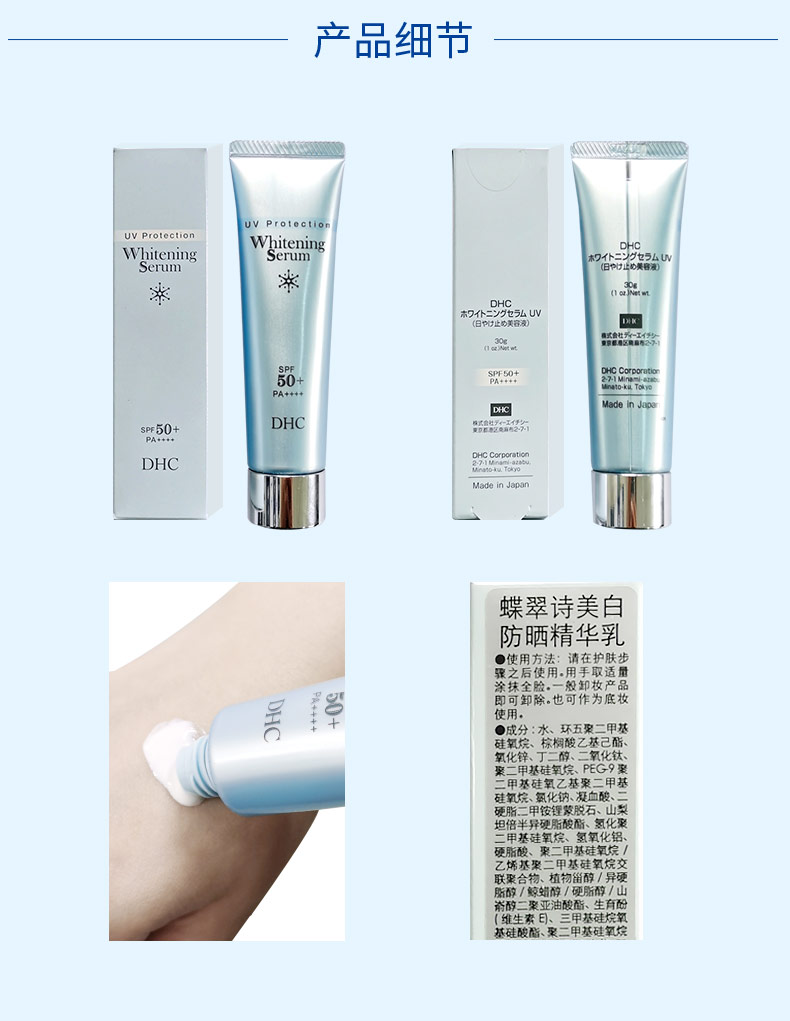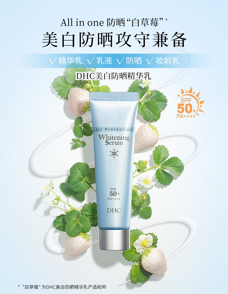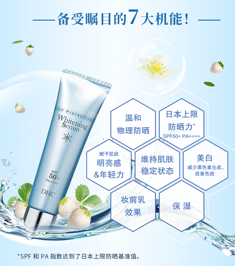 DHC美白防晒精华乳SPF50+/PA++++30g 保湿提亮防晒妆前乳白草莓JPY带授权招加盟代理