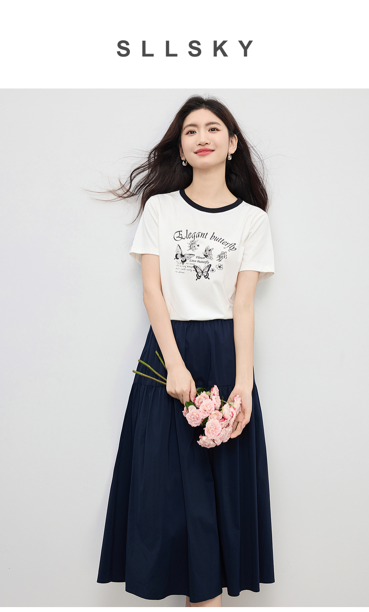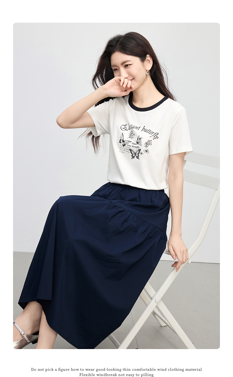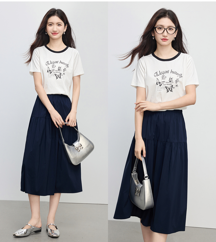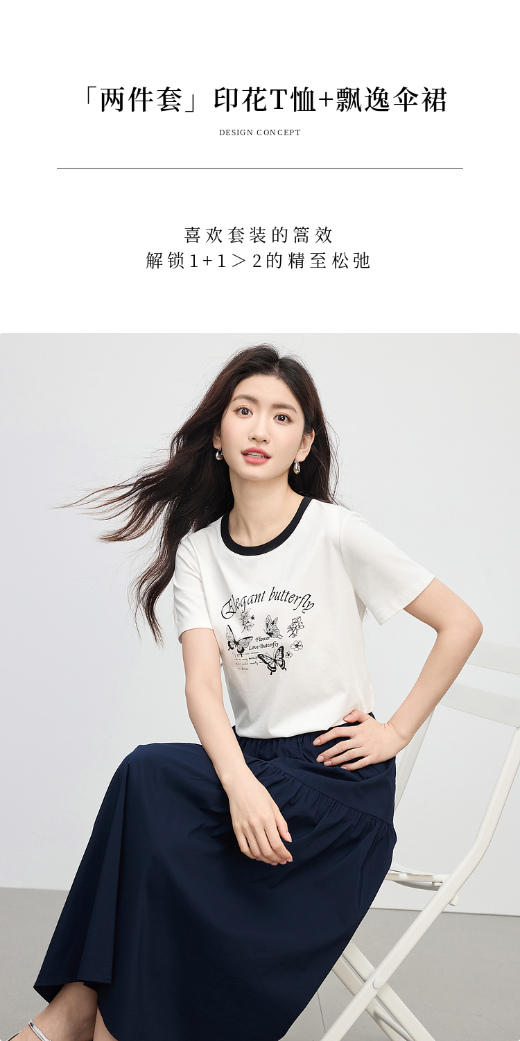 【周末秒杀】熙世界夏季松弛感穿搭套装女2025新款蝴蝶印花T恤a字半身裙两件套