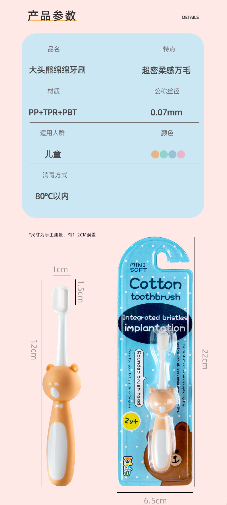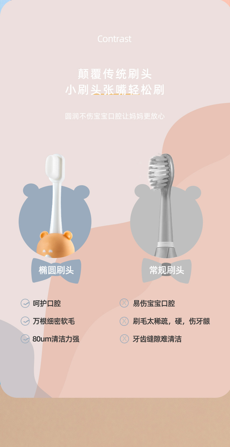 小熊儿童万根毛牙刷单支装2-10岁婴幼儿宝宝软毛牙刷