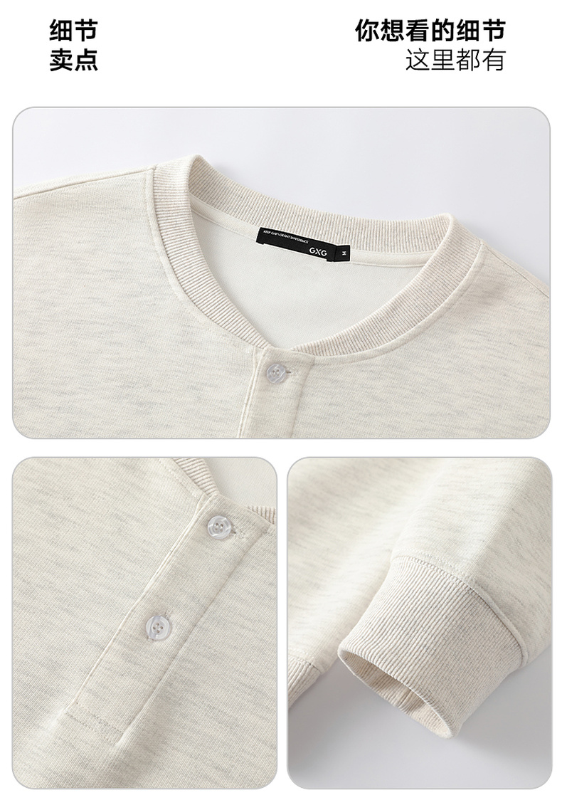 GXG男装25秋季时尚简约半开襟长袖T恤纽扣款圆领套头男式卫衣K&C