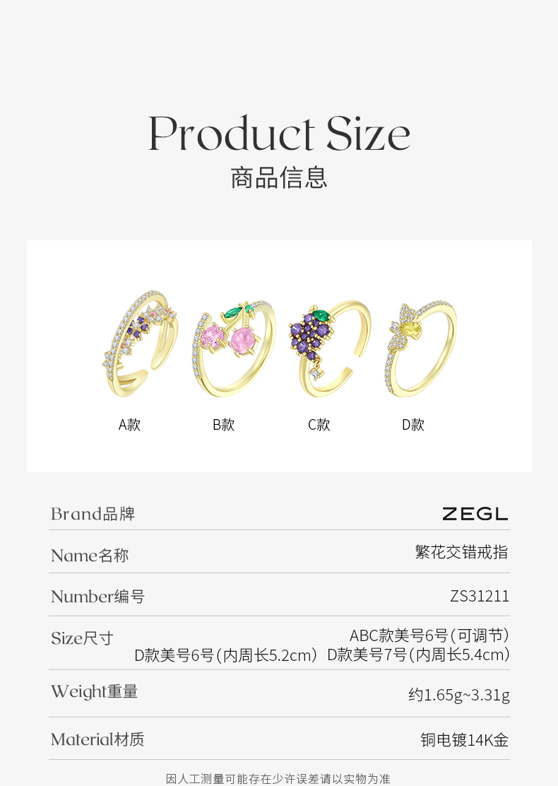 ZEGL设计师粉色樱桃蜜蜂戒指女设计小众轻奢高级感葡萄开口食指戒