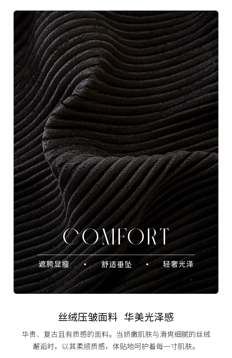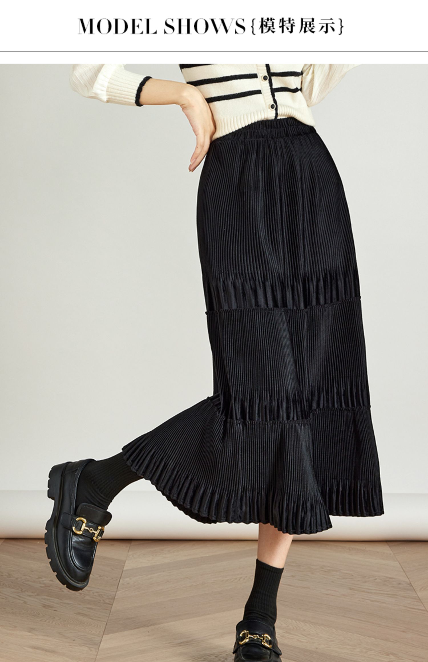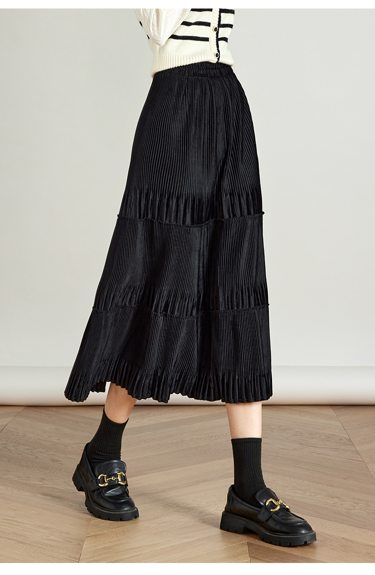 【年终特卖】熙世界复古黑丝绒半身裙女秋冬2025新款中长款A字百褶蛋糕裙长裙