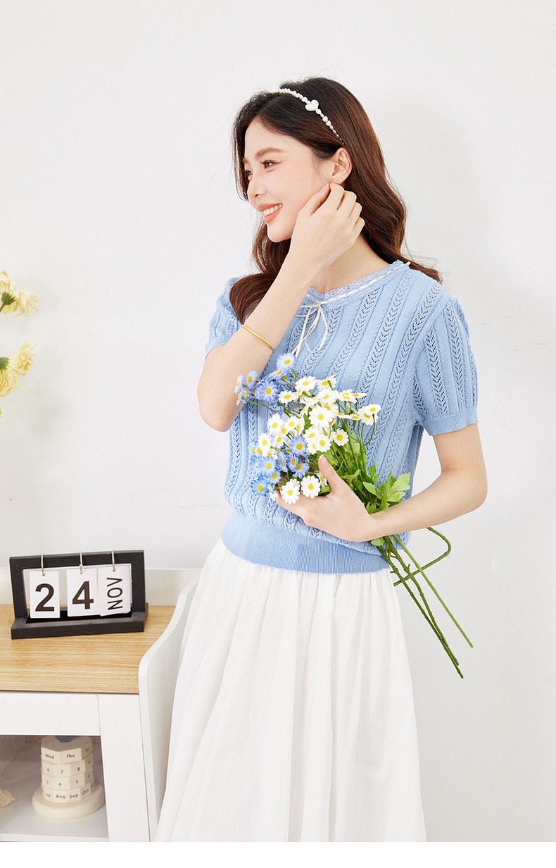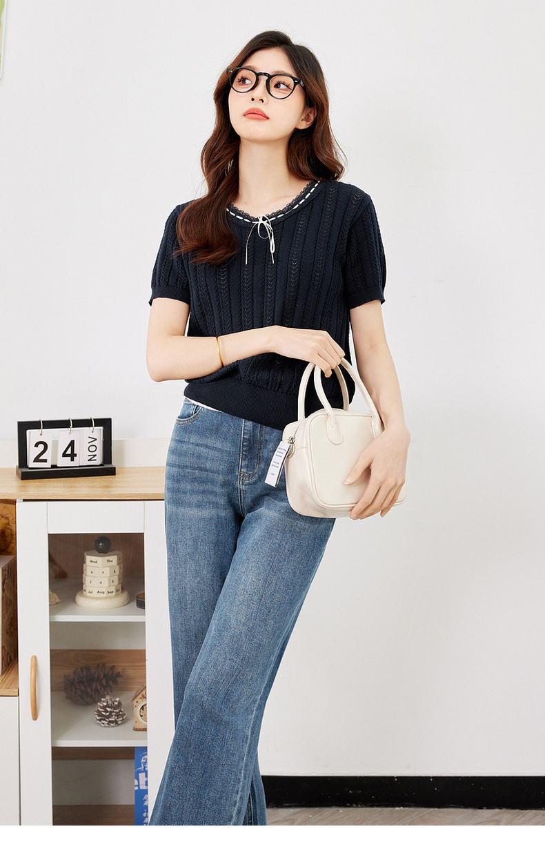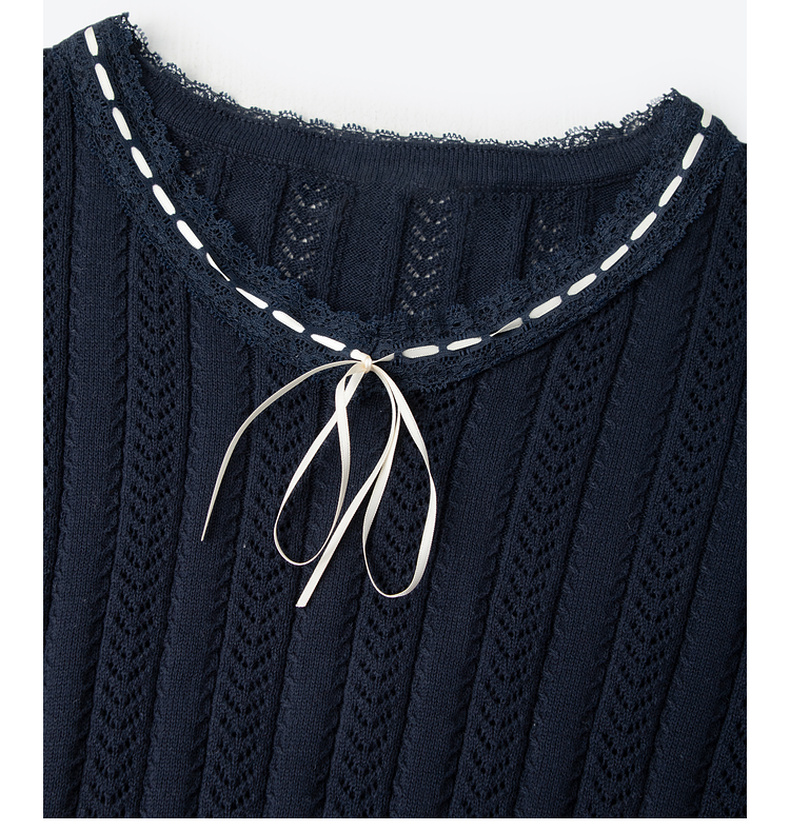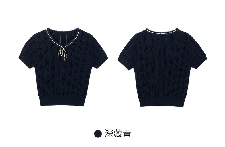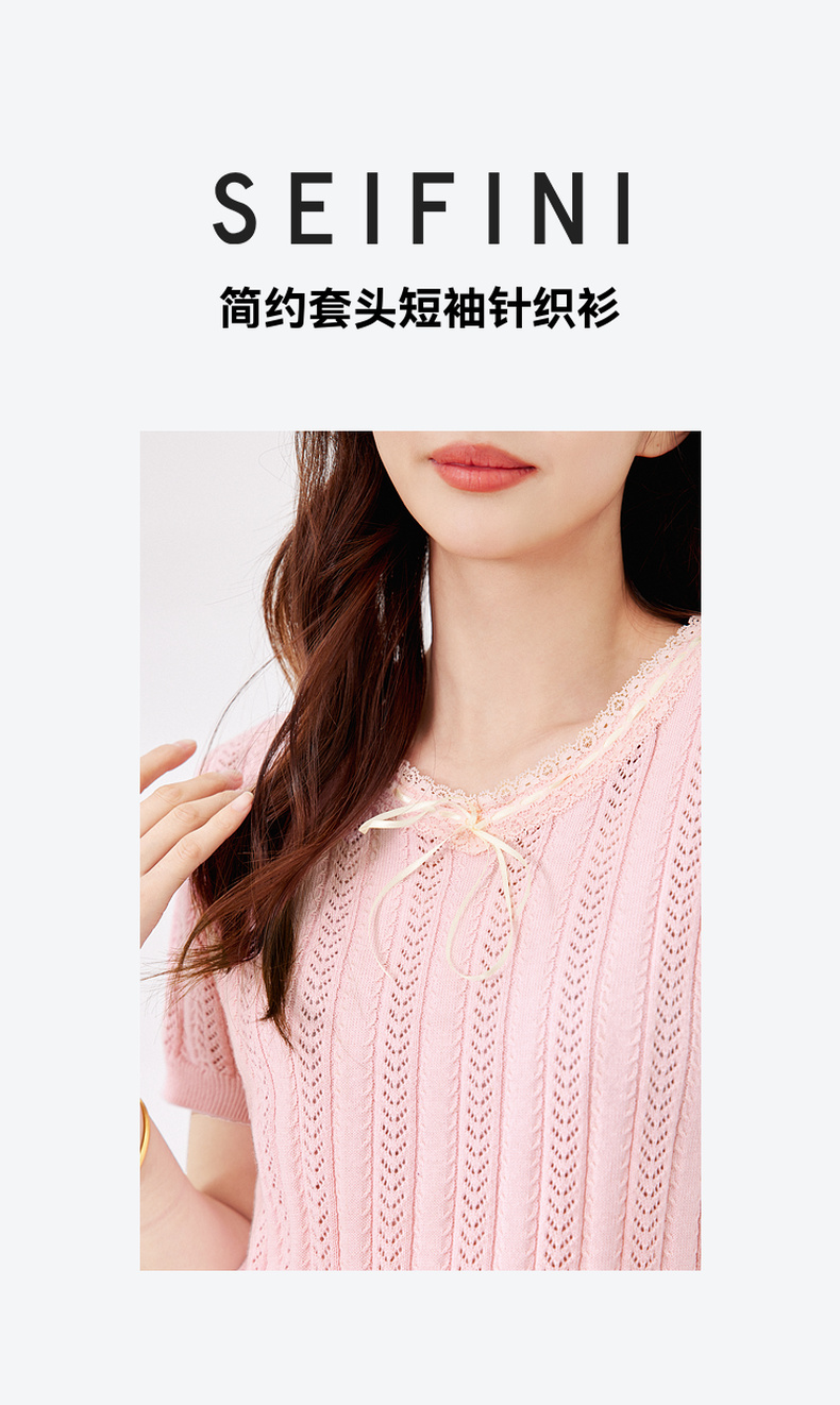 【严选】诗凡黎春领口精致丝带装饰套头毛衫SF3130621