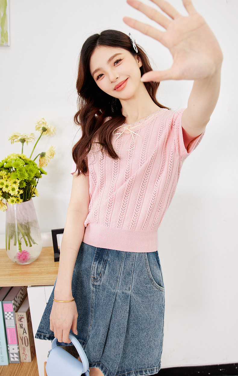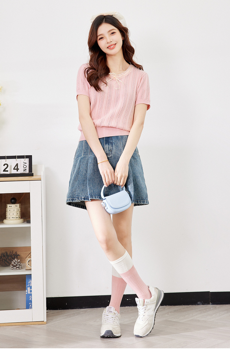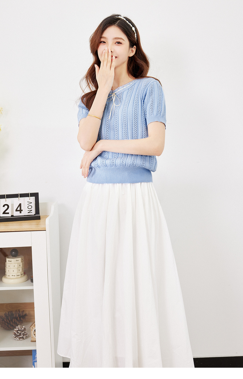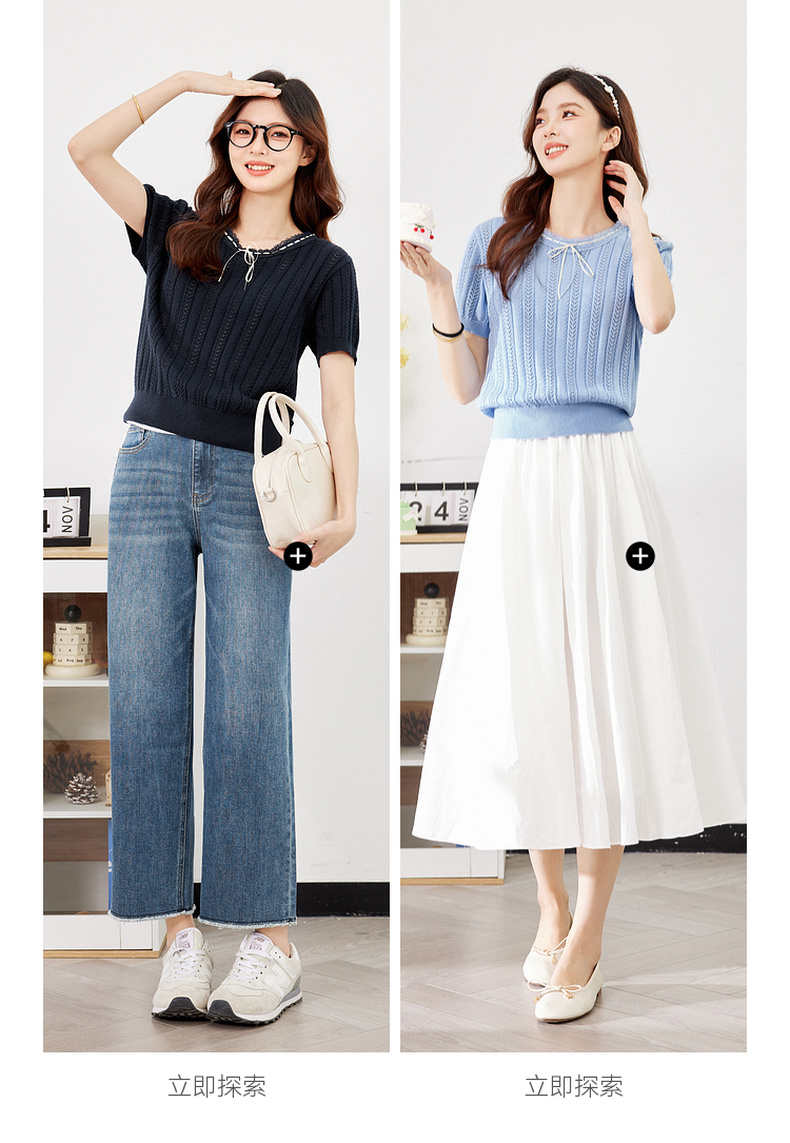 【严选】诗凡黎春领口精致丝带装饰套头毛衫SF3130621