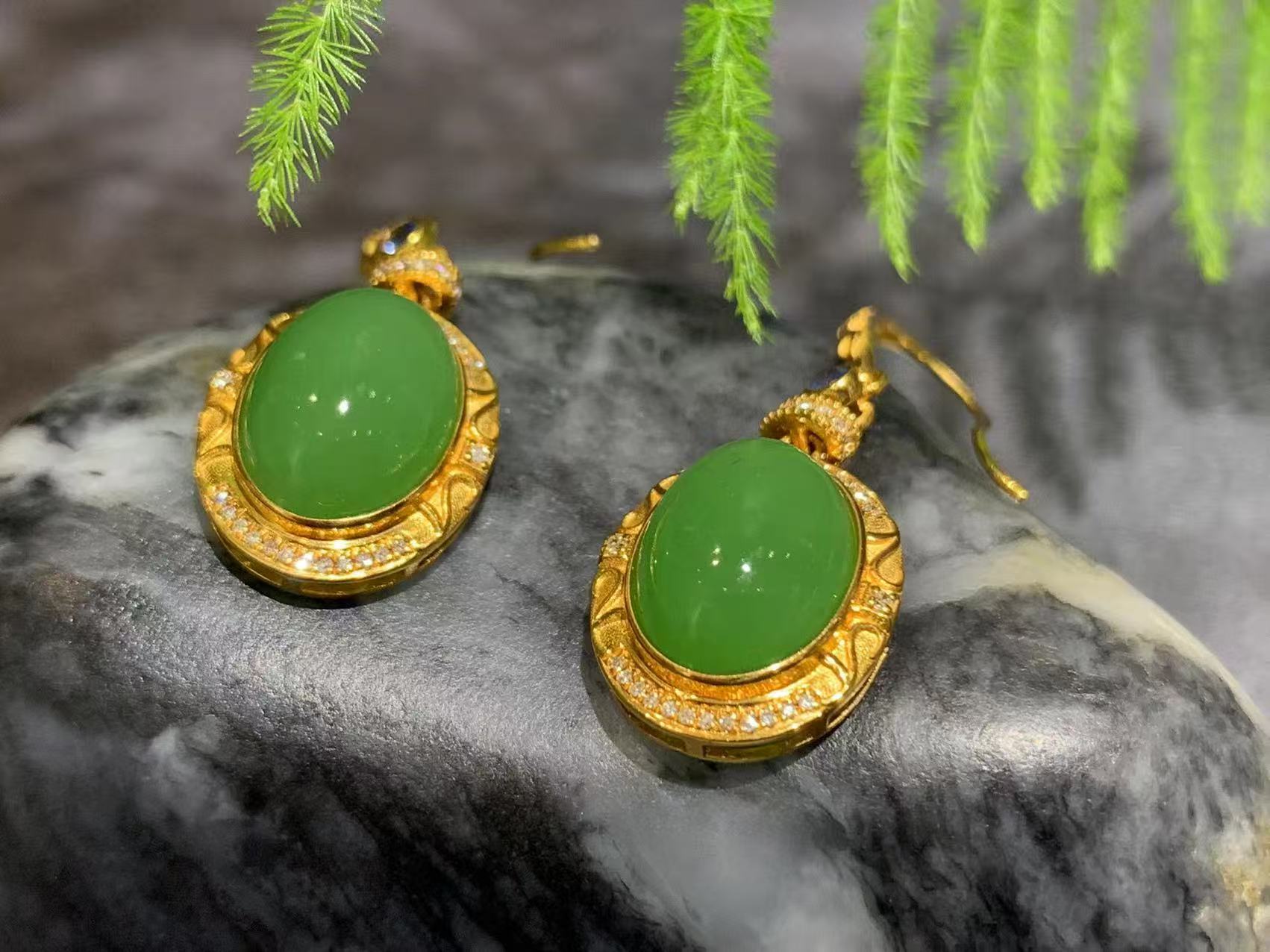 【御珠宫坊】金镶碧玉耳钉