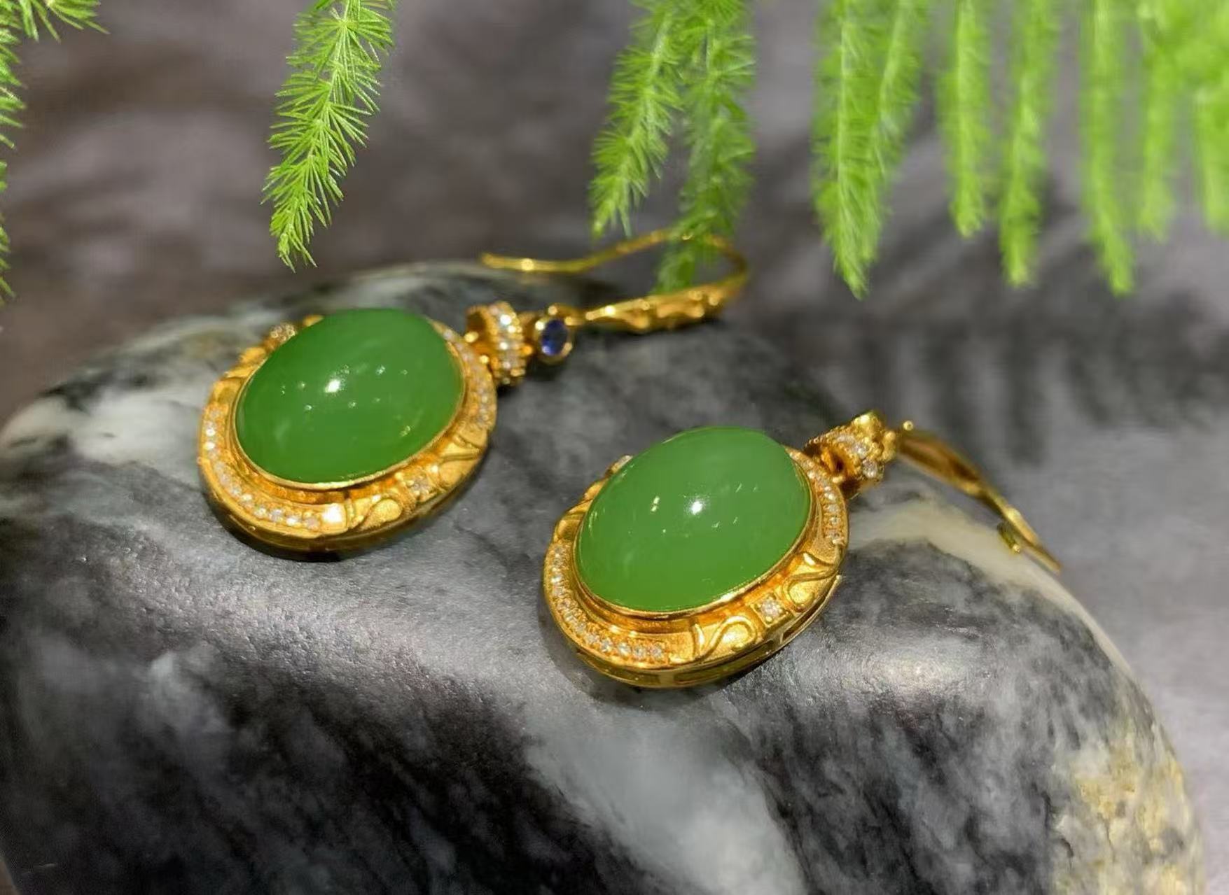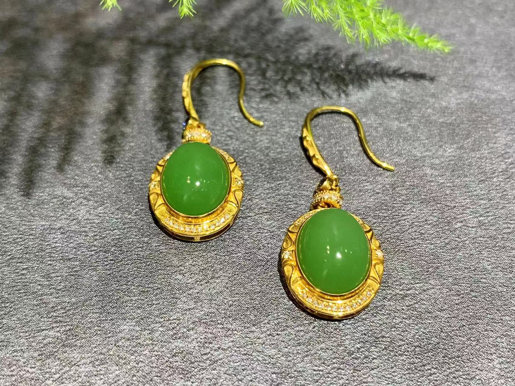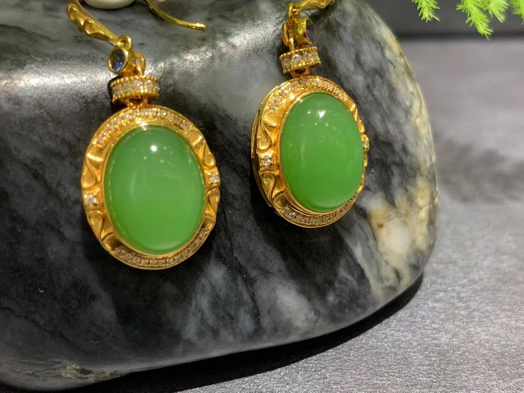 【御珠宫坊】金镶碧玉耳坠