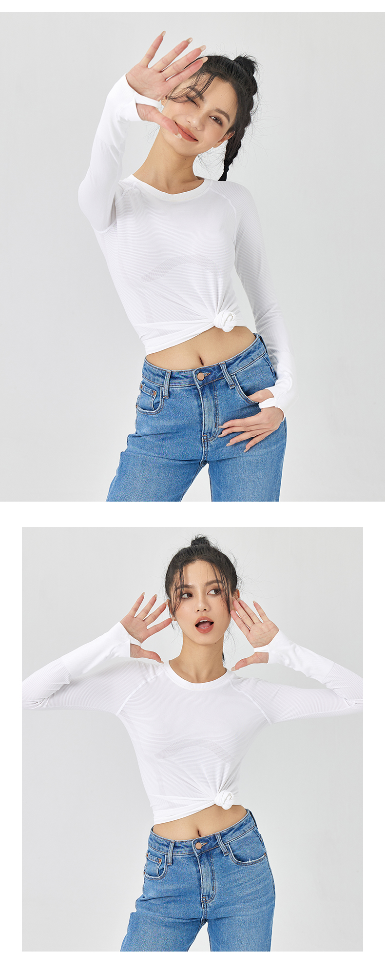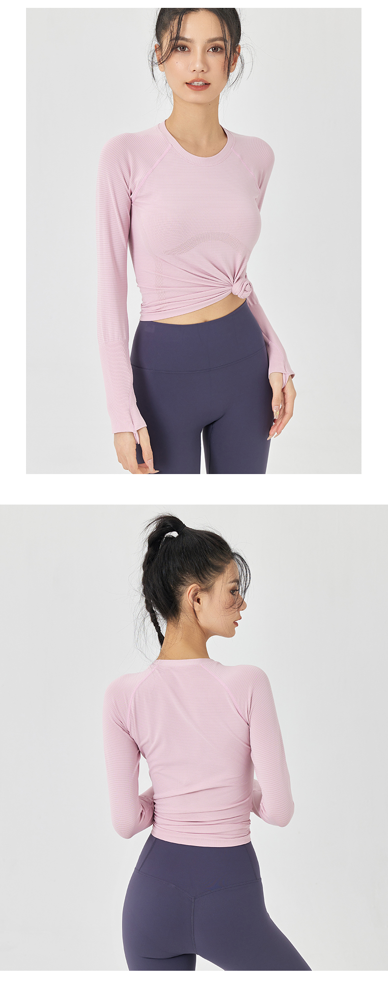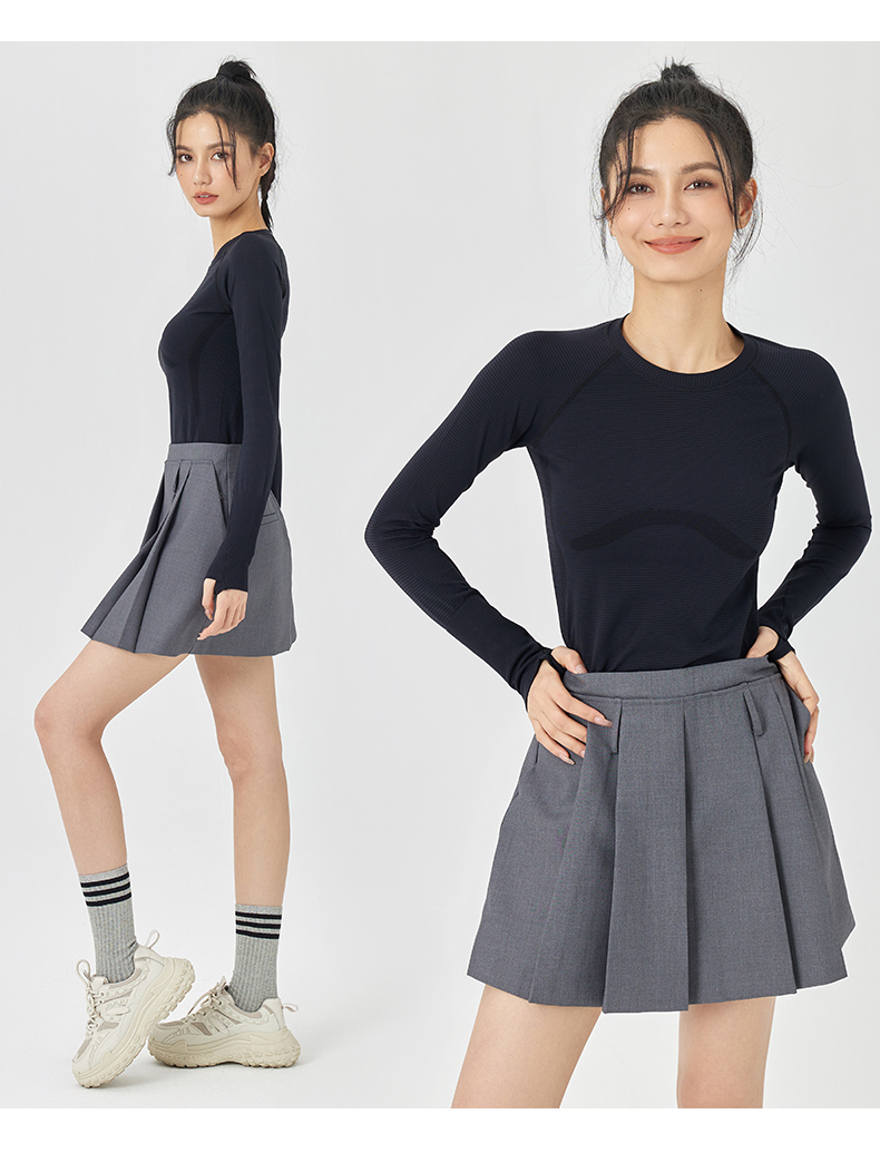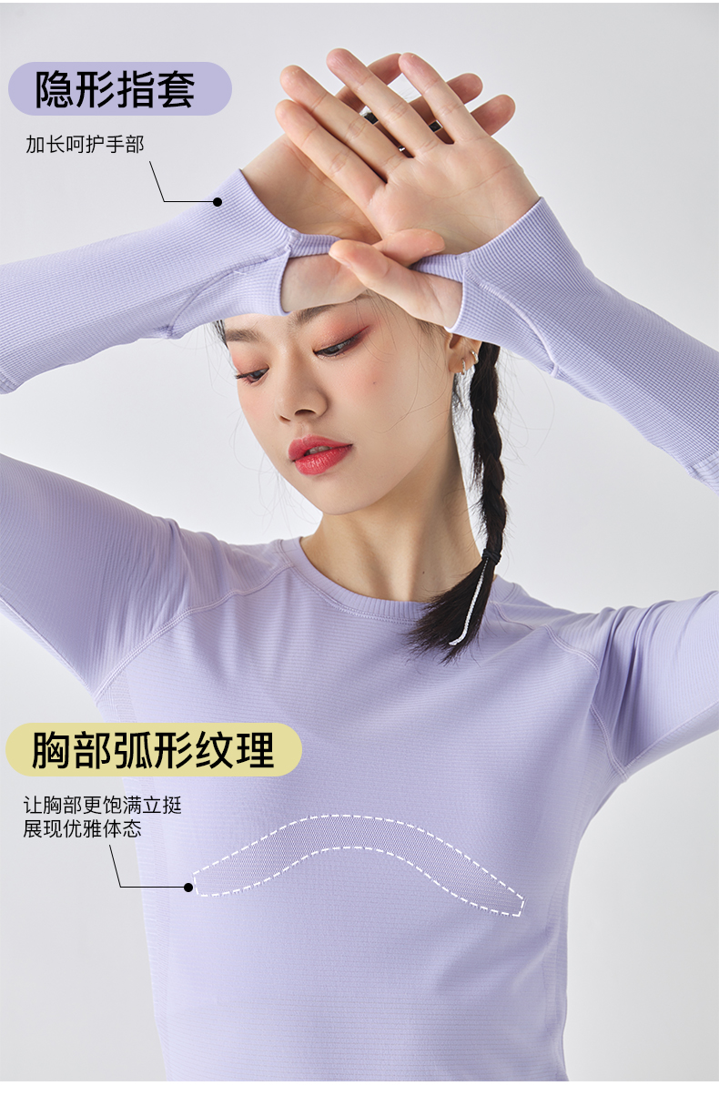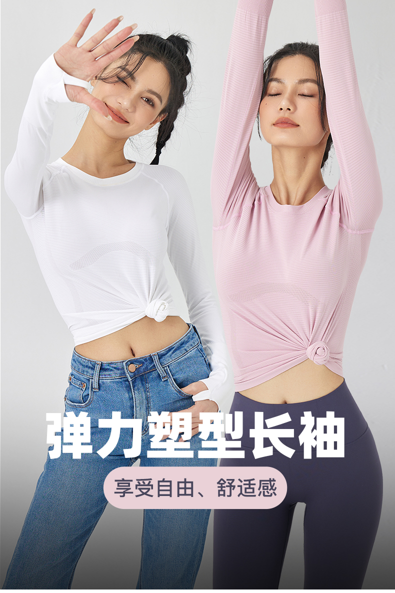 Leorrey乐拉运动长袖女显瘦透气健身上衣修身跑步训练休闲T恤套头衫