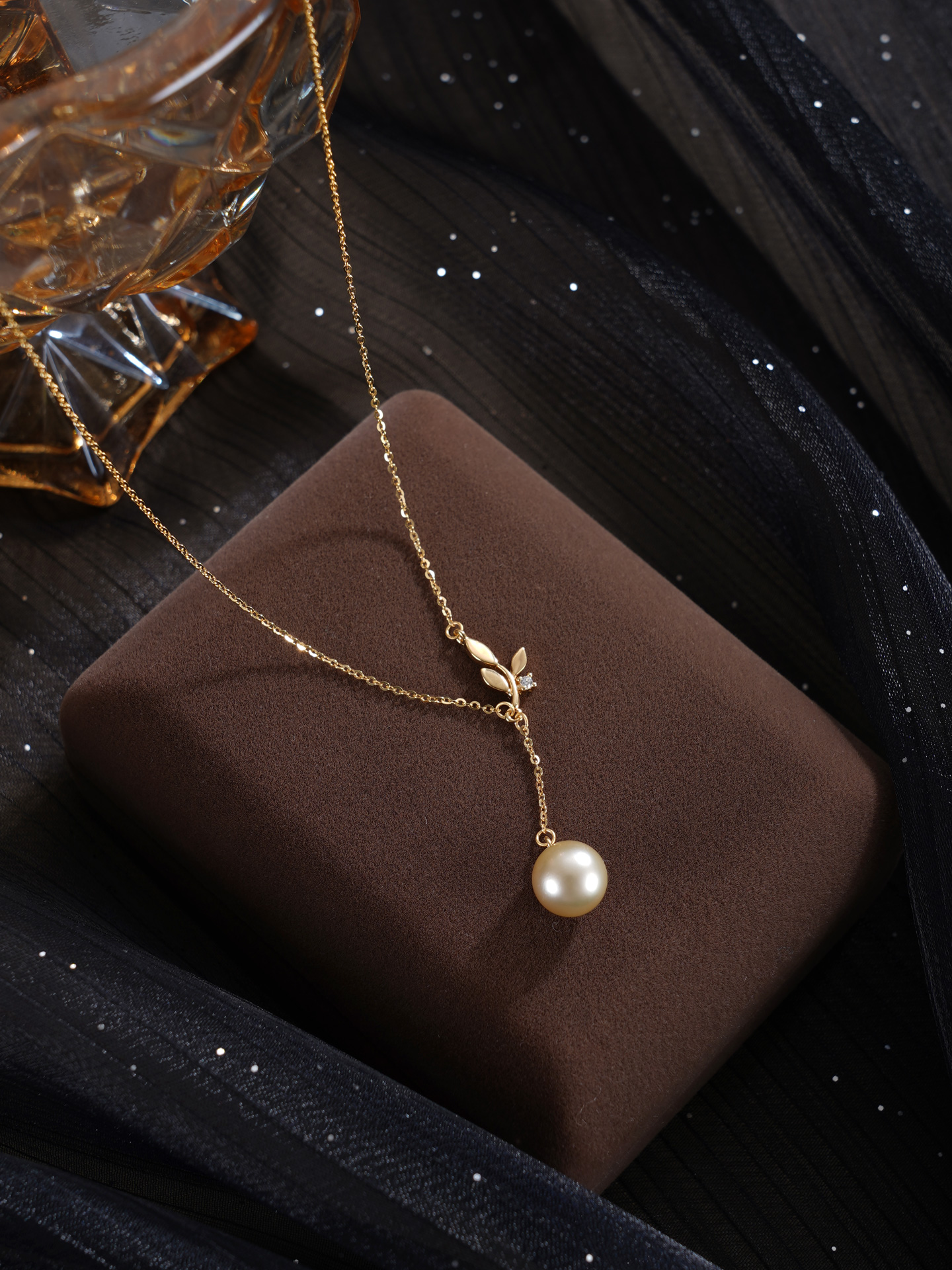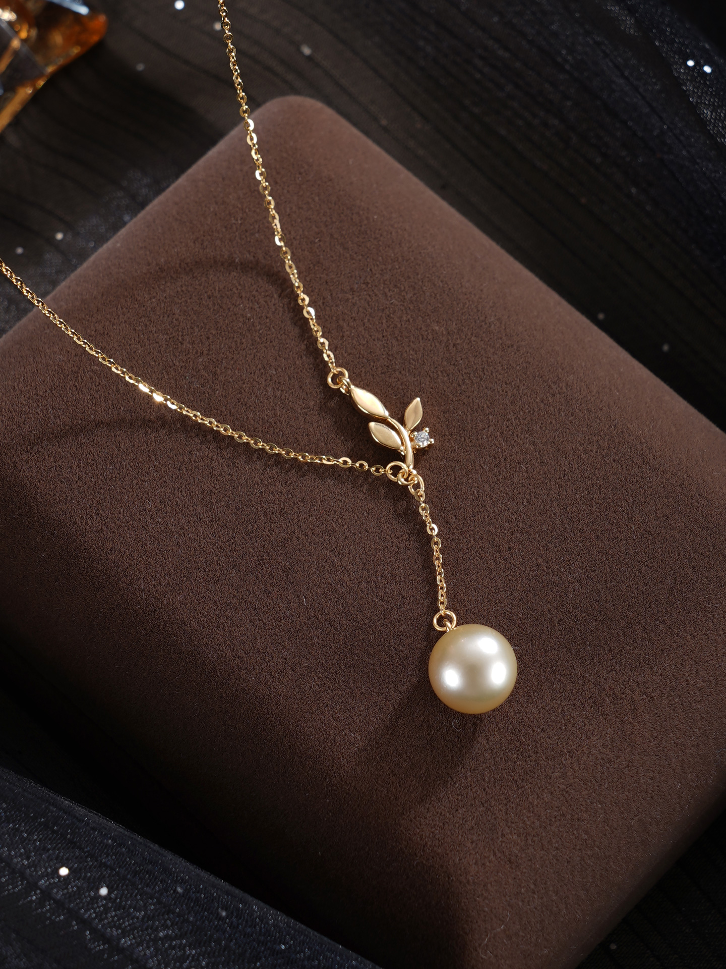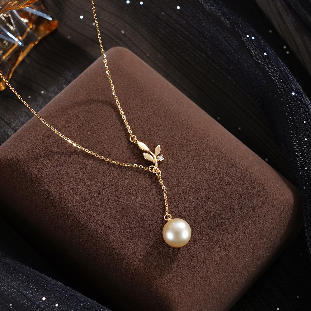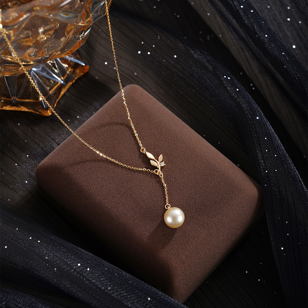 子佩集【叶曳生姿】银S925珍珠惜王妃套链【HJYTL011】9mm珠镀金树苗叶片金色珠吊球2601