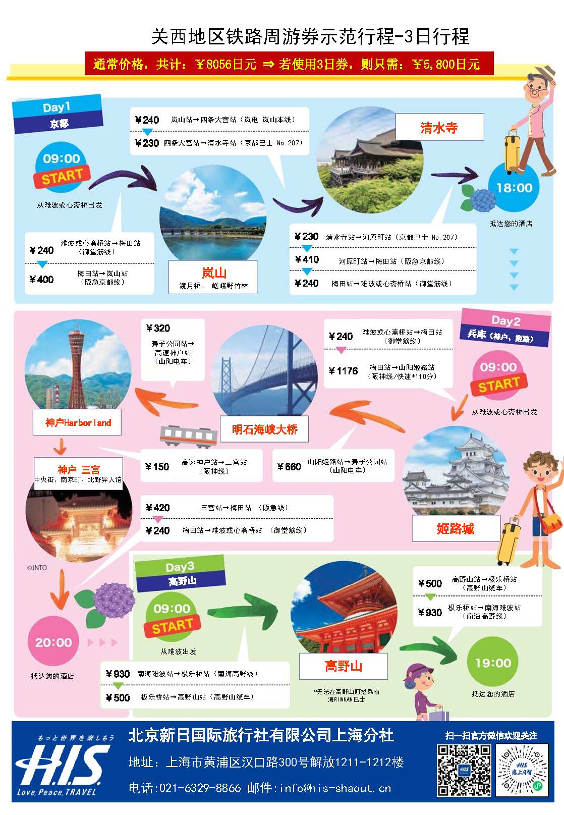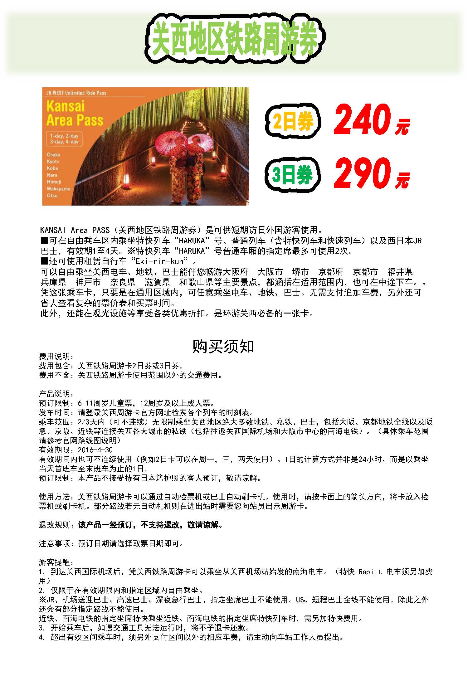 关西地区铁路周游券 2日券 3日券 成人 儿童