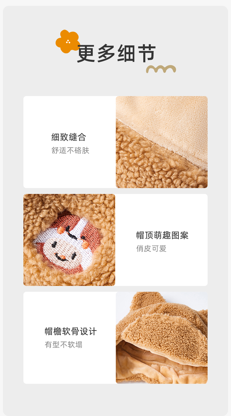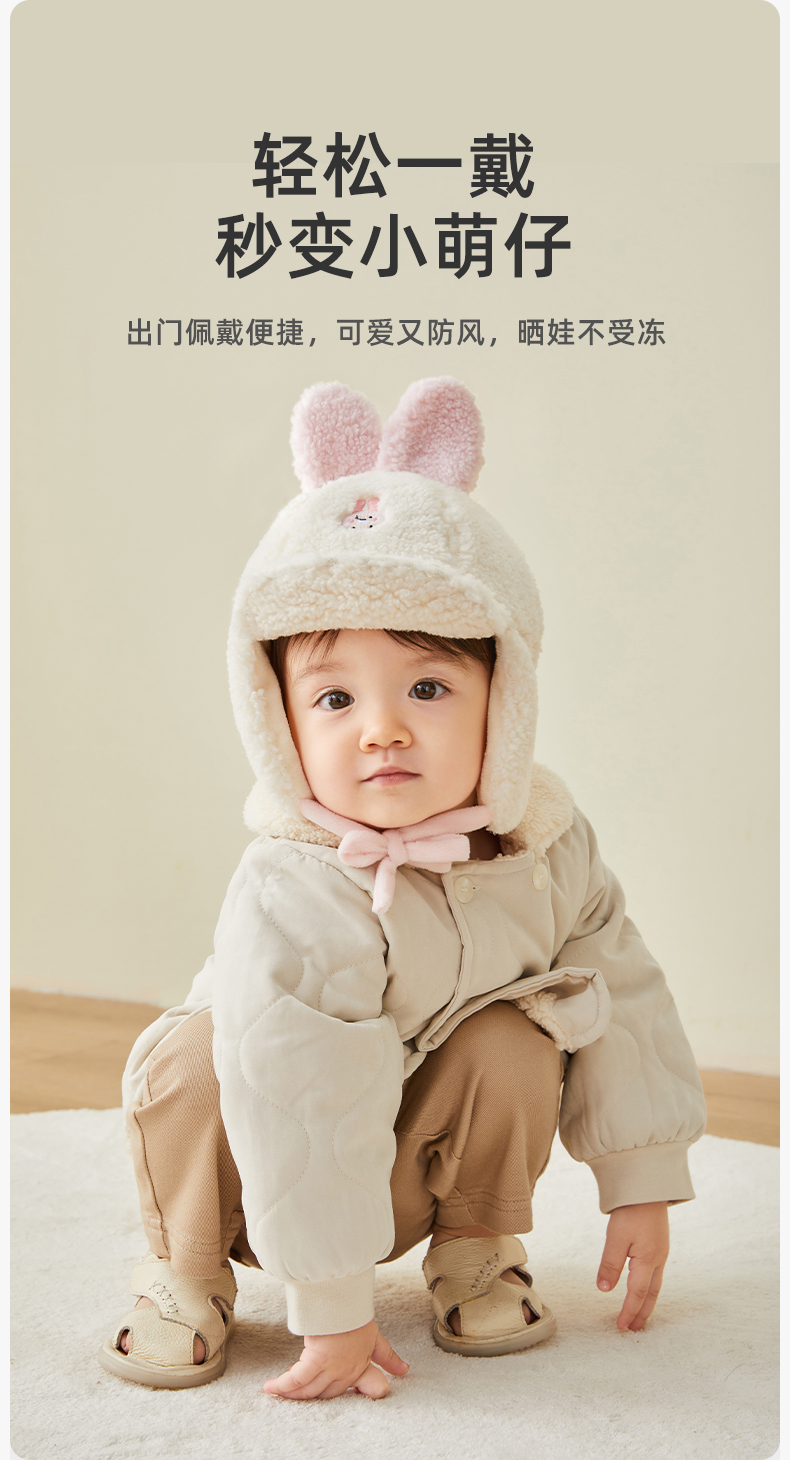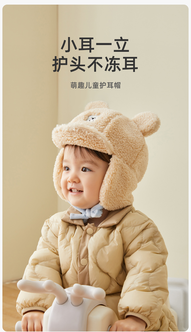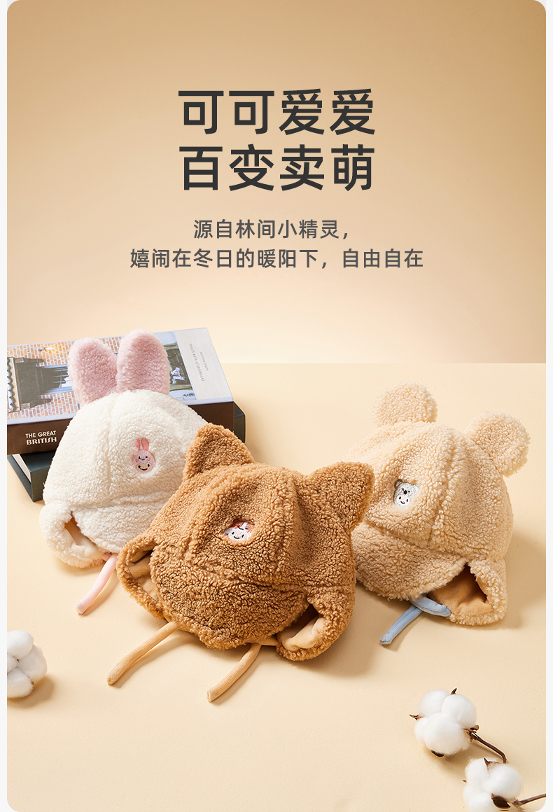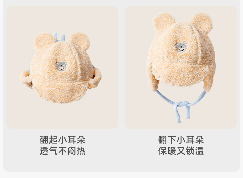 婴儿帽子秋冬加绒保暖毛线帽可爱超萌宝宝护耳帽儿童帽子