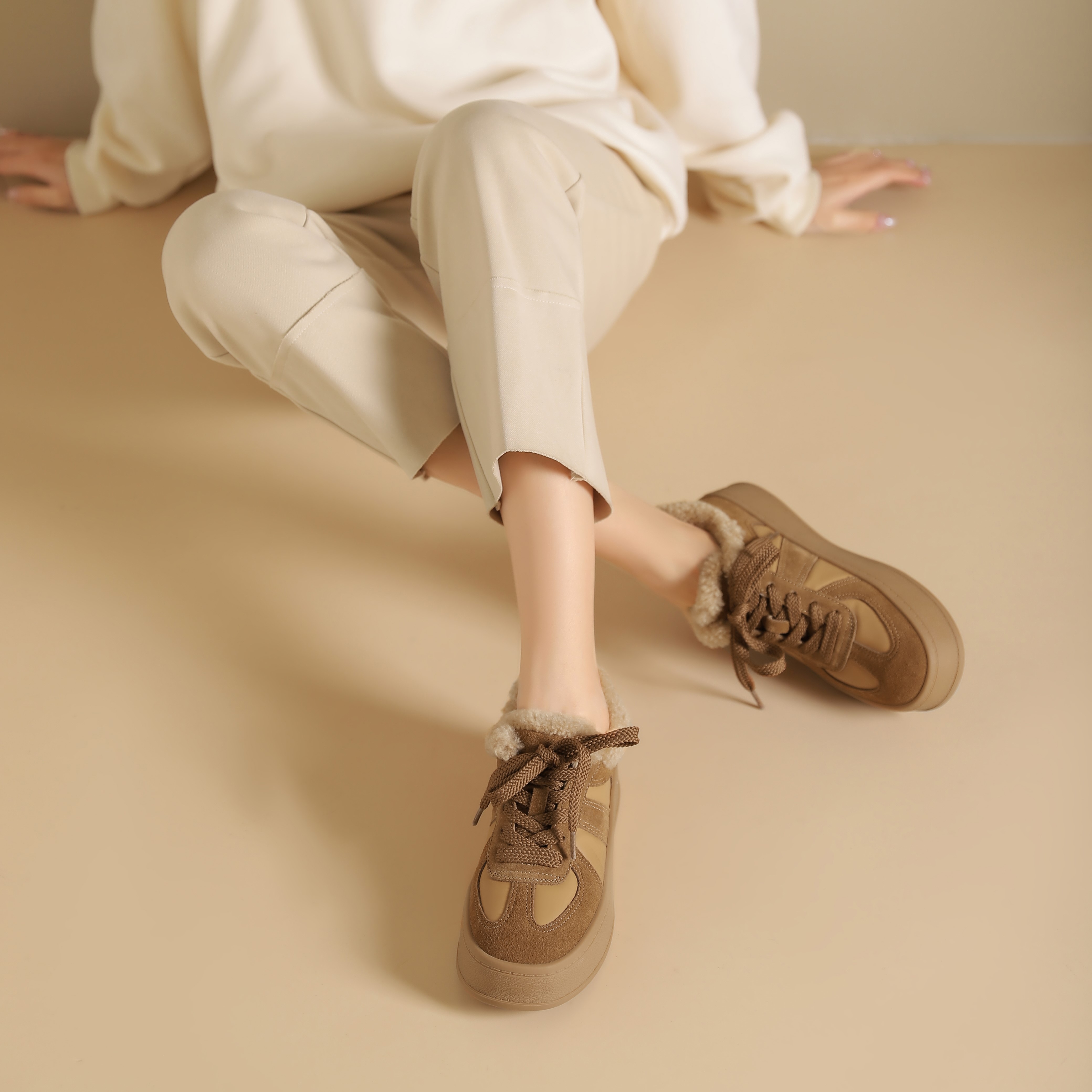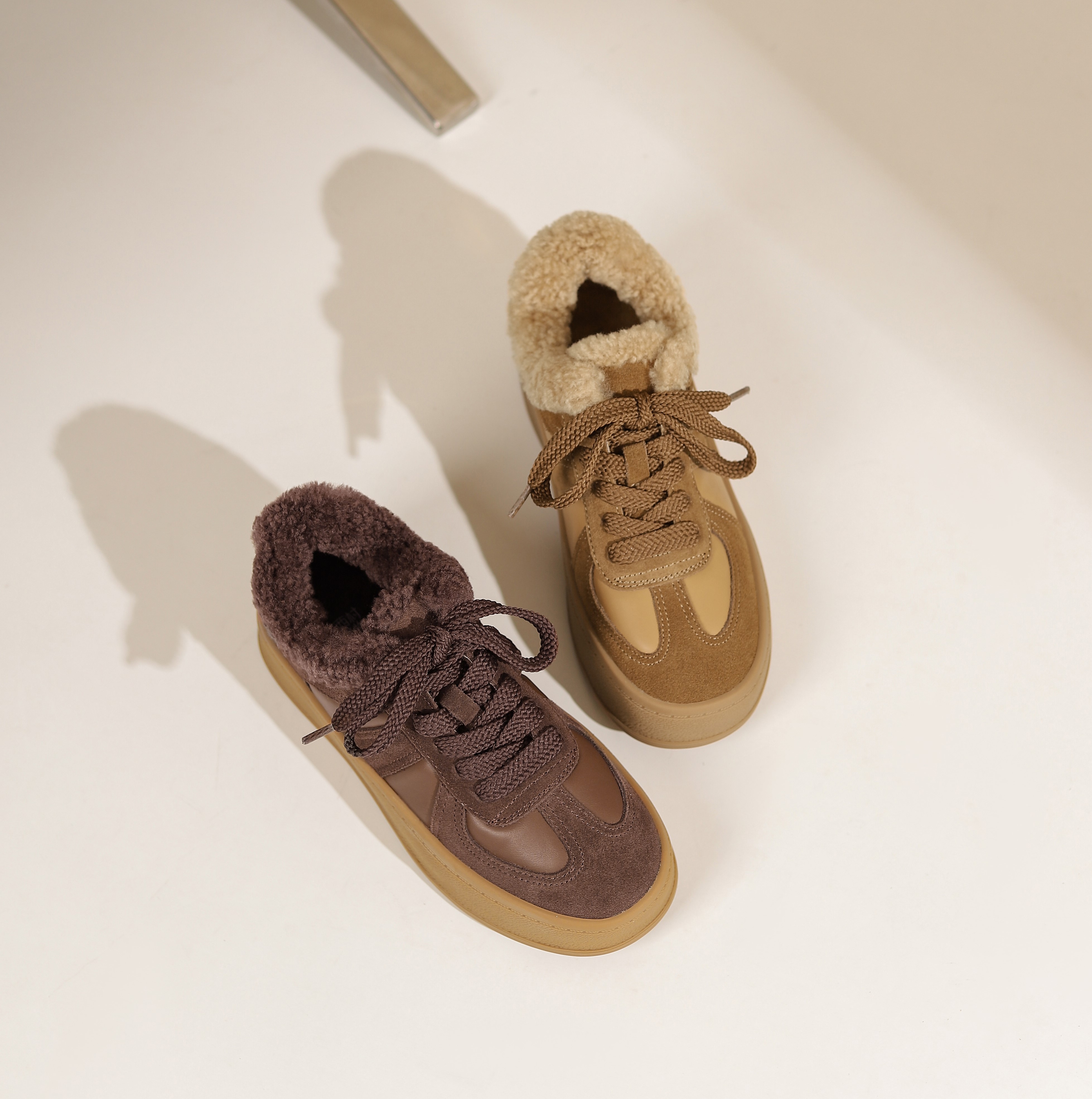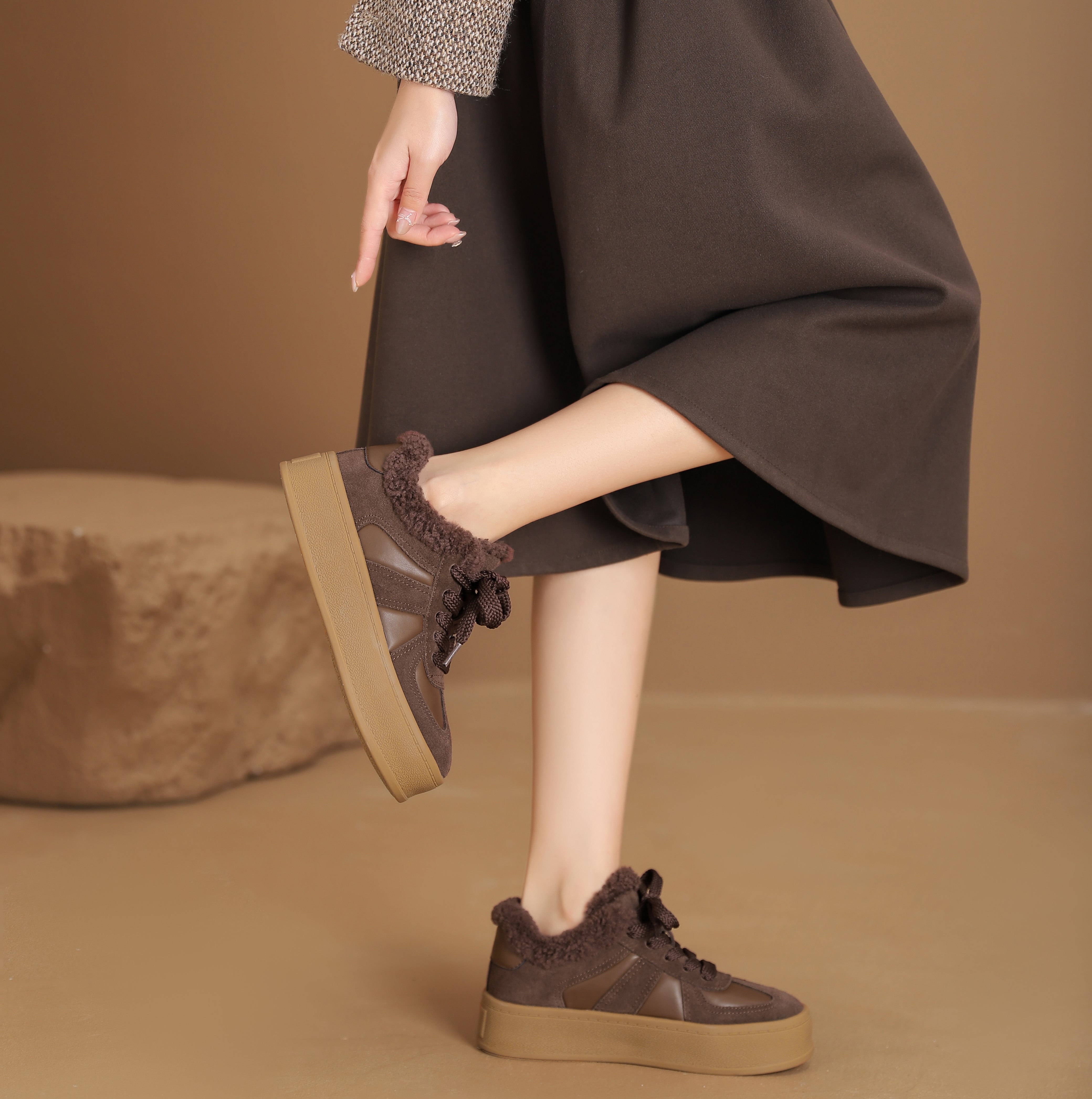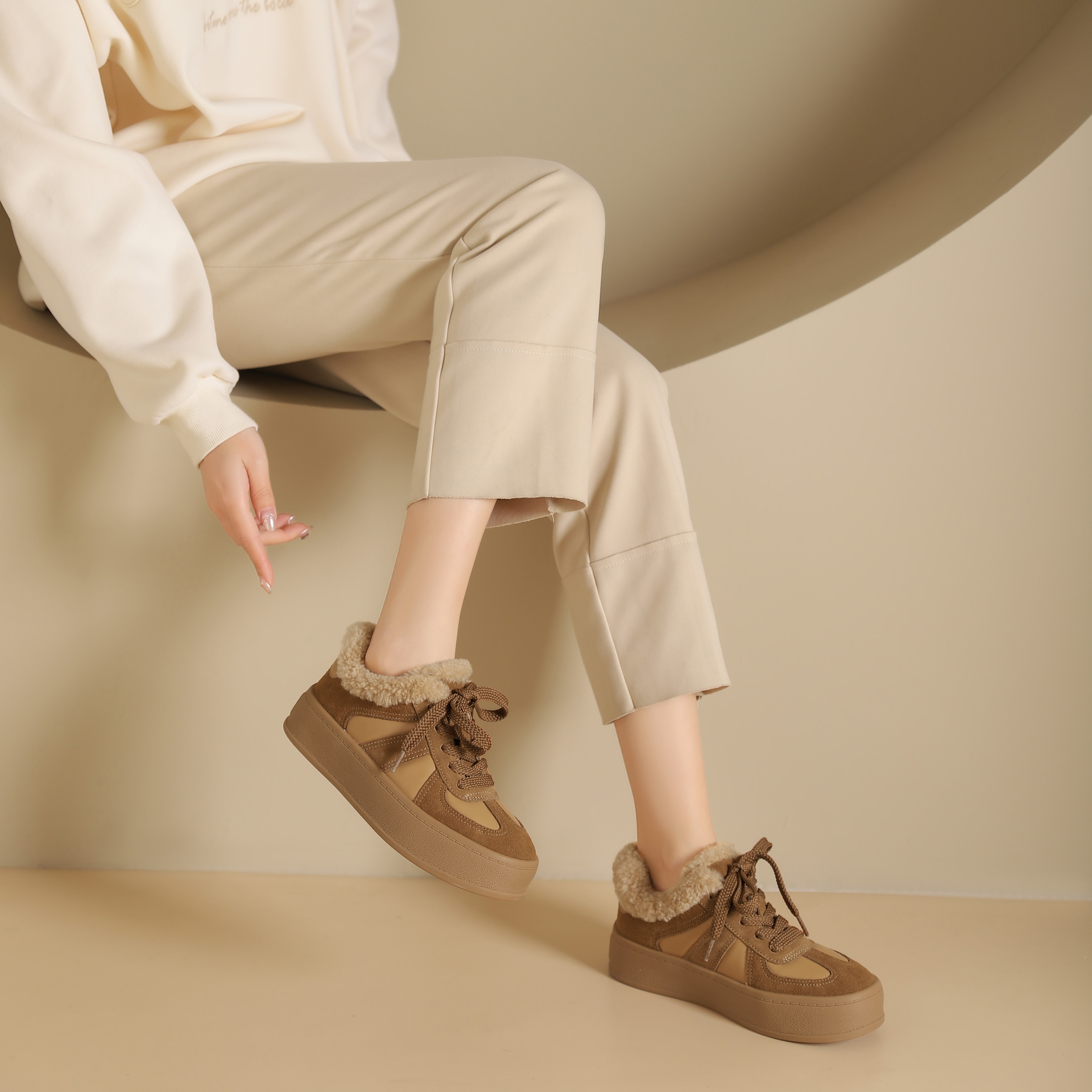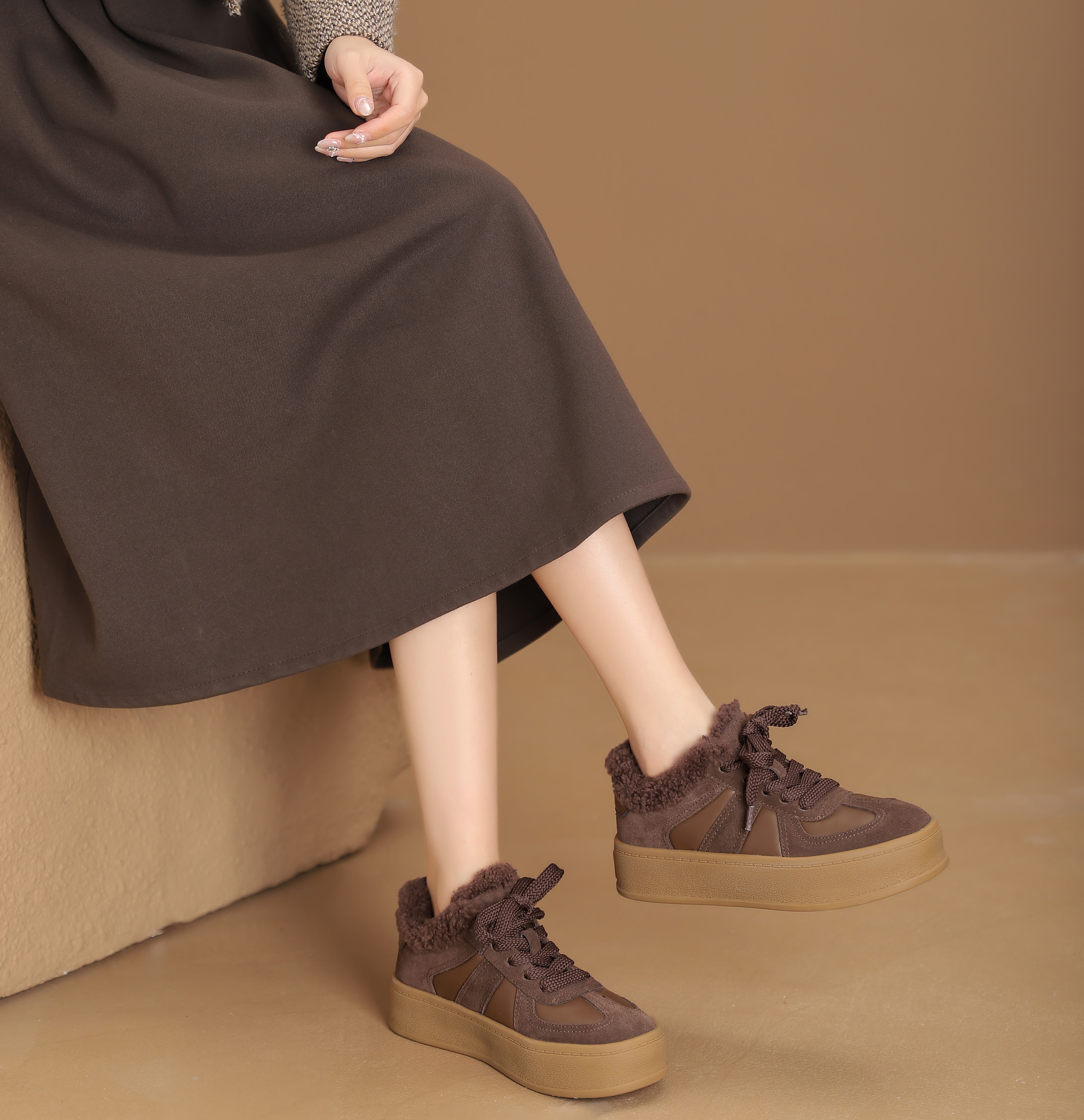 西村名物2025年春季新款绒毛保暖超轻厚底防滑系带板鞋X25AM14111