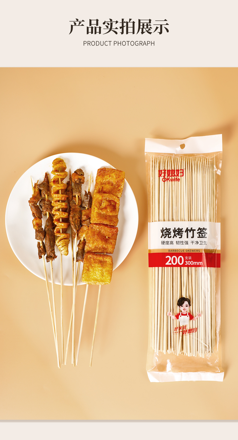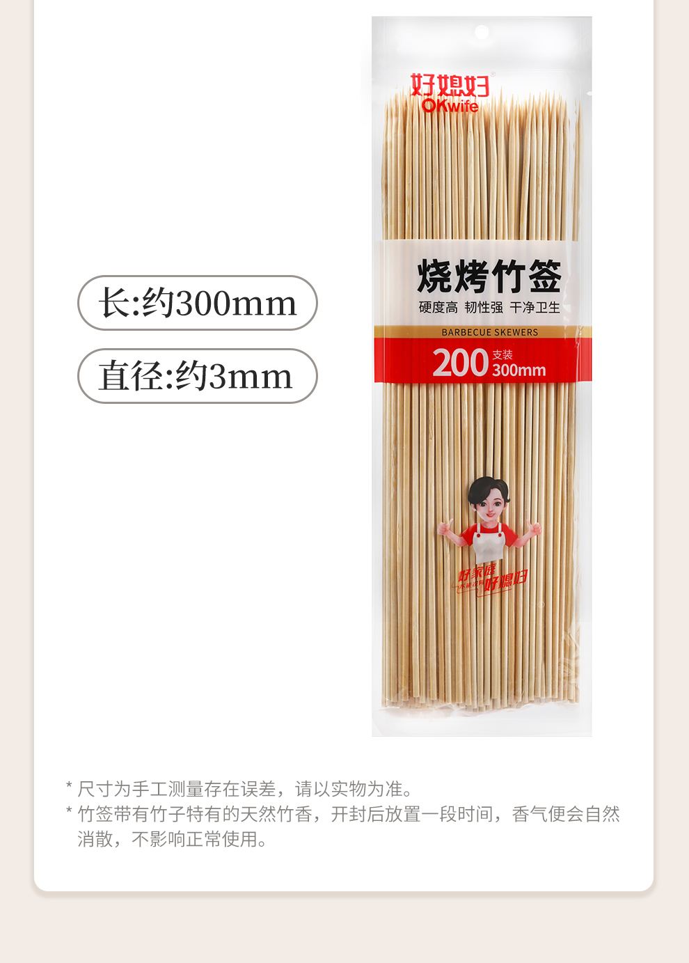 好媳妇烧烤户外露营竹签一次性烤肉签烧烤用品
