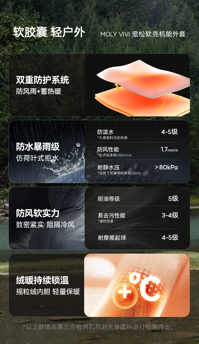专享福利沈梦辰同款MOLYVIVI宽松软壳机能外套三合一秋冬外套新款防风防雨水软壳机能外套登山服