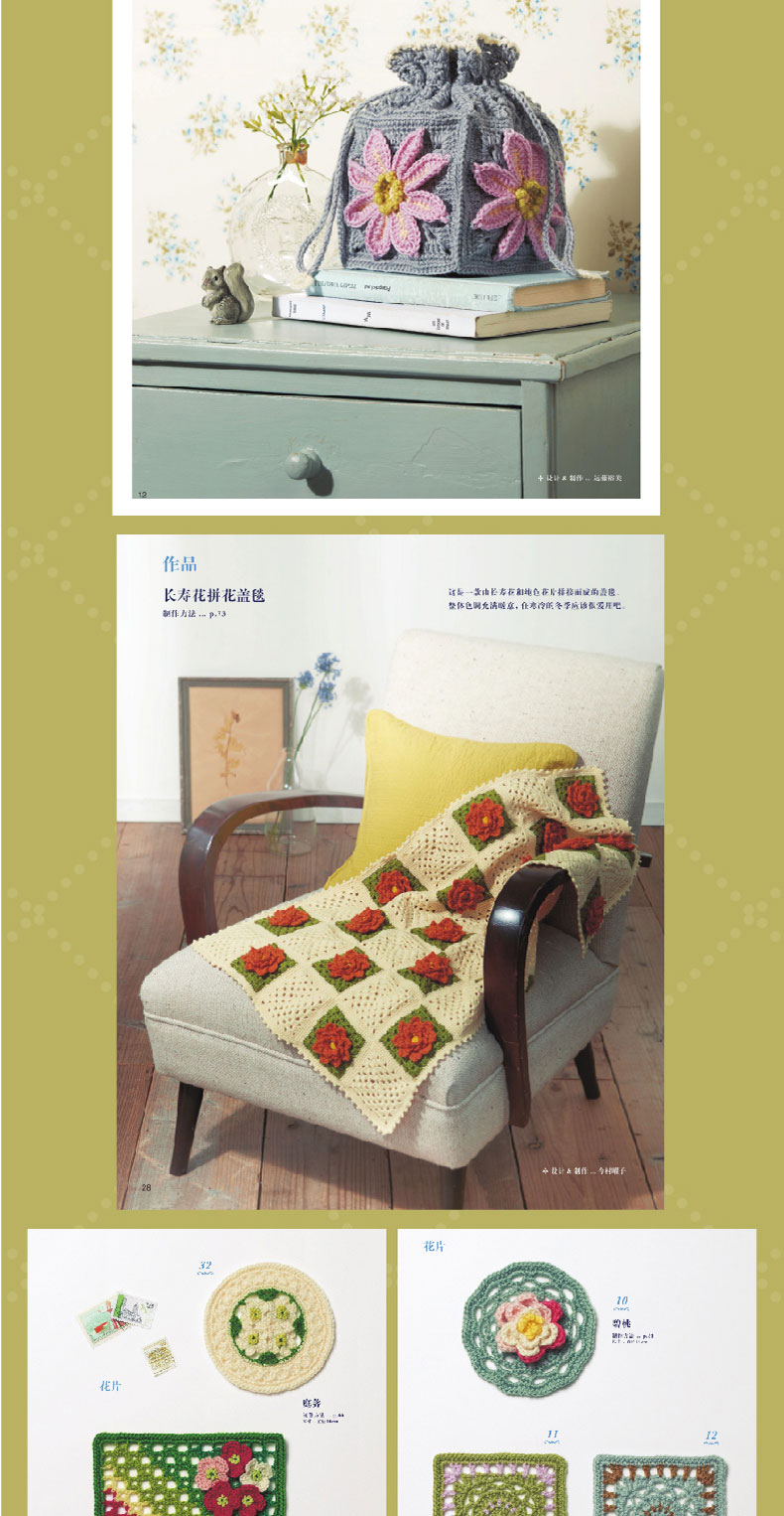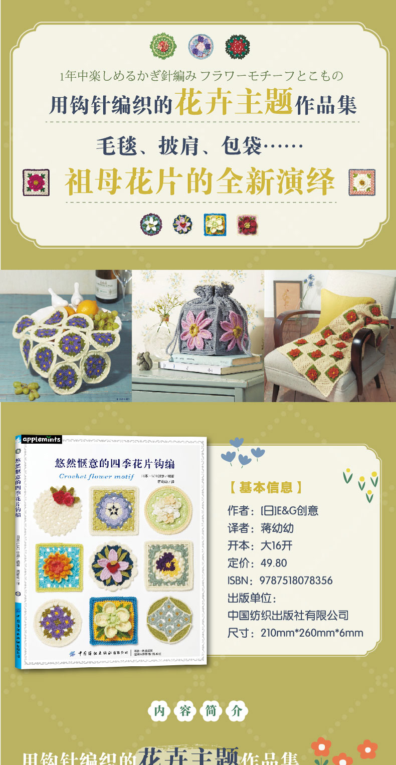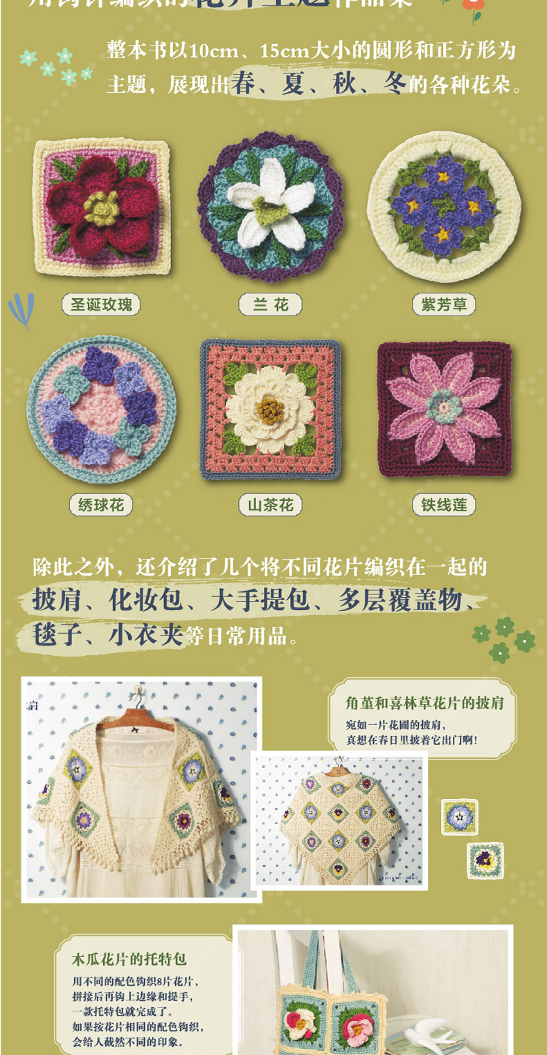 2020新书 悠然惬意的四季花片钩编 毛毯披肩包袋手工制作编织 祖母花片花卉植物钩针编织钩针编织技法大全书籍钩针编织DIY入门书籍