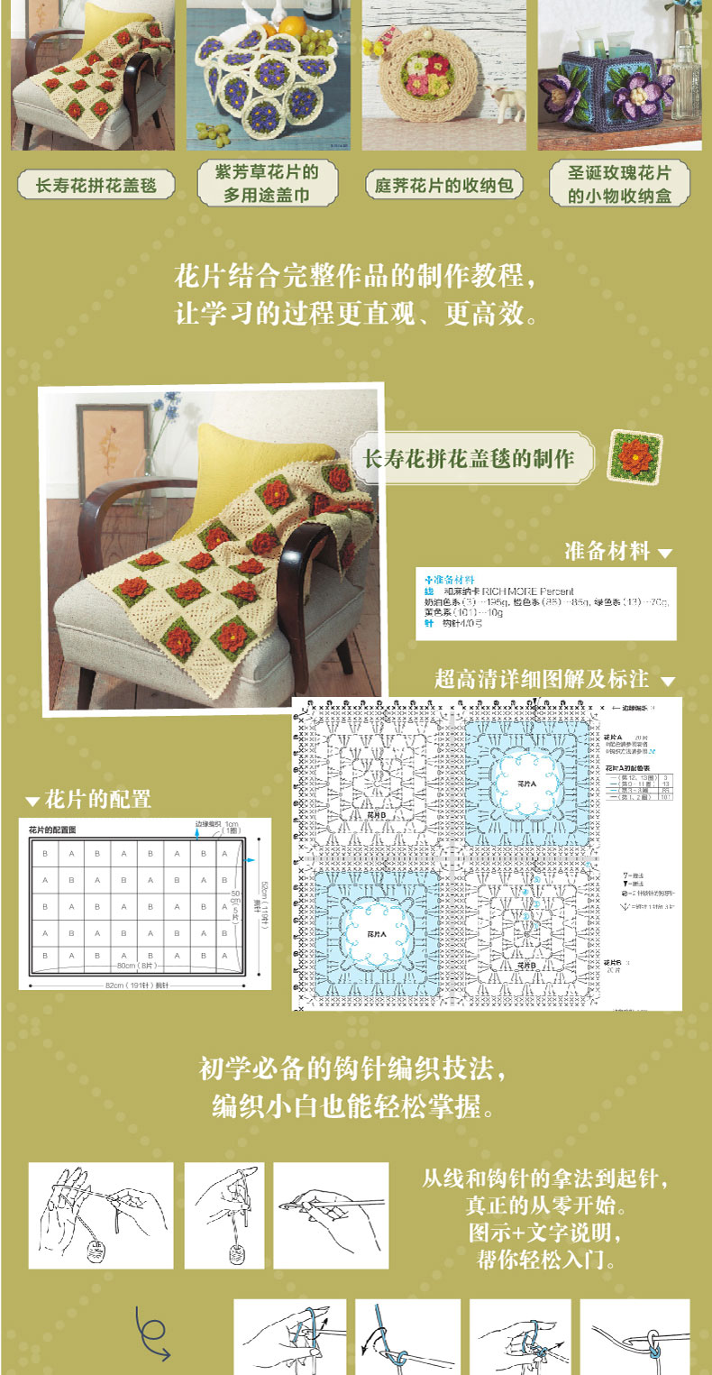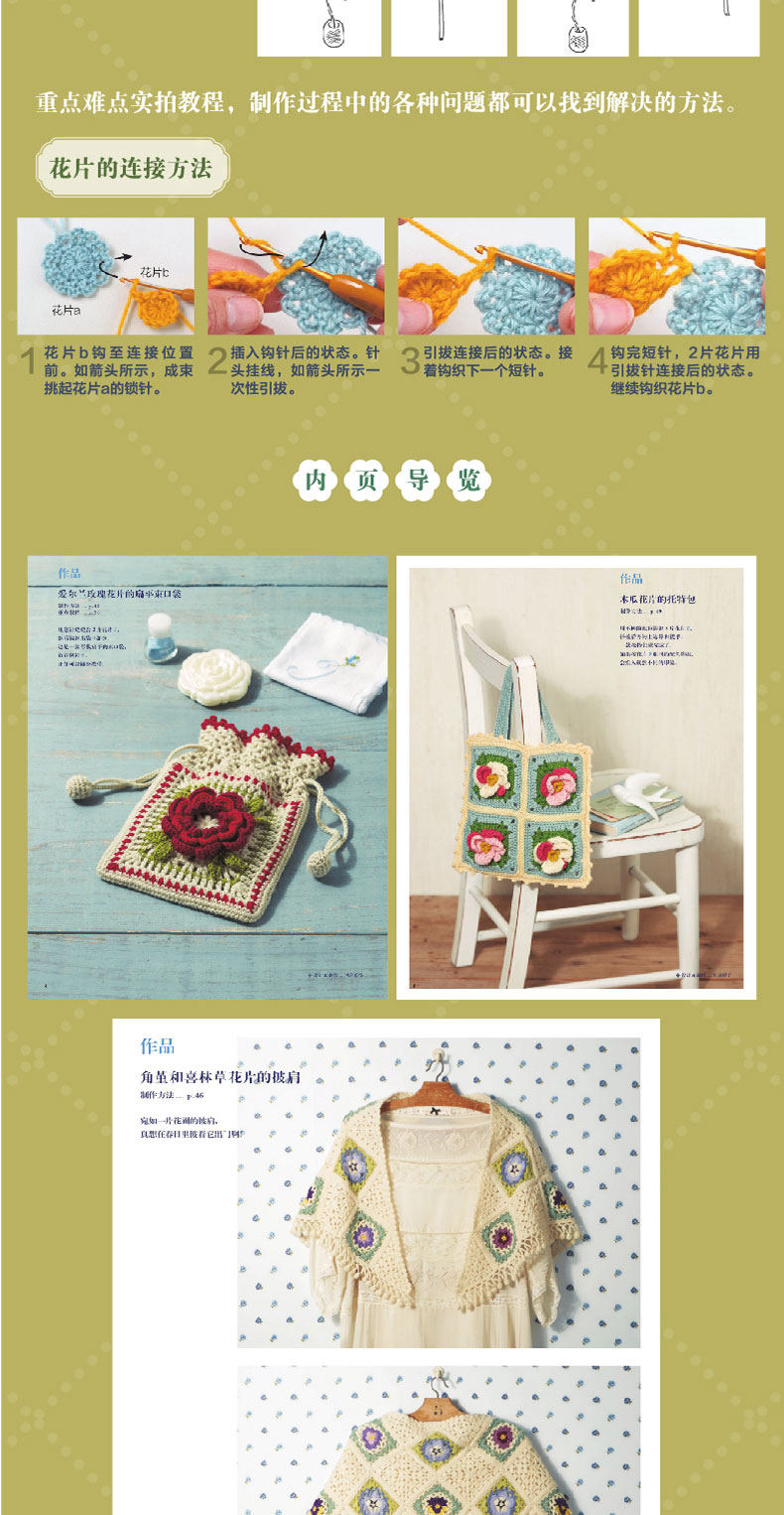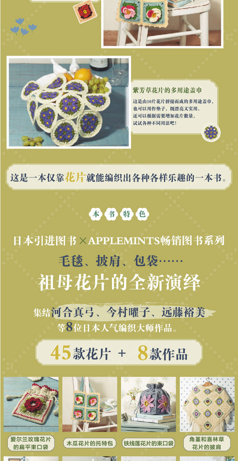 2020新书 悠然惬意的四季花片钩编 毛毯披肩包袋手工制作编织 祖母花片花卉植物钩针编织钩针编织技法大全书籍钩针编织DIY入门书籍
