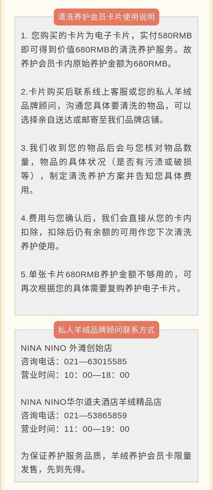 羊绒养护卡