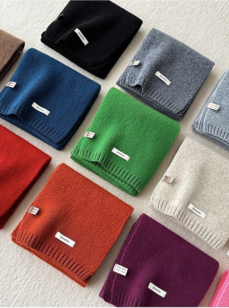 冬季新款【精选澳洲纯绵羊毛100% 羊绒围巾】纯色百搭 男女保暖针织围脖