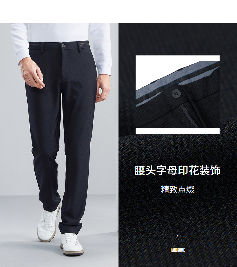 【特价】柒牌男装休闲裤秋冬新款时尚百搭色织提花男士直筒中腰长裤子 125H70490