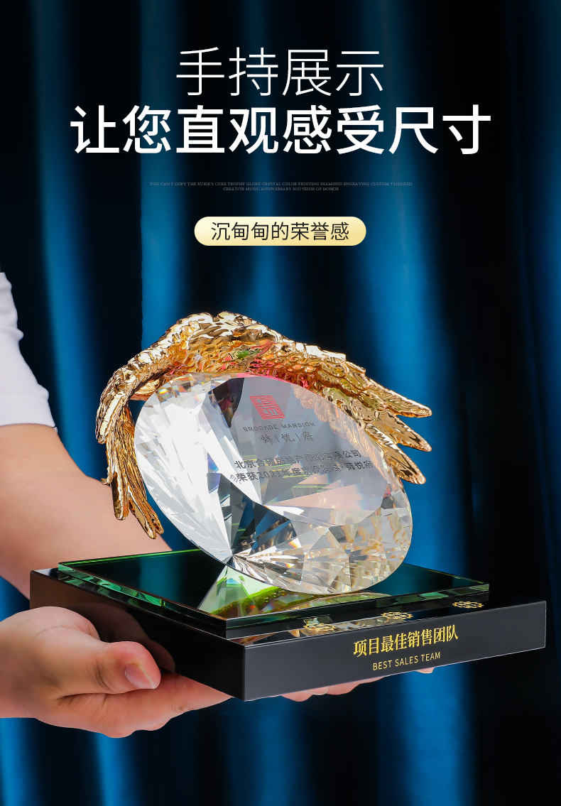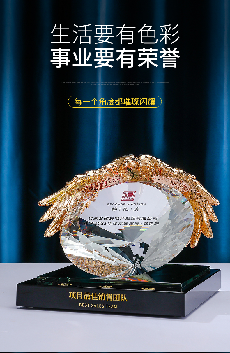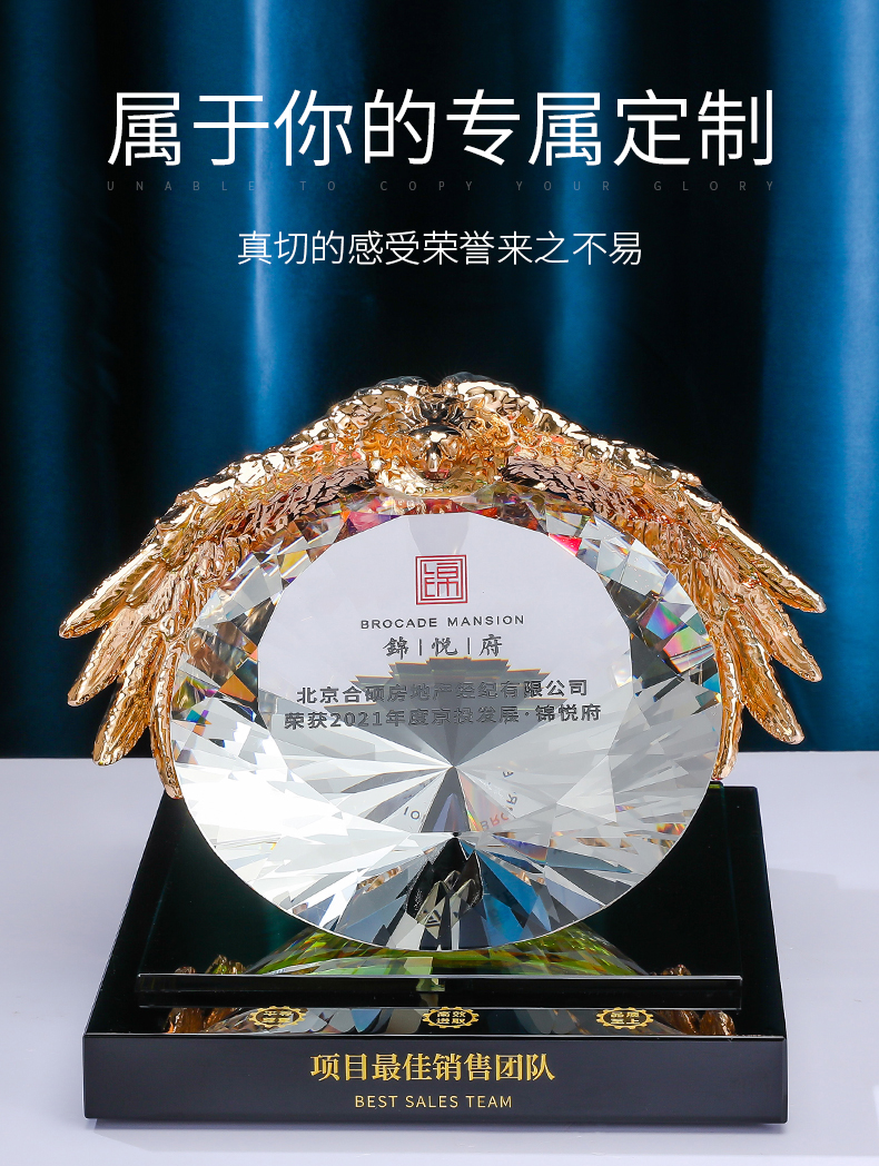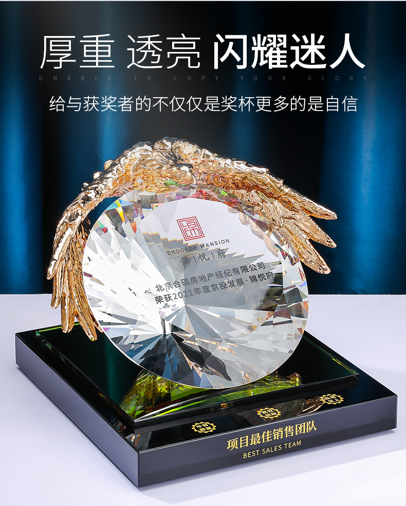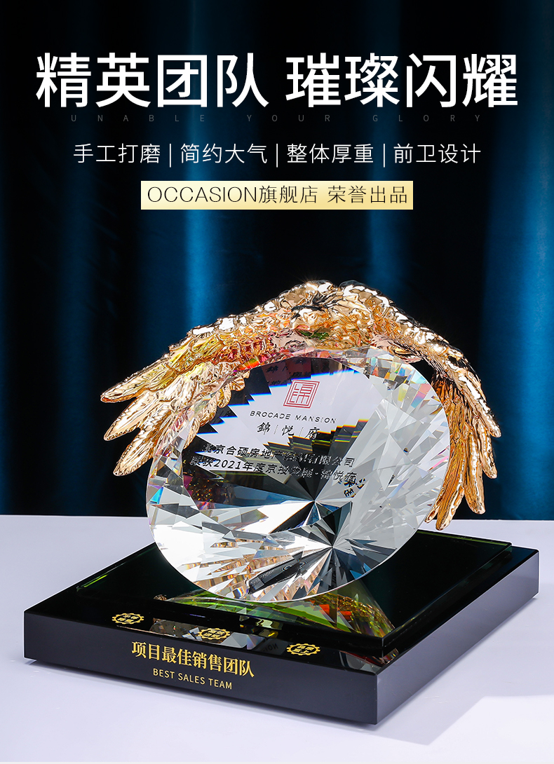 奖杯diy定制水晶纪念定做高档大气荣誉表彰优秀团队奖品老鹰奖牌