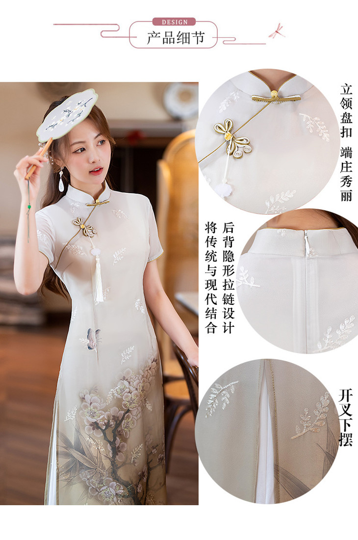 雪纺绣花旗袍奥戴改良少女旗袍CJS10026