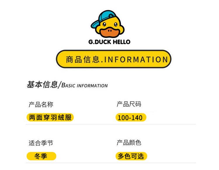 G.DUCKKIDS小黄鸭儿童羽绒服双面穿男童女童中小童白鸭绒保暖外套秋冬新款潮100-140