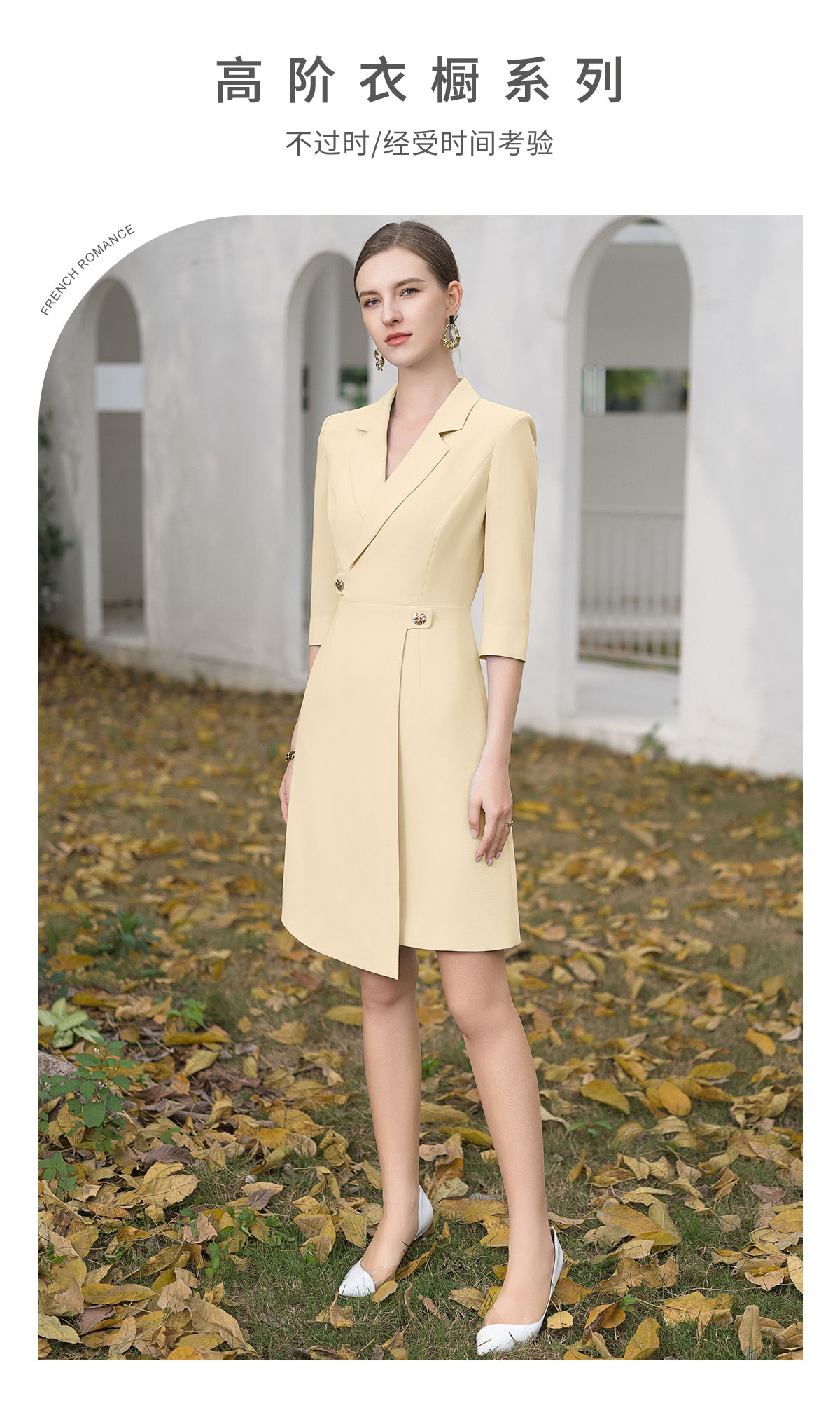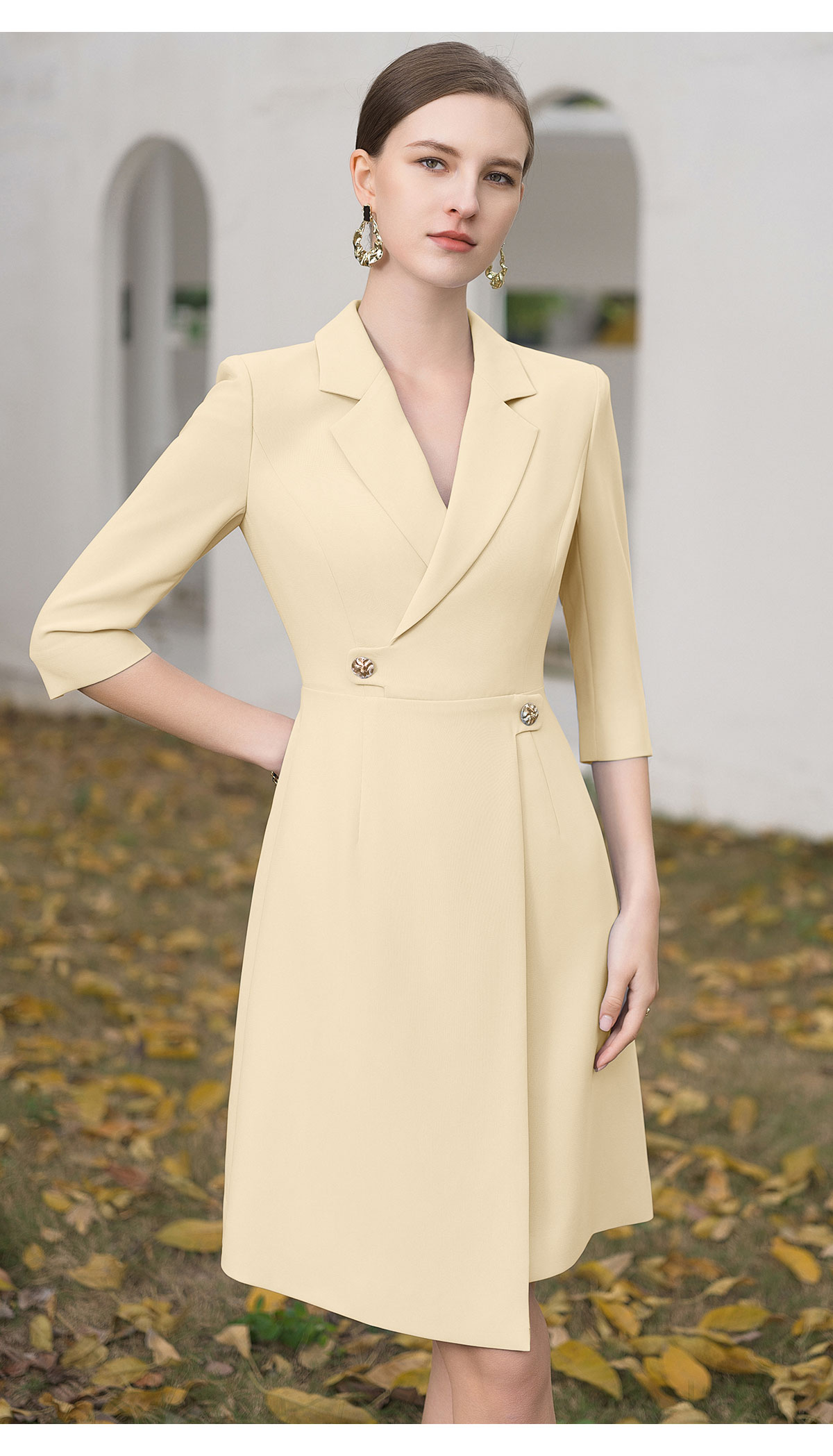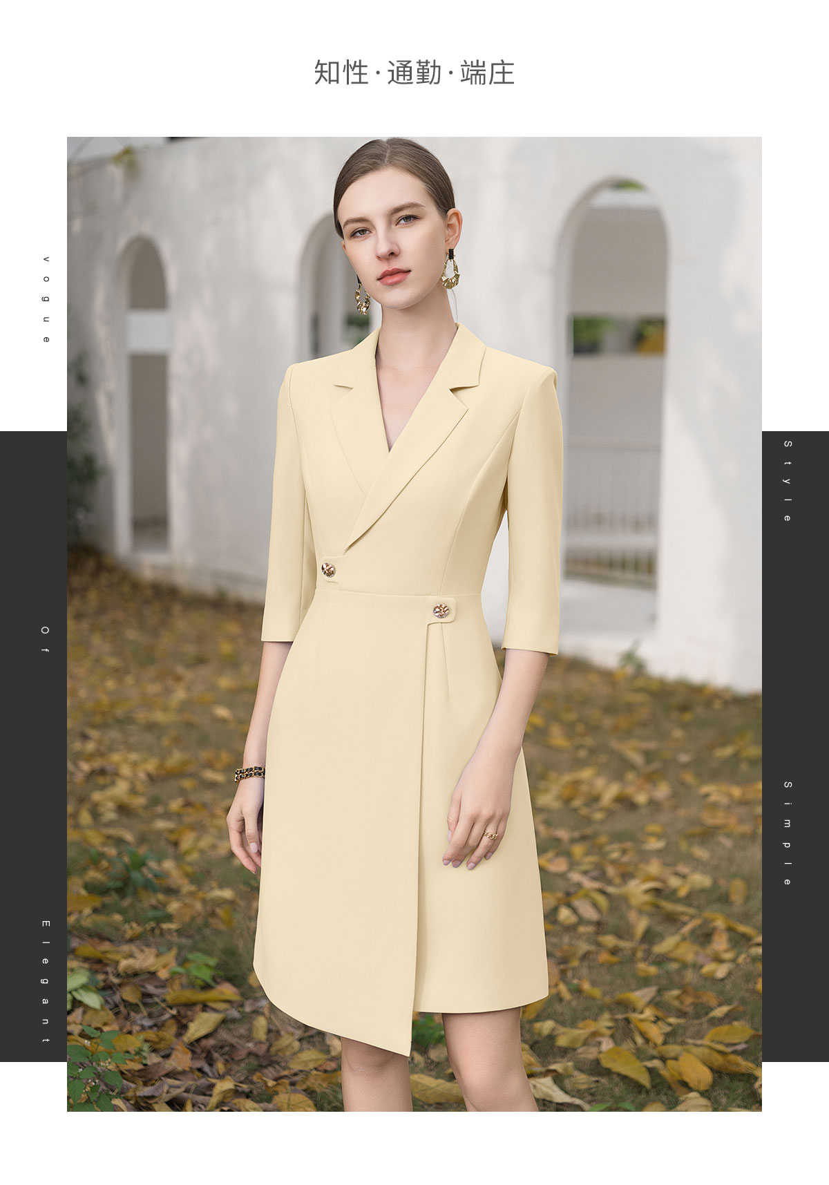 IWY/洋气黄色西装连衣裙女不规则职业装a字裙上班族白领主持人艺考Q1106