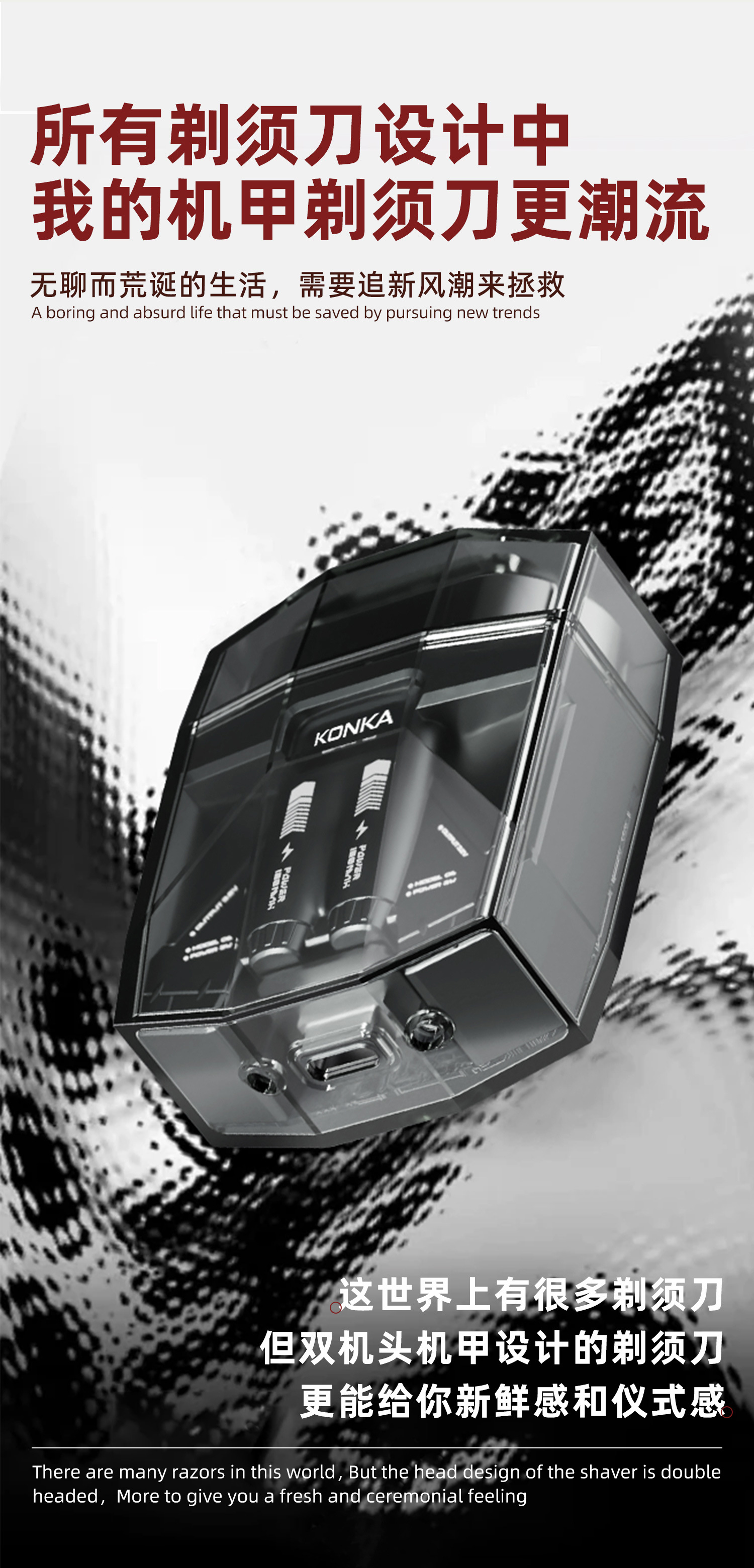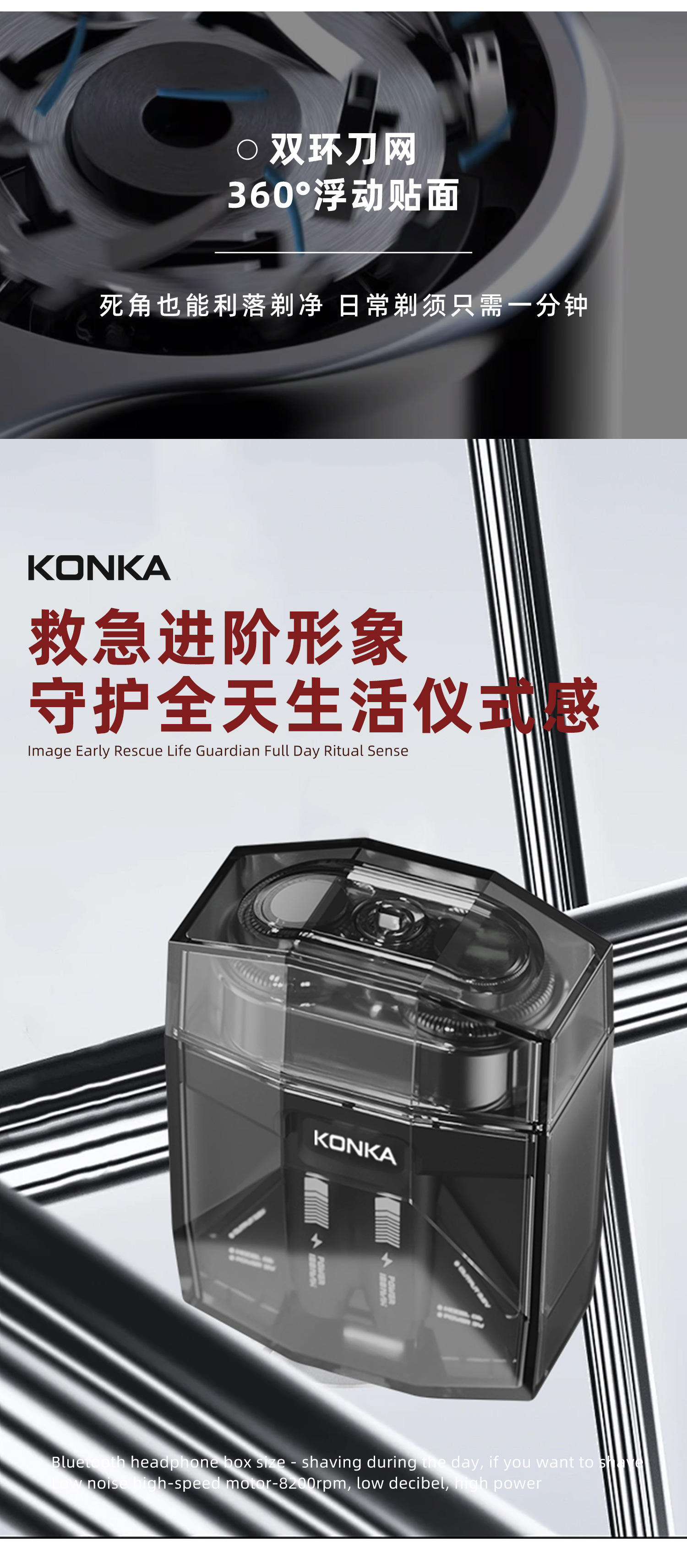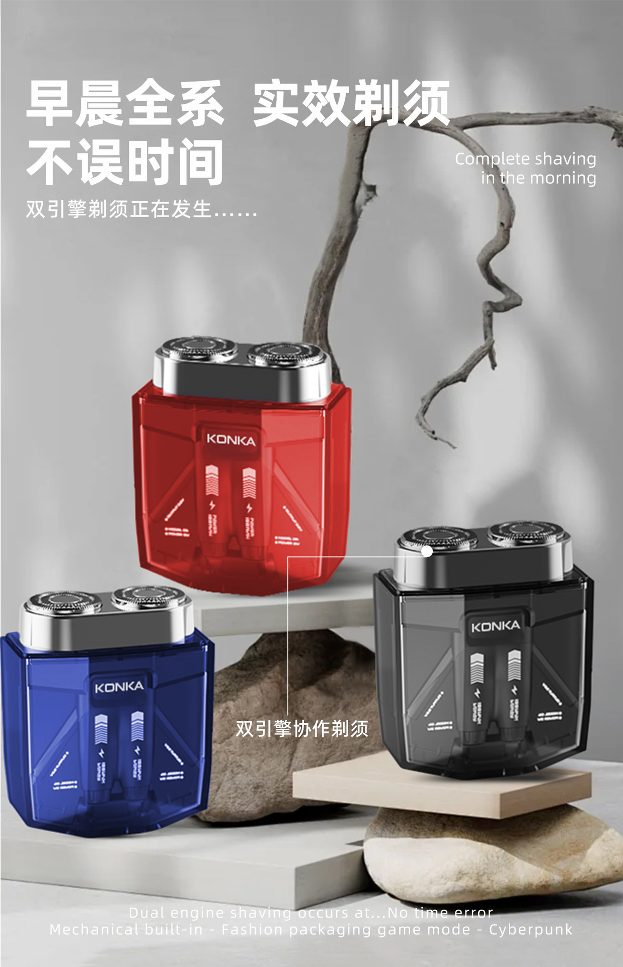 【新风潮,随我剃!】七夕情人节礼物康佳透明双头剃须刀 男士大功率电动数显刮胡刀 充电款便携式小钢炮-QB