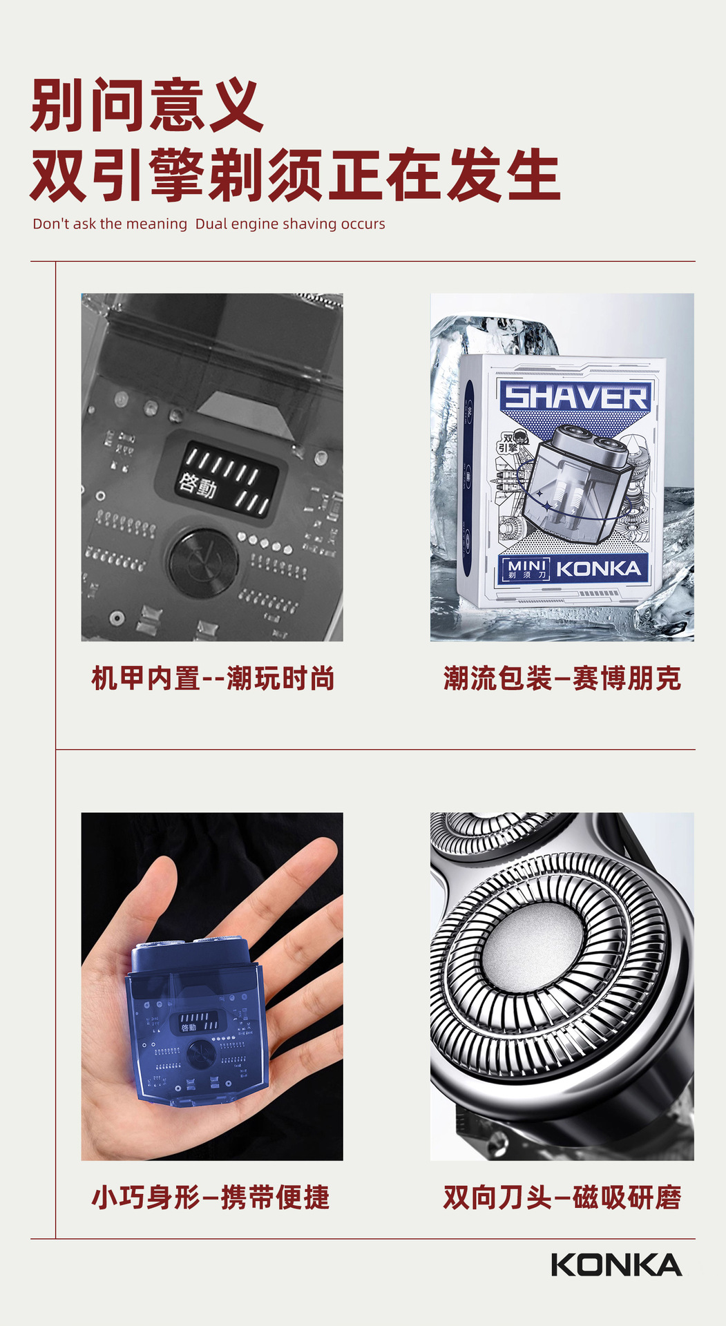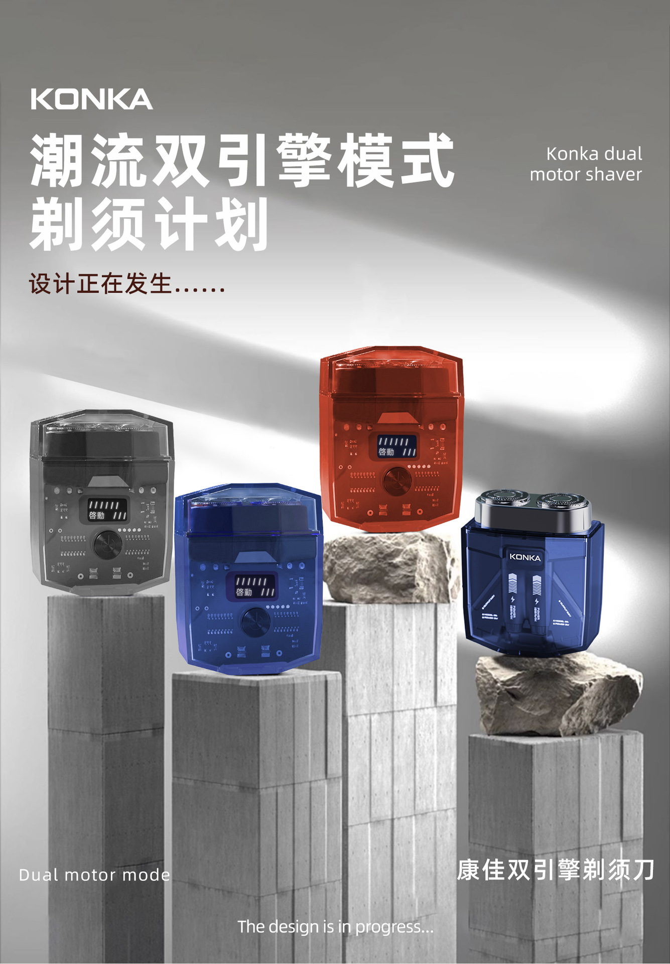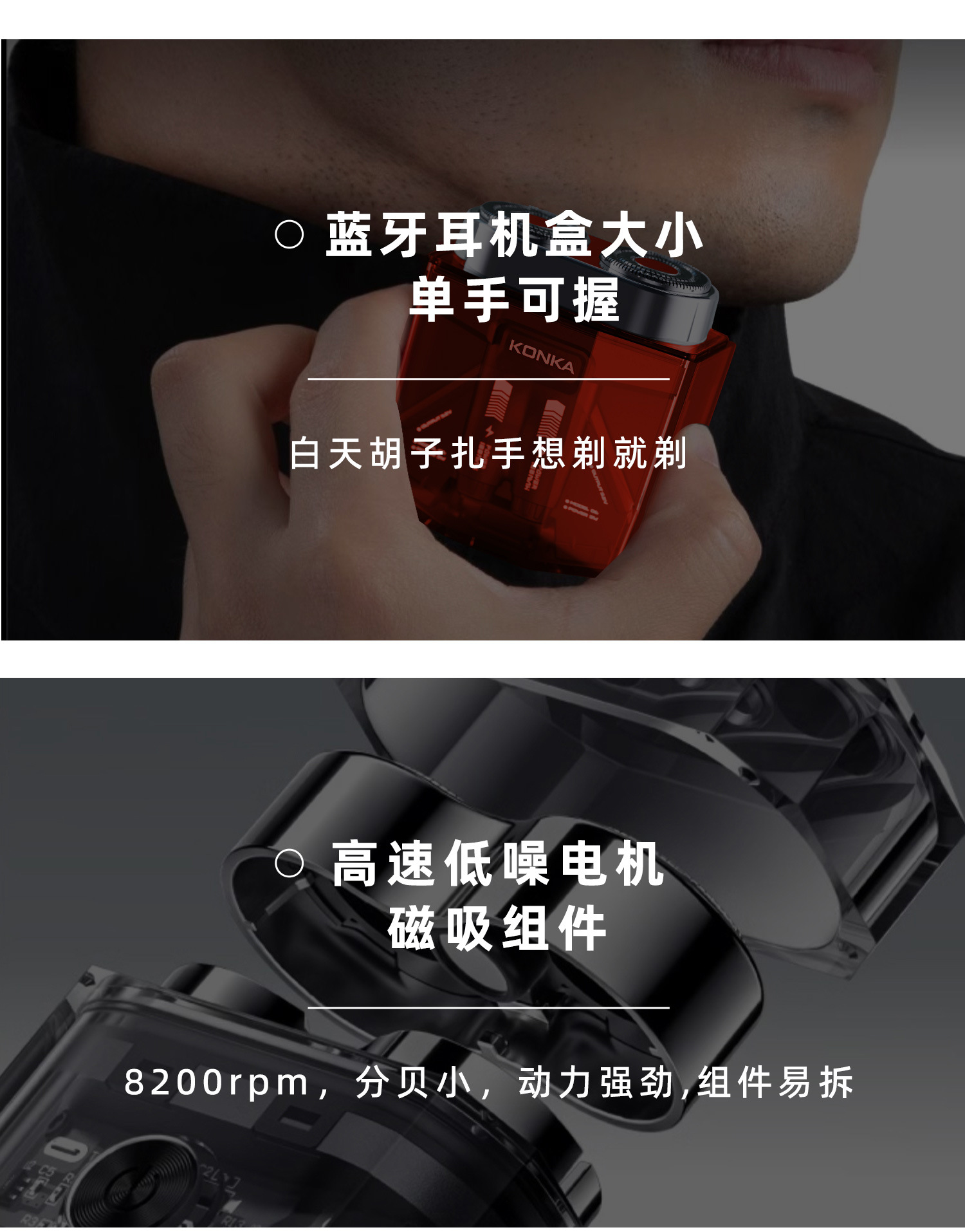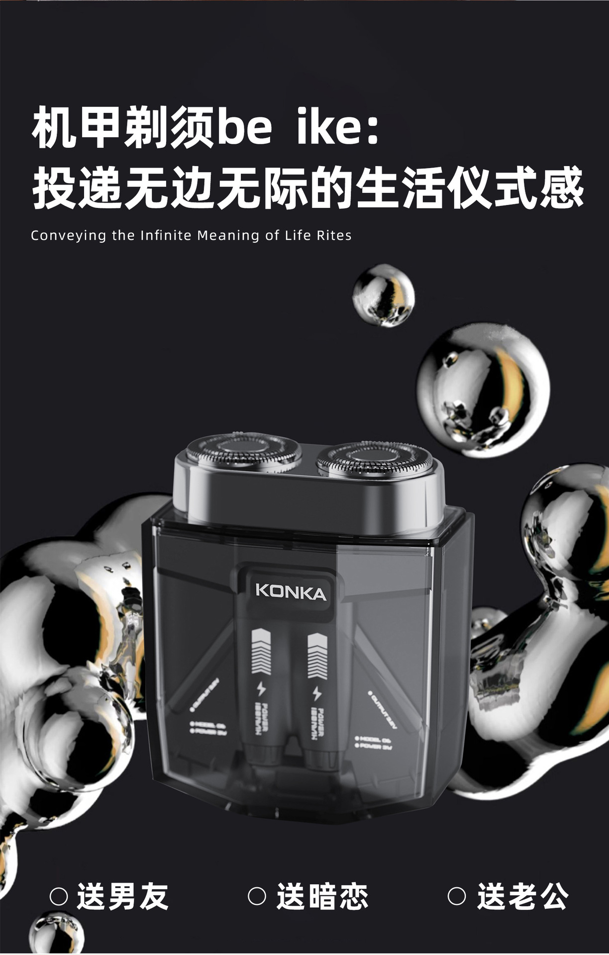 【新风潮,随我剃!】七夕情人节礼物康佳透明双头剃须刀 男士大功率电动数显刮胡刀 充电款便携式小钢炮-QB
