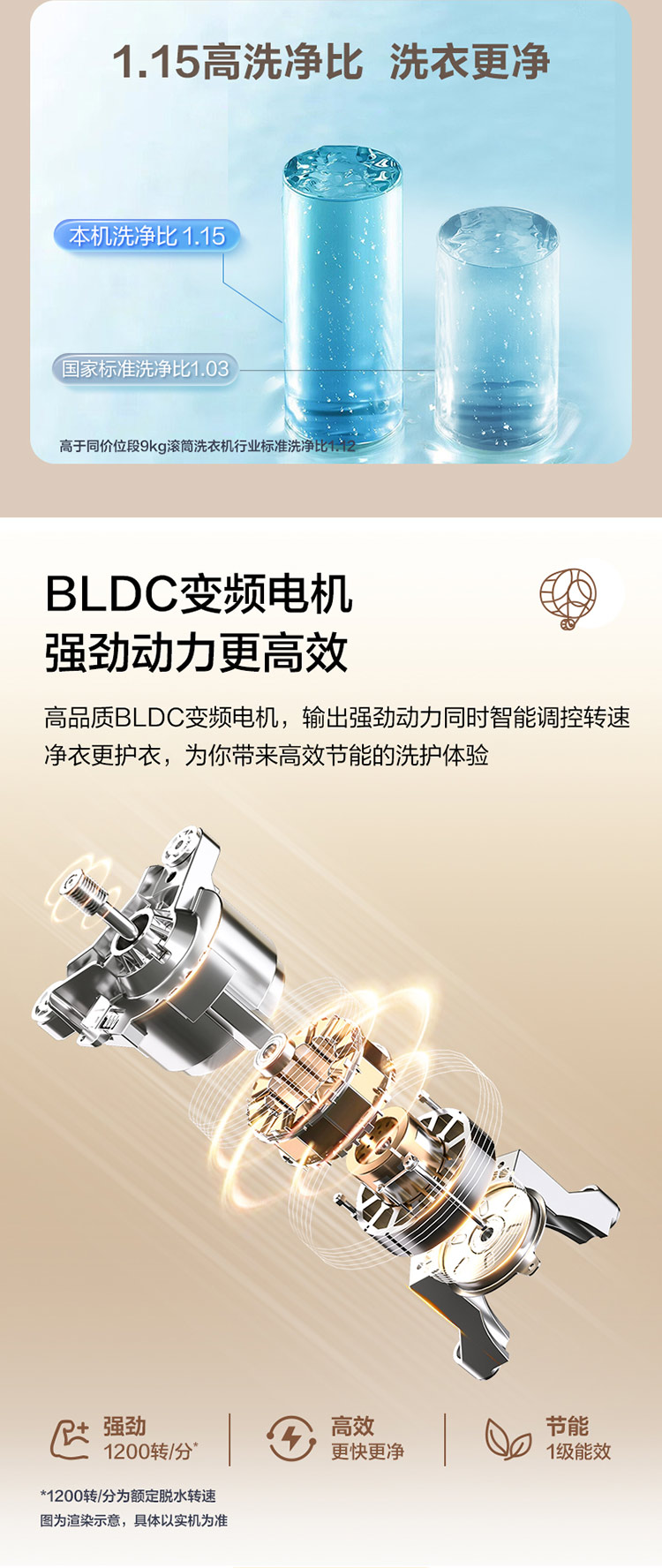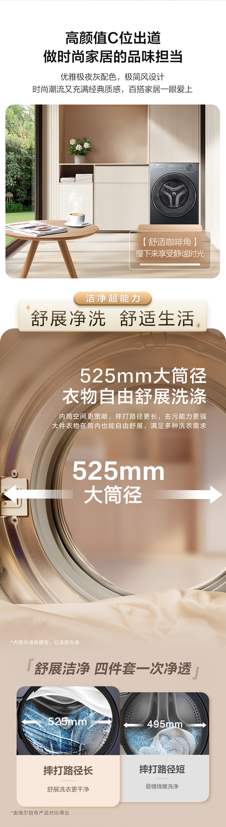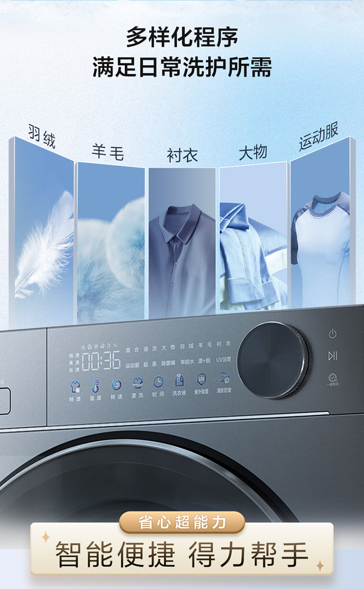 海尔9kg滚筒洗衣机 XQG90-LDU58F 超薄479mm嵌入智能投放紫外除菌