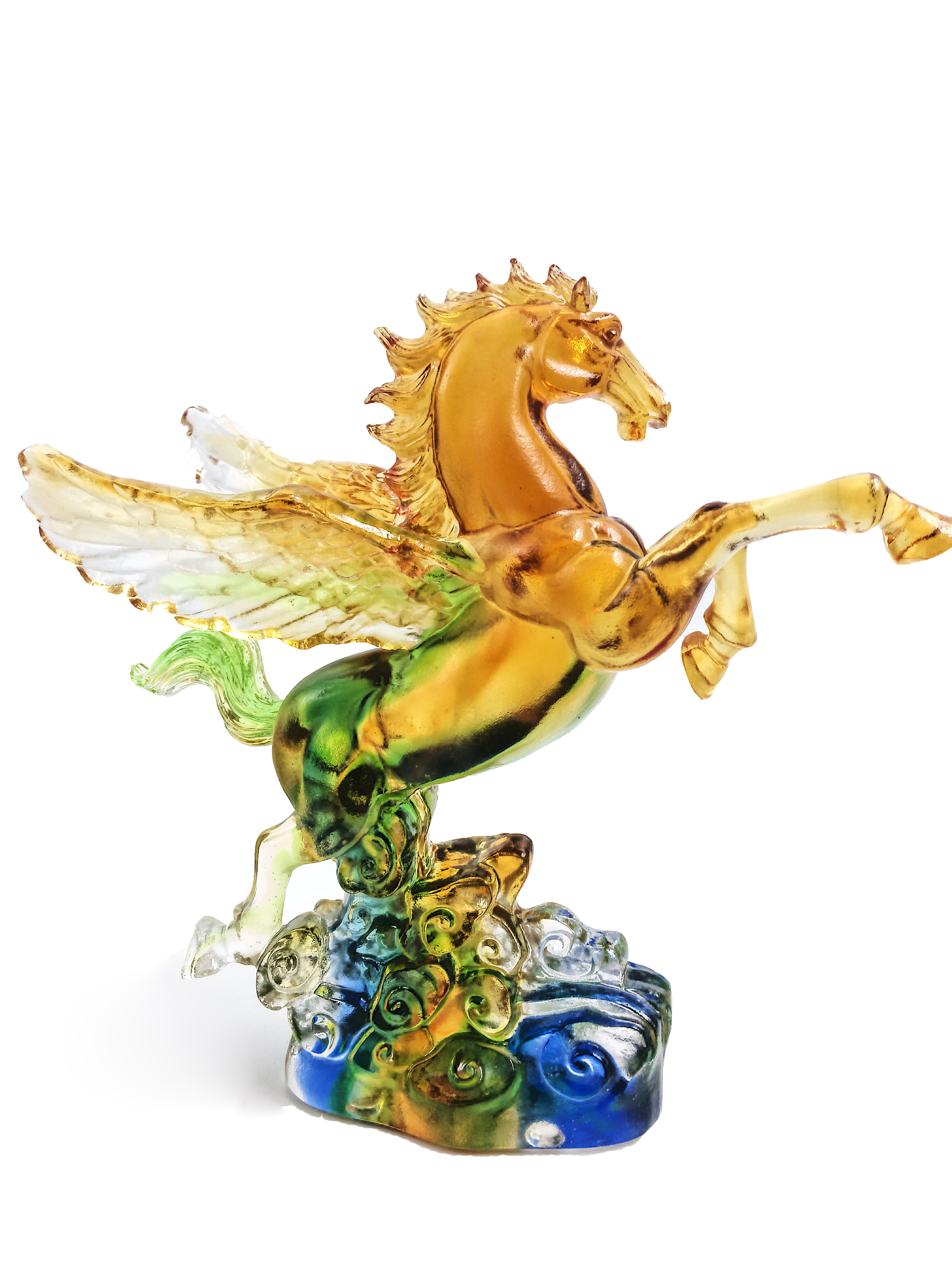 在中国,天马的形象通常为奔腾的骏马,为战神,表现了汉民族的尚武精神。其中最重要的马神为锋星,是汉武帝刘彻的化身。天马拥有不畏强敌、不怕牺牲拼搏进取的无量勇气,是军人崇拜的偶像,也是汉民族最重要的图腾之一。为表现其"天马"的不同,常于马下方绘制云朵,体现天马可以腾云驾雾。