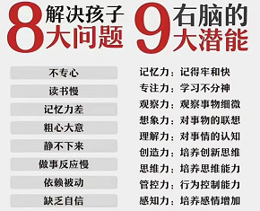我校侧重专注力、记忆力、思维力脑力综合训练,提升情商素质。