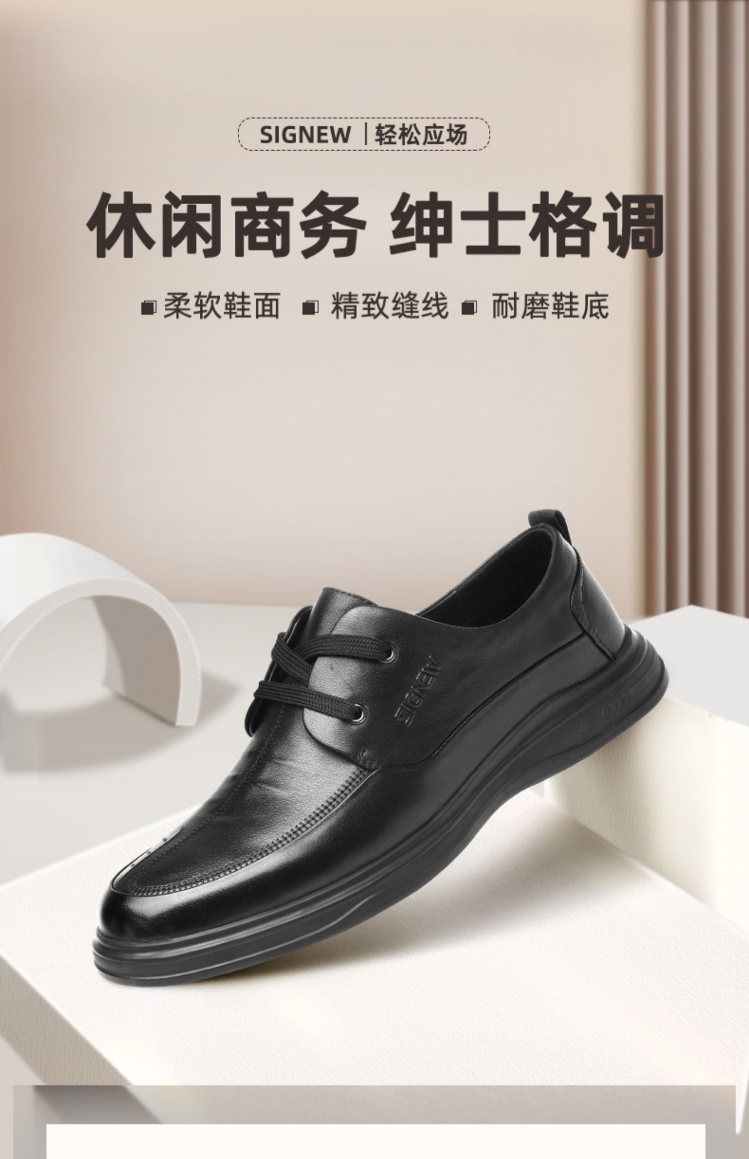 信诺真皮舒适男鞋2024春秋新款英伦风商务休闲皮鞋软底爸爸鞋男士N24Q113-87